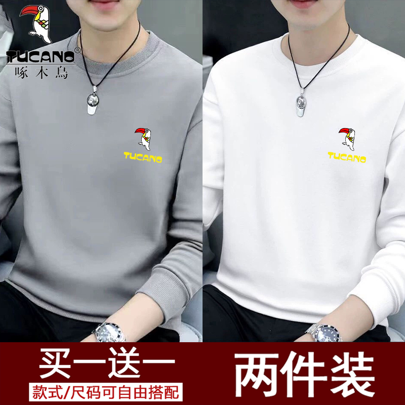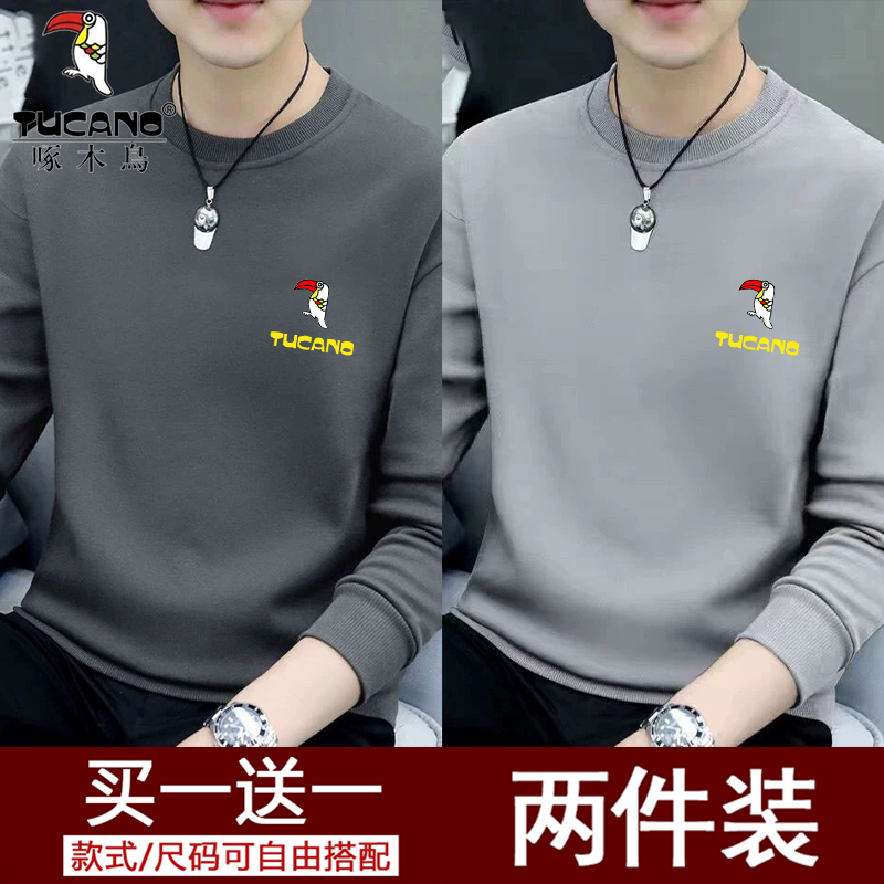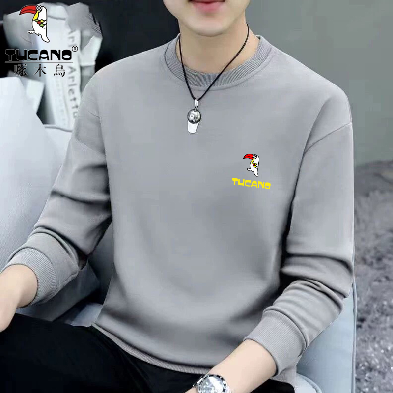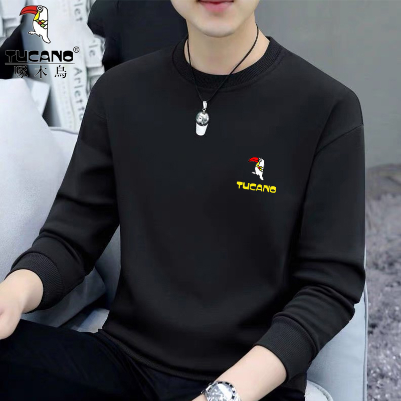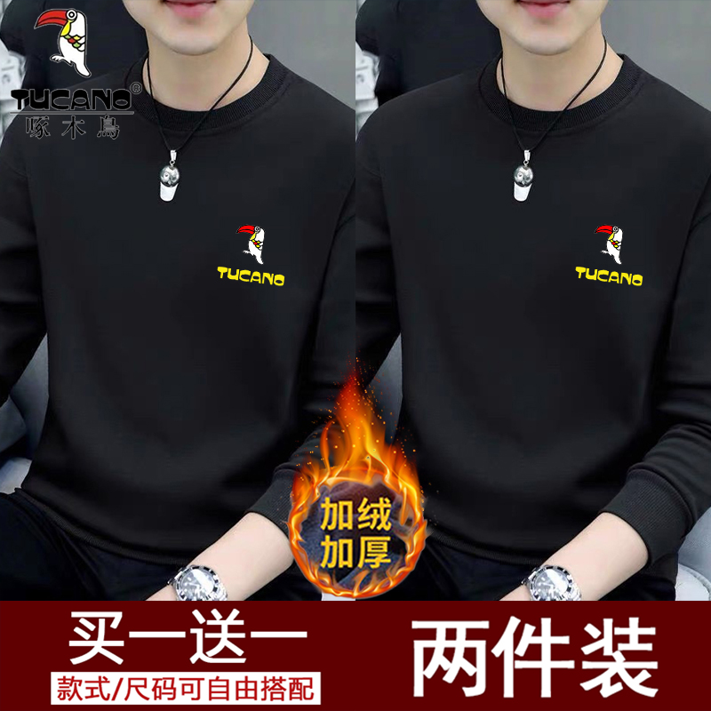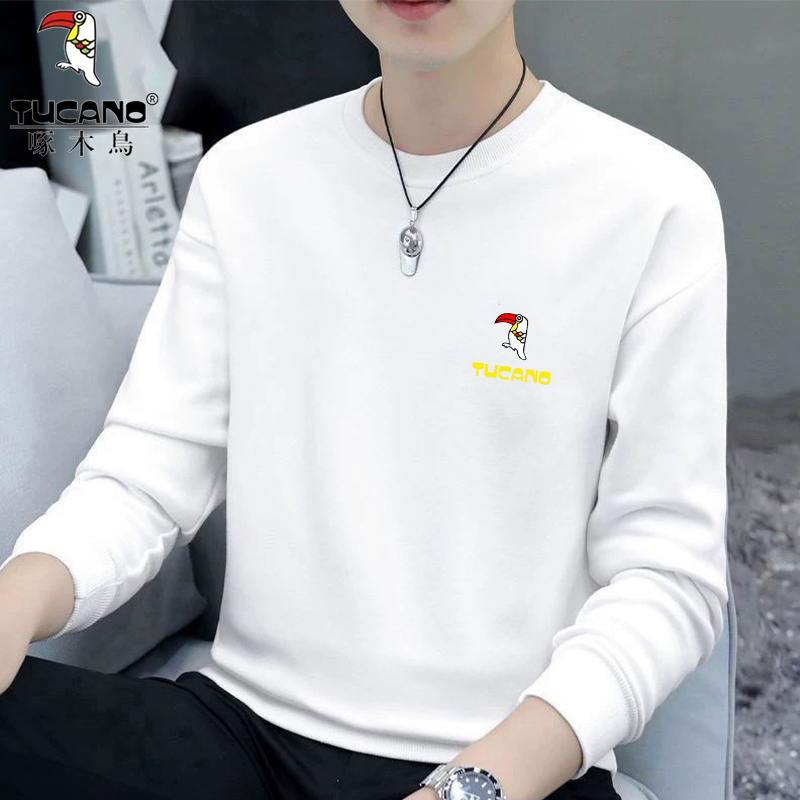 Woodpecker Spring and Autumn New Sweatshirt Men's Crew Neck Plush Long Sleeve Men's T-Shirt Winter Warm Top Base Shirt Men's Undershirt