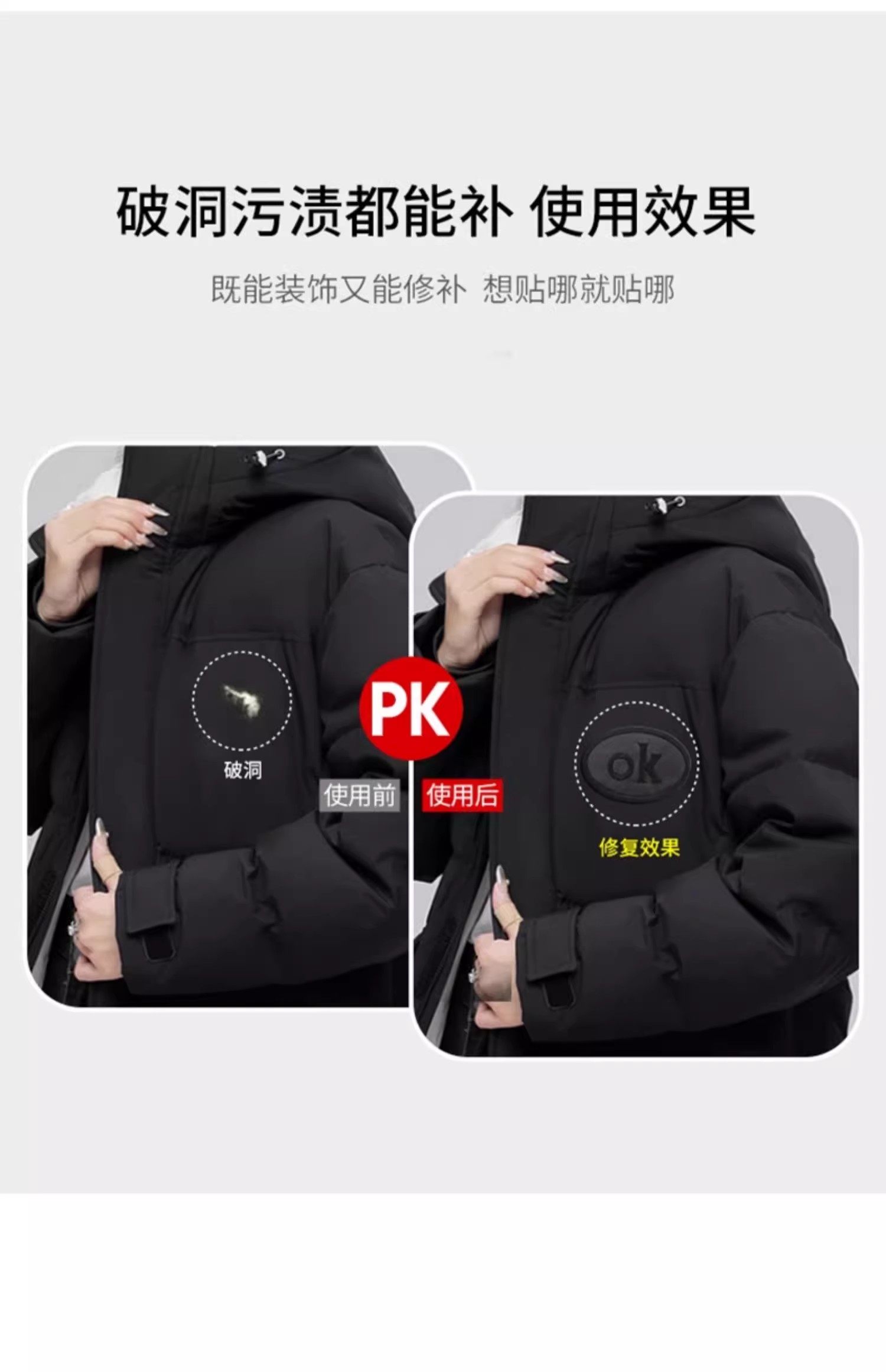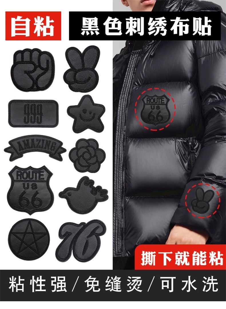 Self-adhesive down jacket patch clothing pants tear no trace repair cloth patch non-sewn washable embroidery sticker