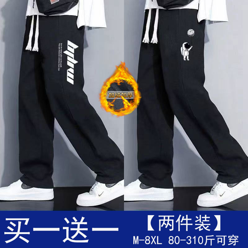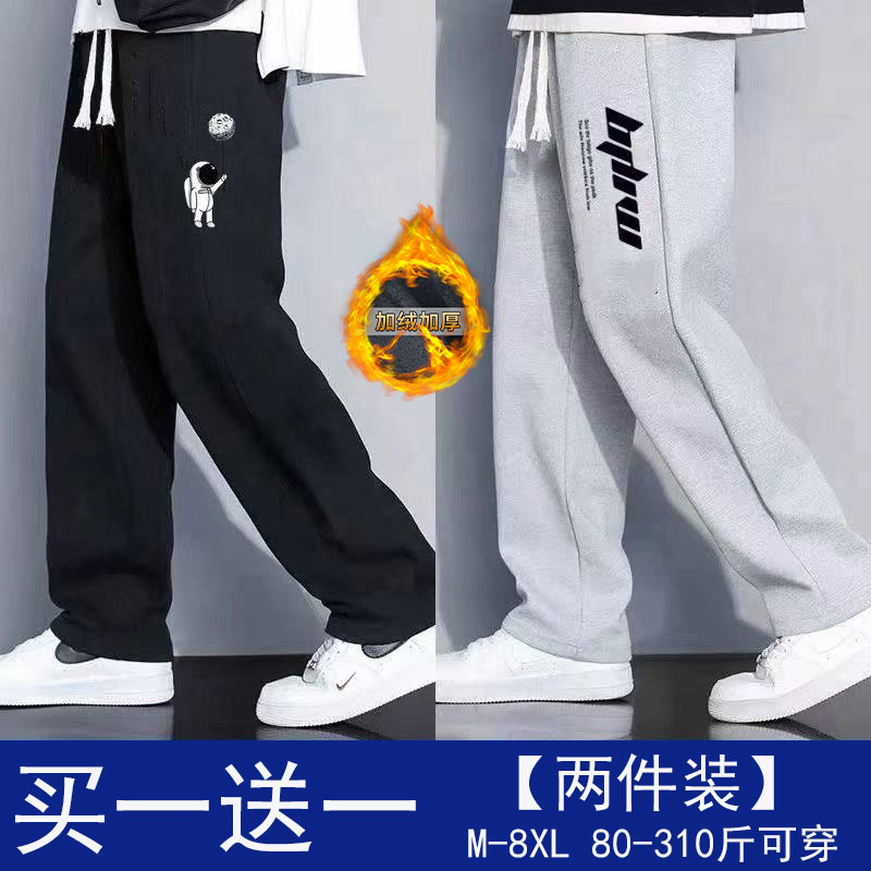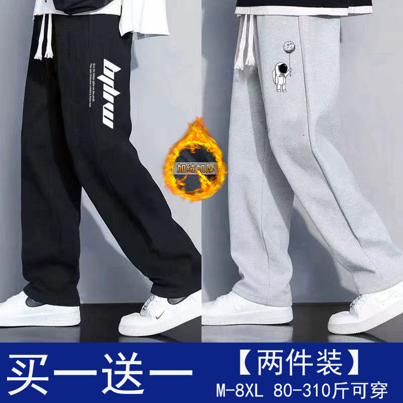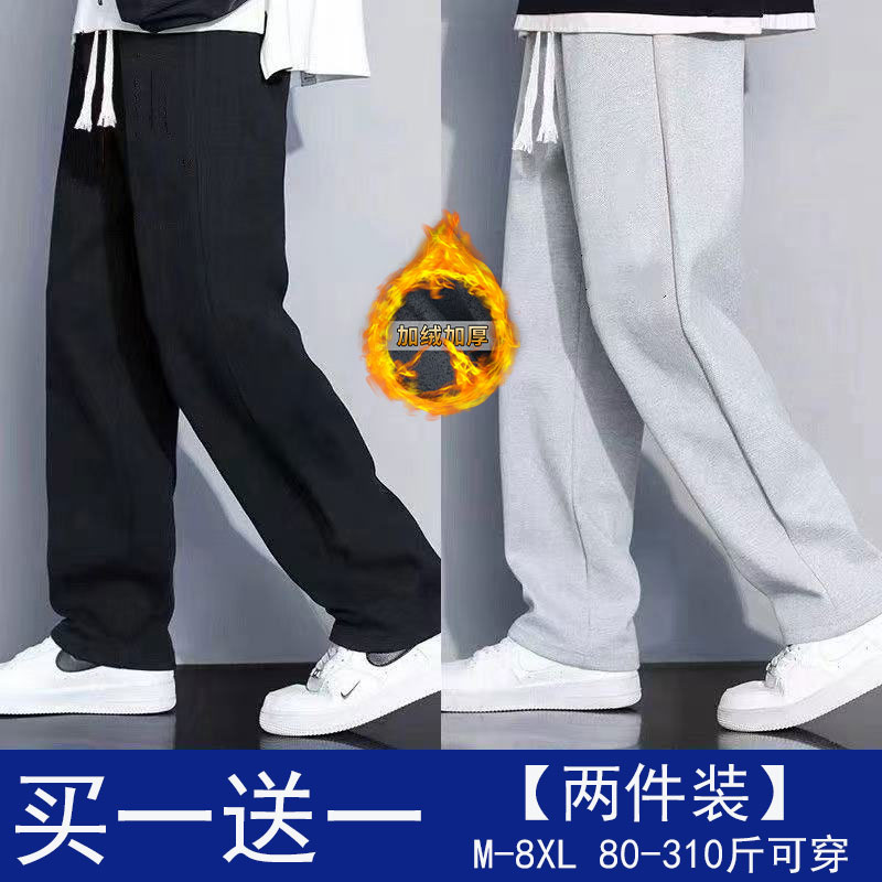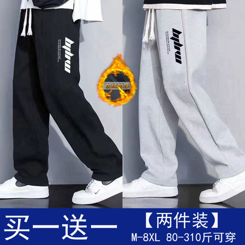 Fleece casual pants for men autumn and winter loose and versatile trendy sweatpants fattened plus size straight sweat pants for men