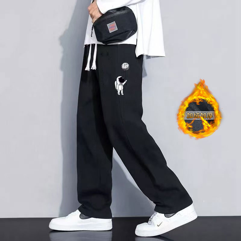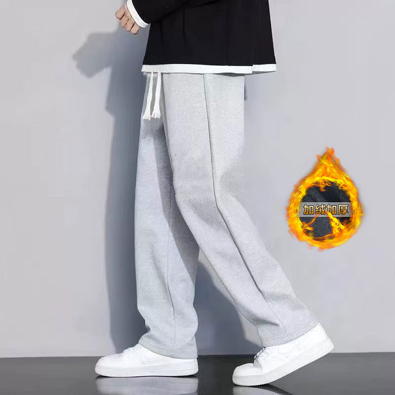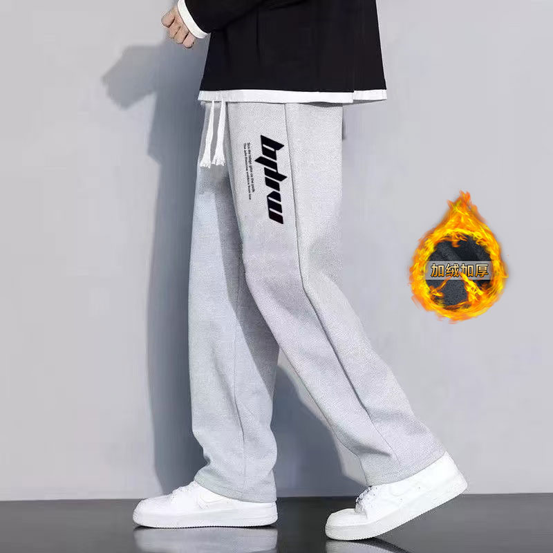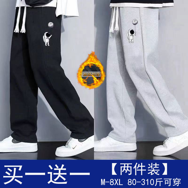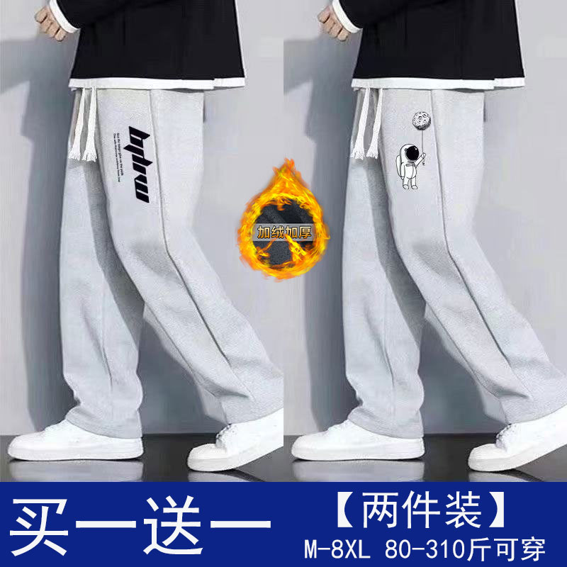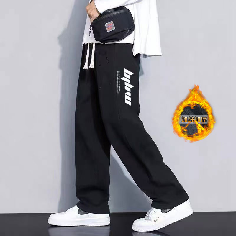 Fleece casual pants for men autumn and winter loose and versatile trendy sweatpants fattened plus size straight sweat pants for men