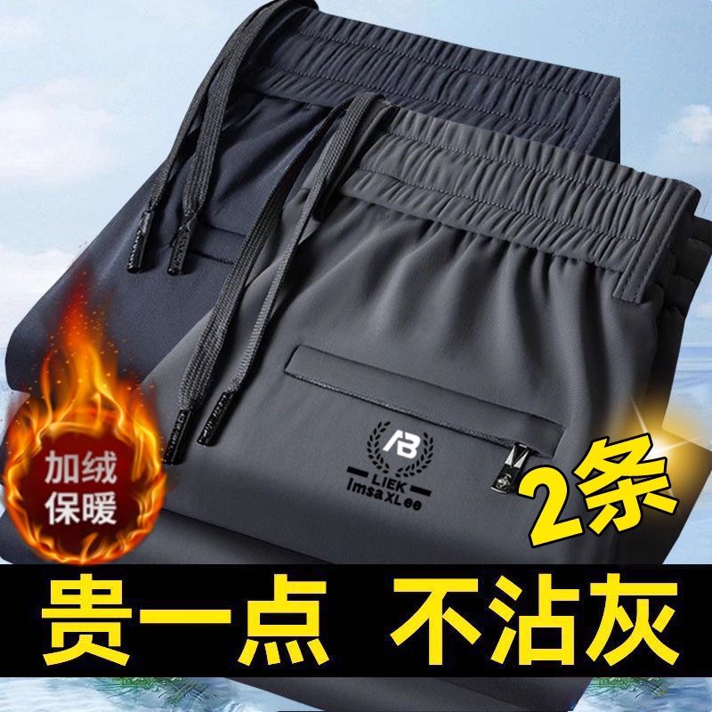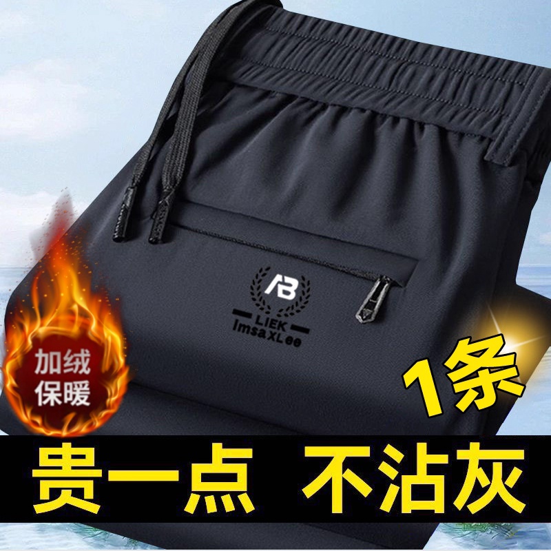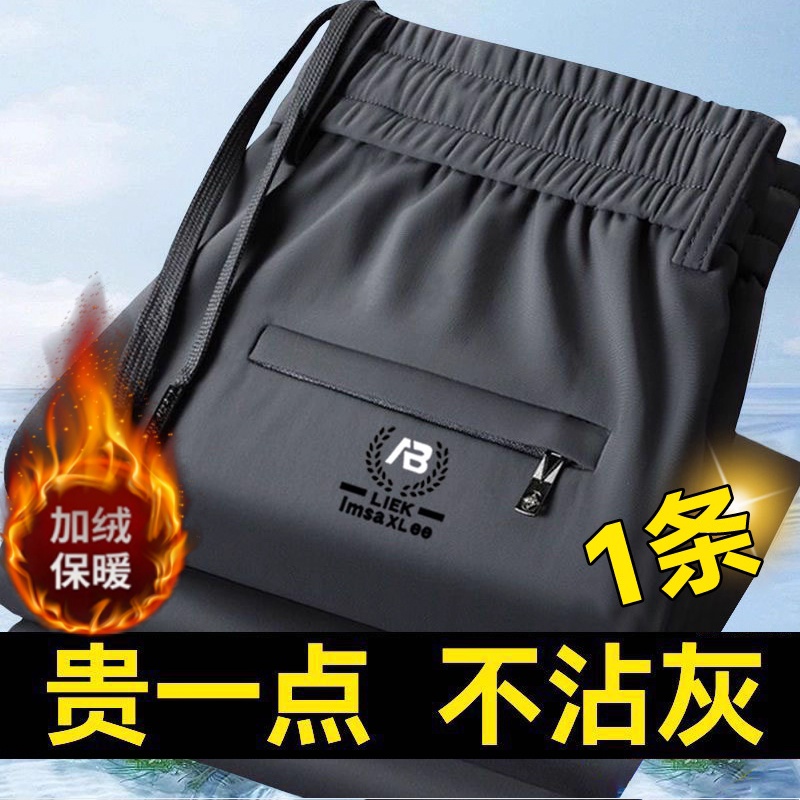 Autumn and winter sweatpants, men's trendy brand thickened fleece loose straight trousers, trendy casual and versatile dad pants