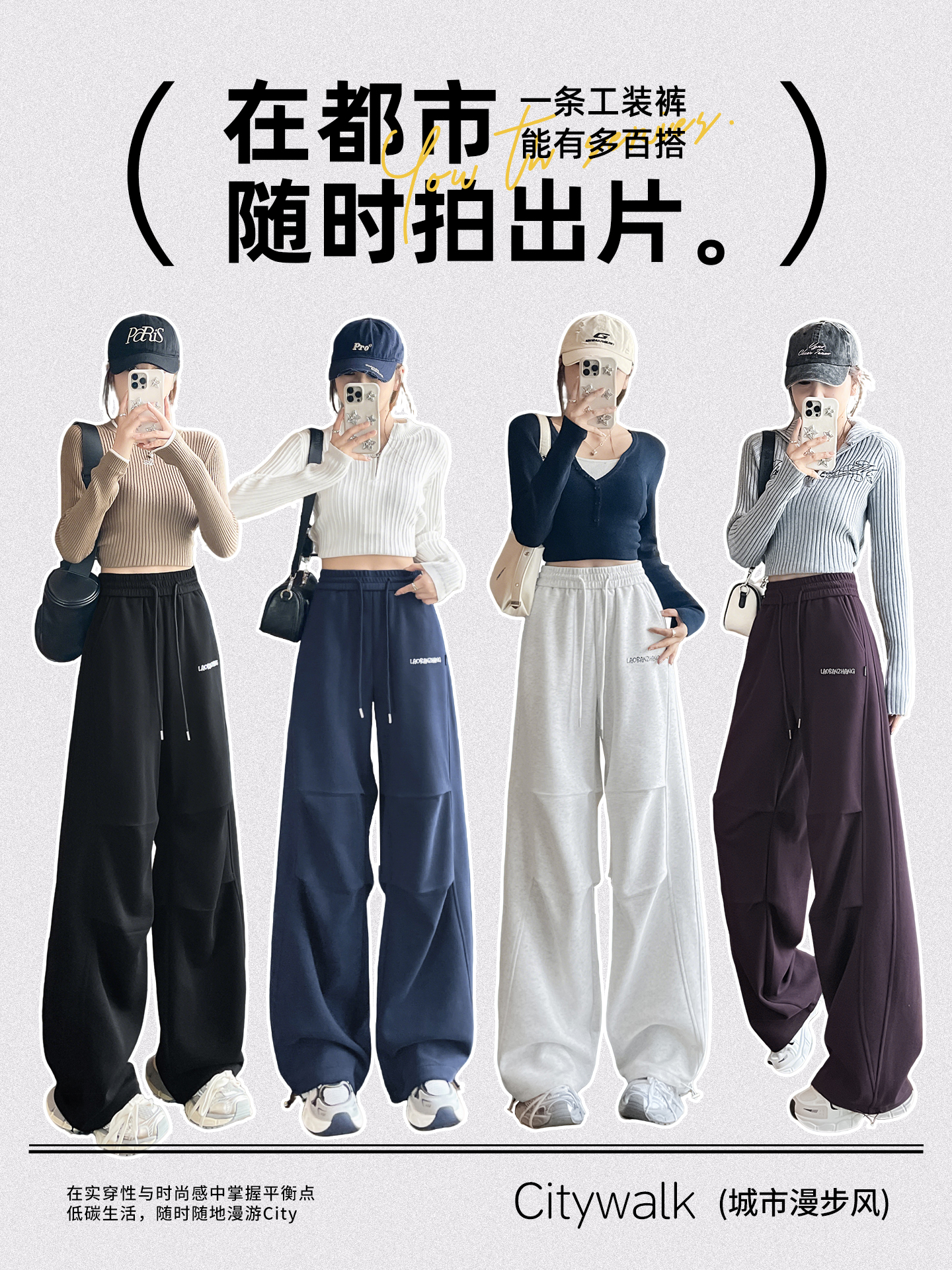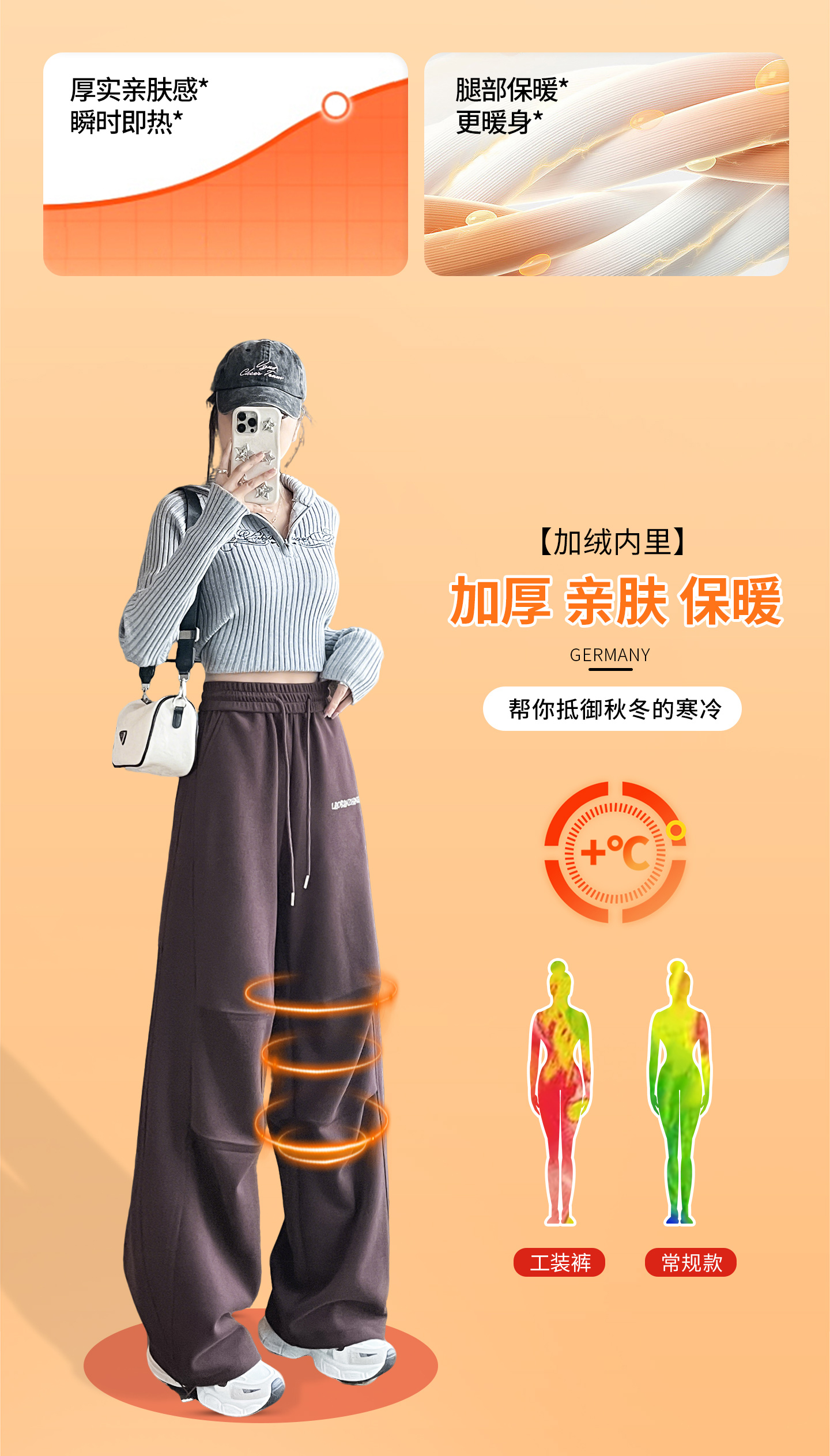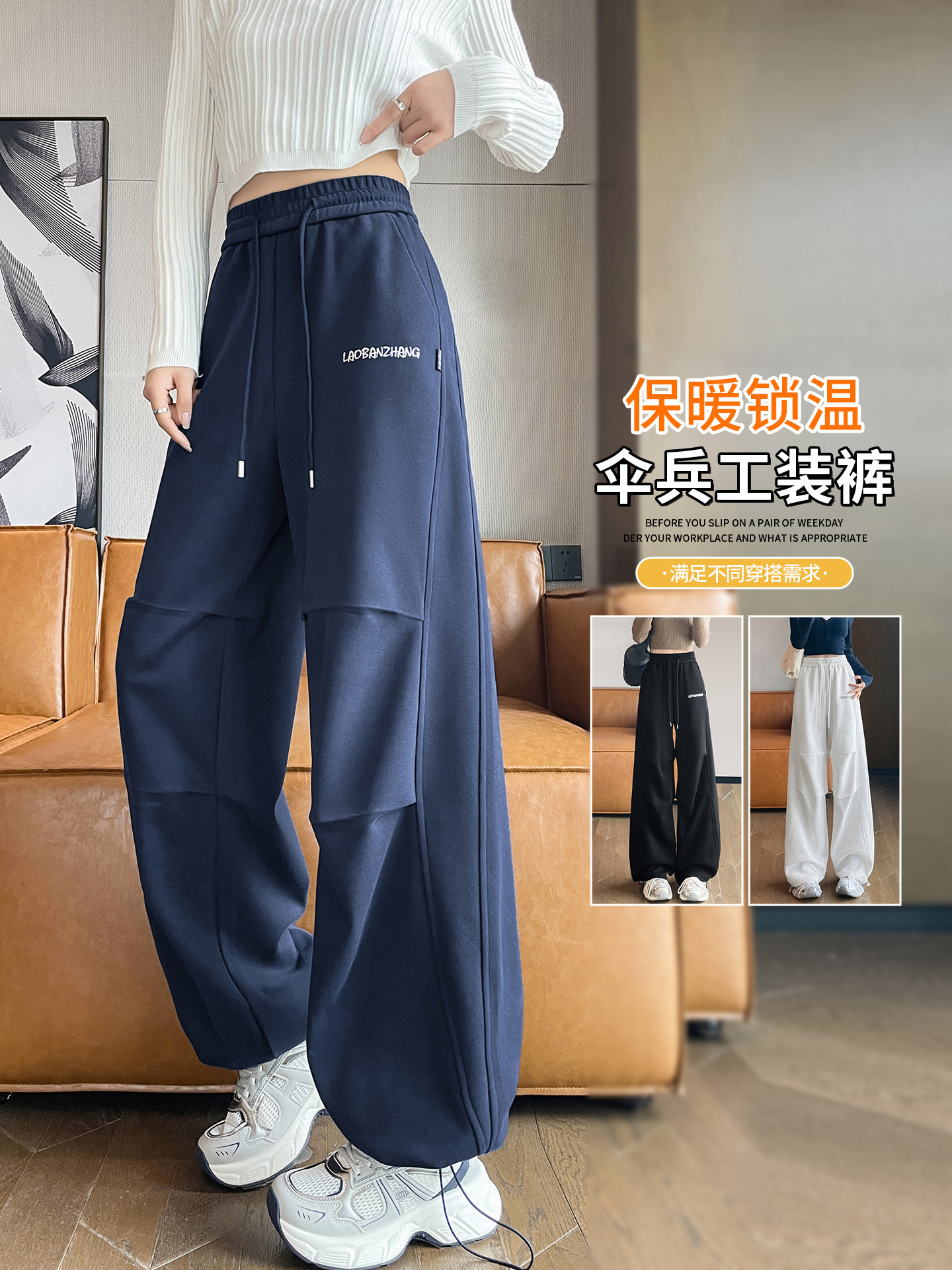 Cargo pants women's autumn and winter 2025 new loose corset fleece sweatpants casual American mountaineering wide-leg sweatpants