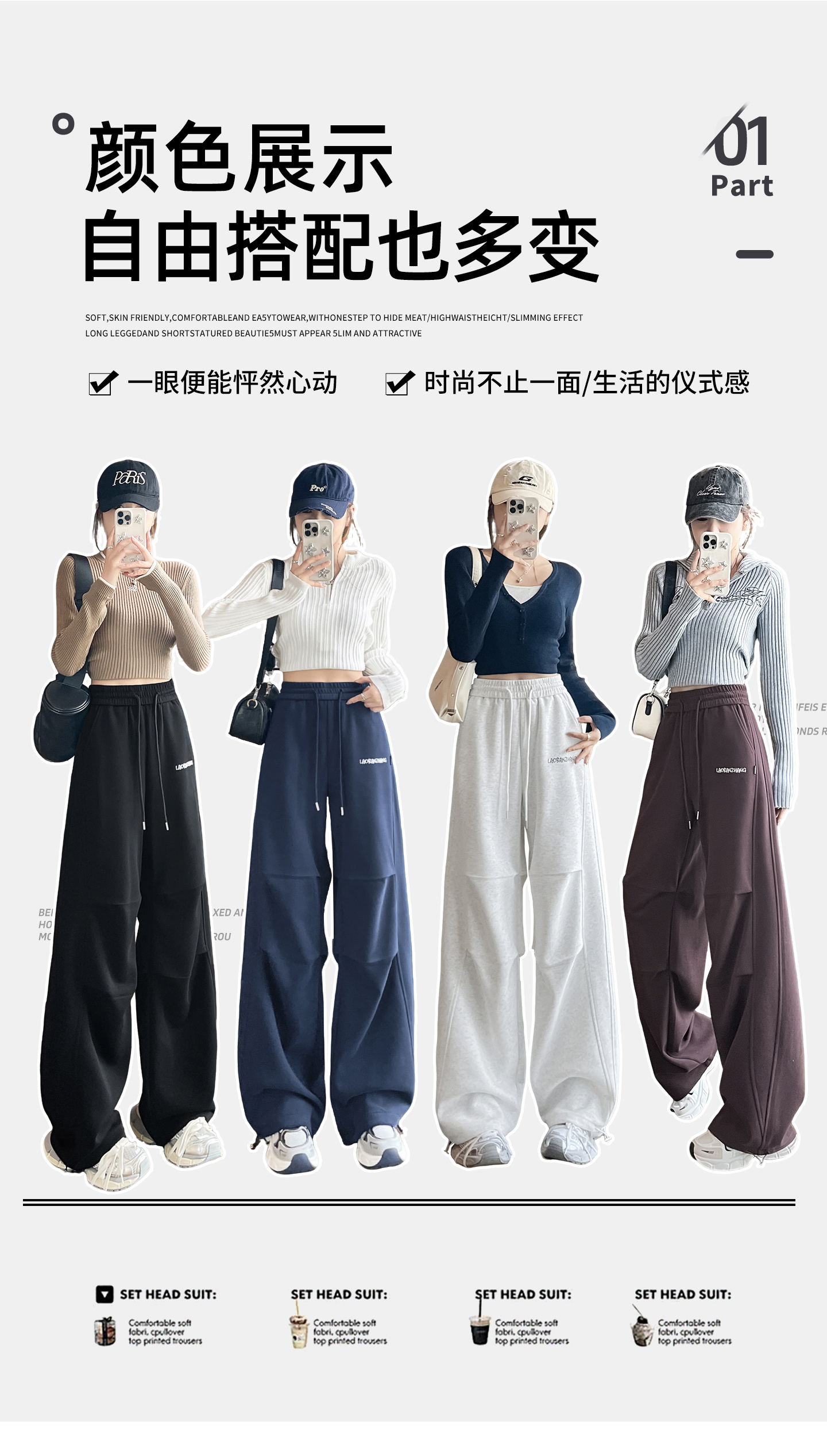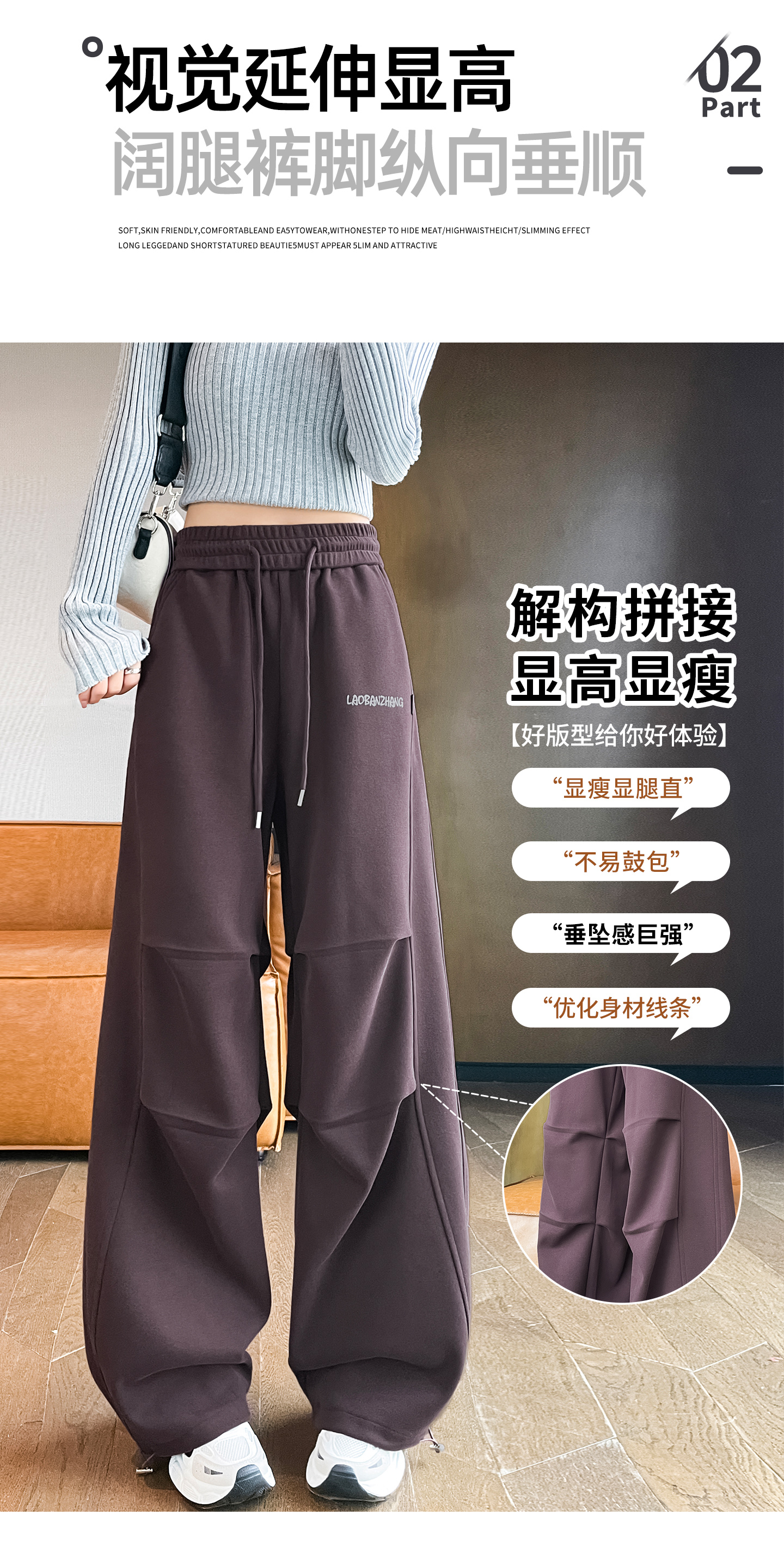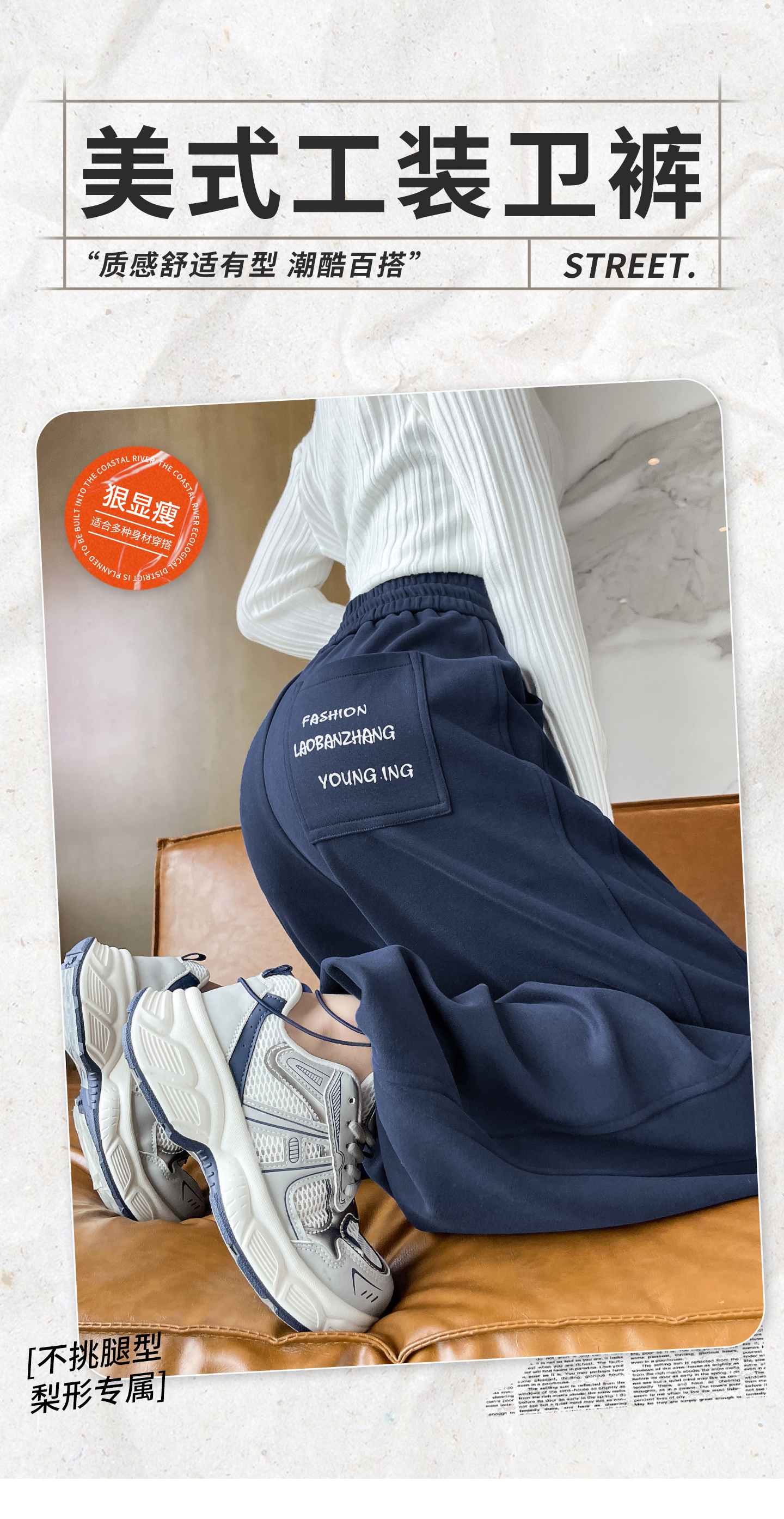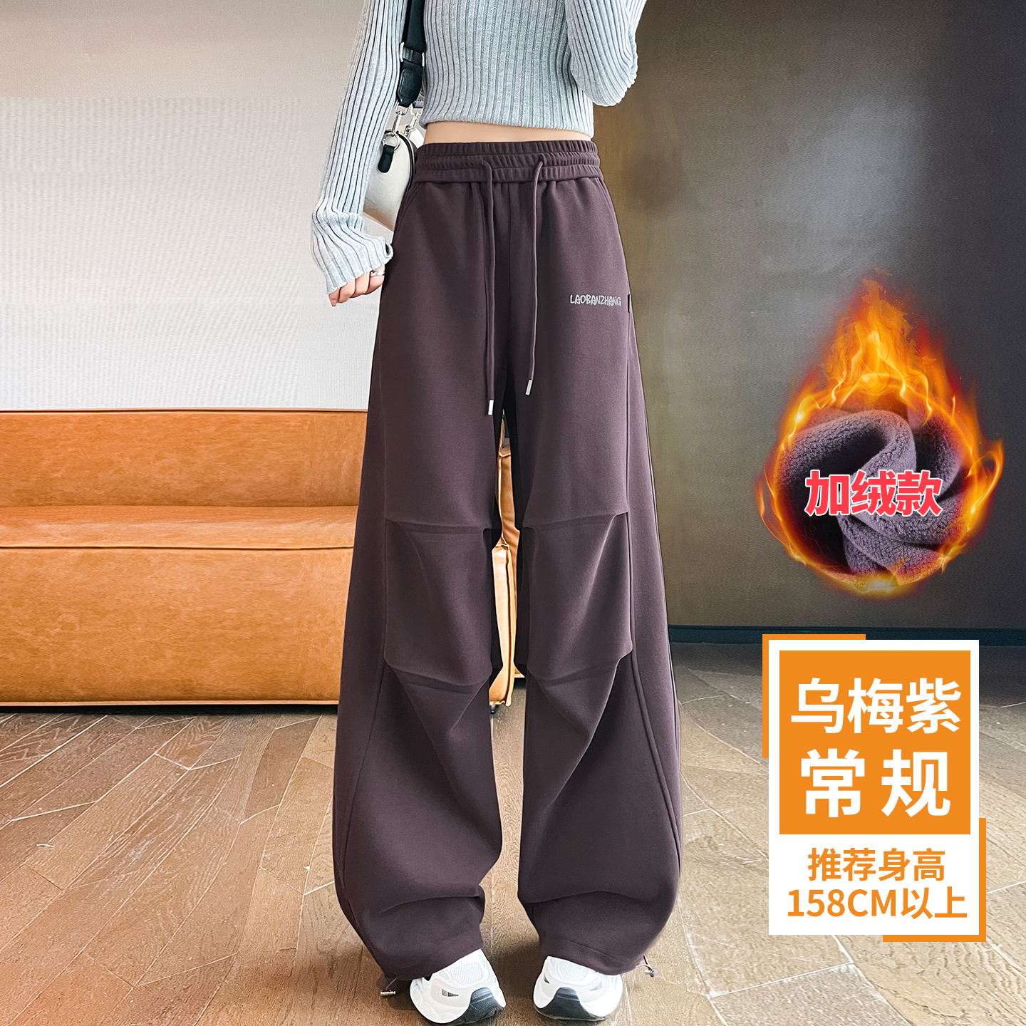 Cargo pants women's autumn and winter 2025 new loose corset fleece sweatpants casual American mountaineering wide-leg sweatpants