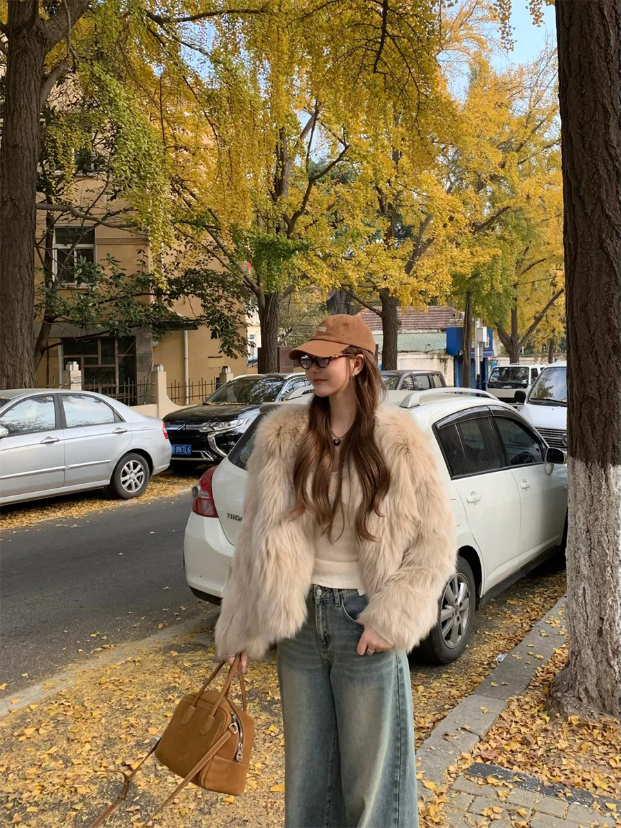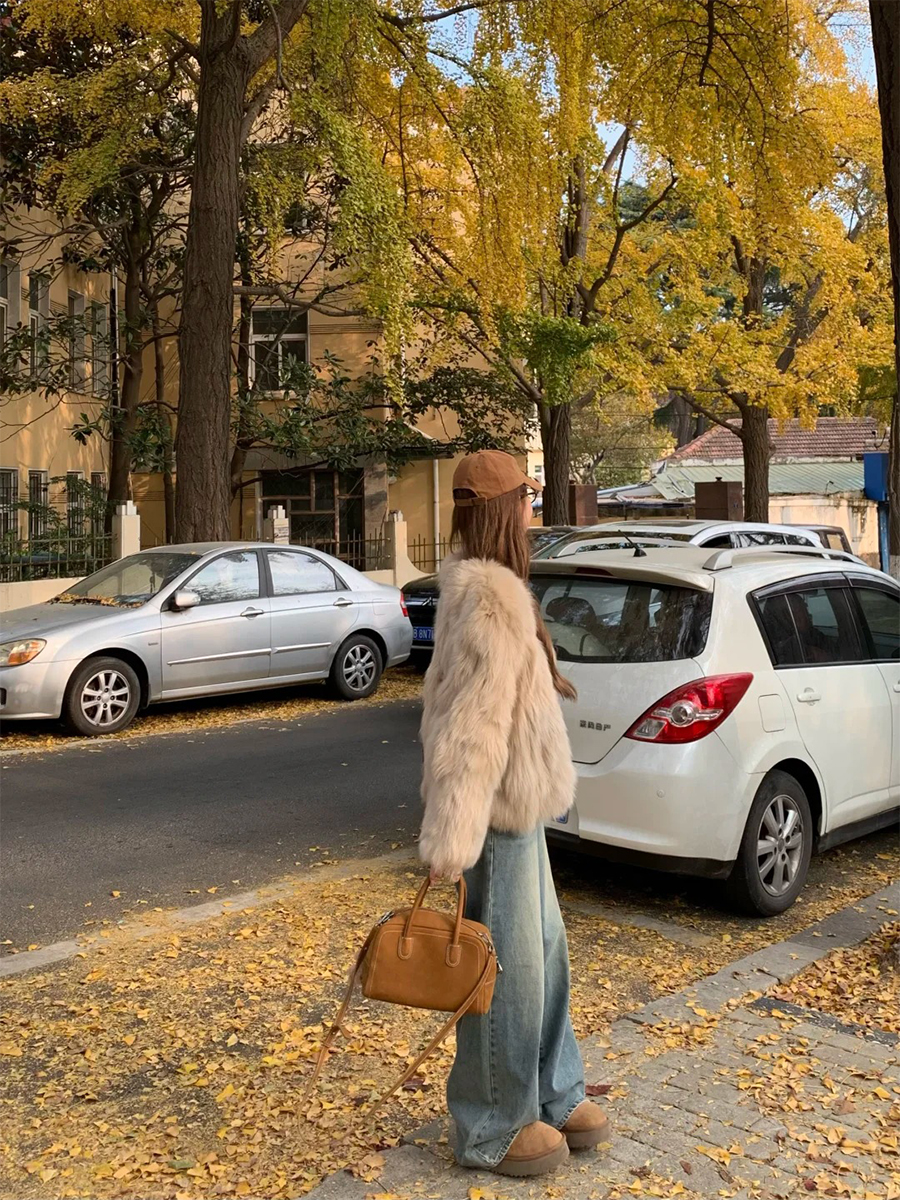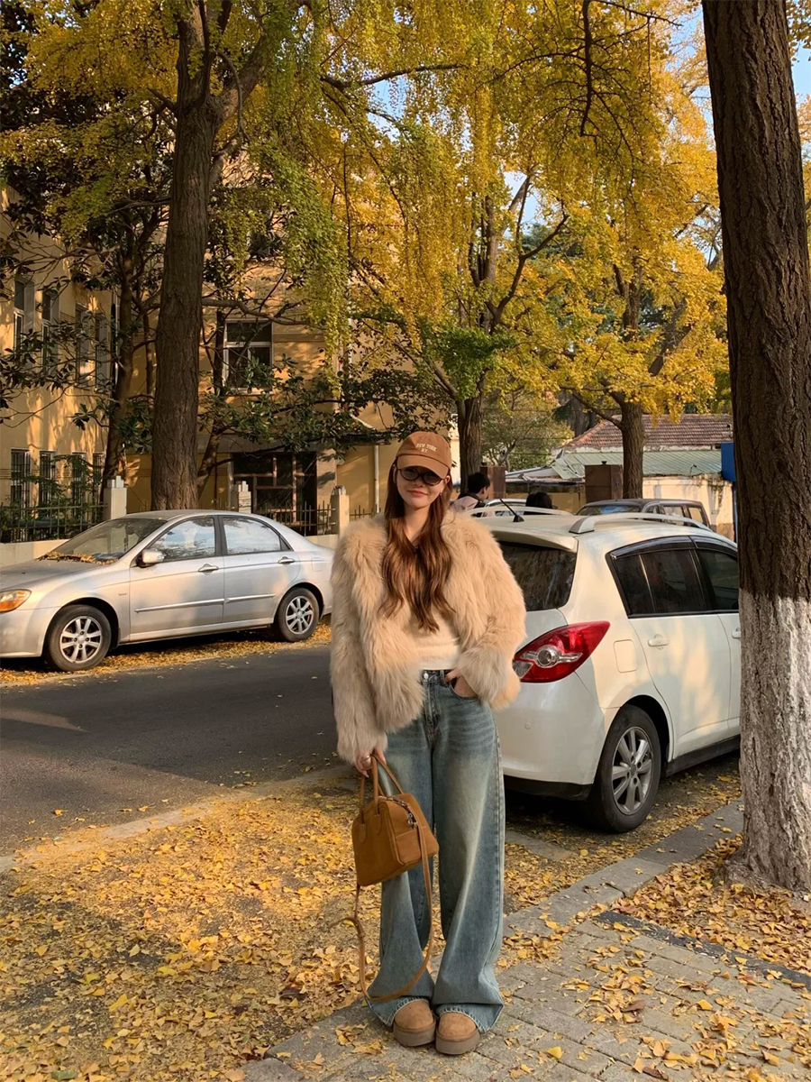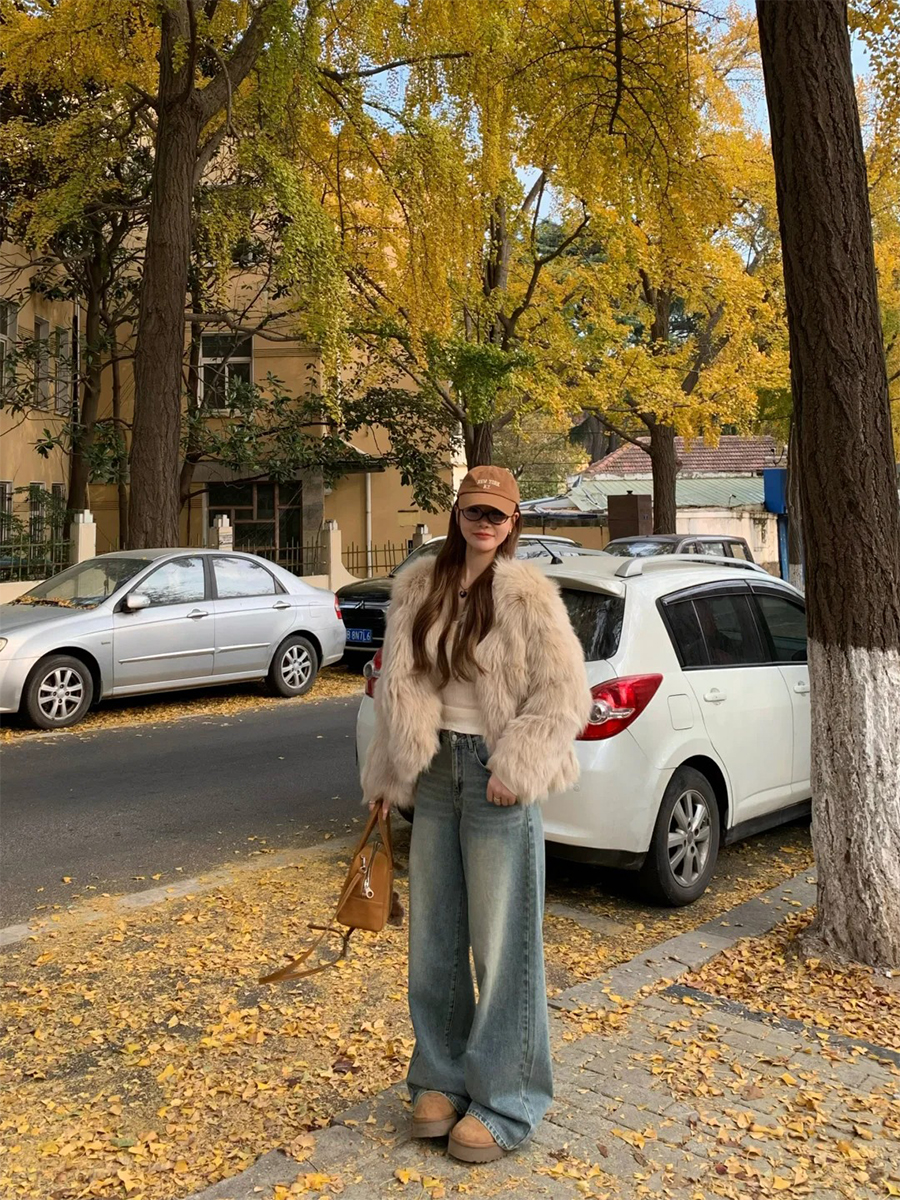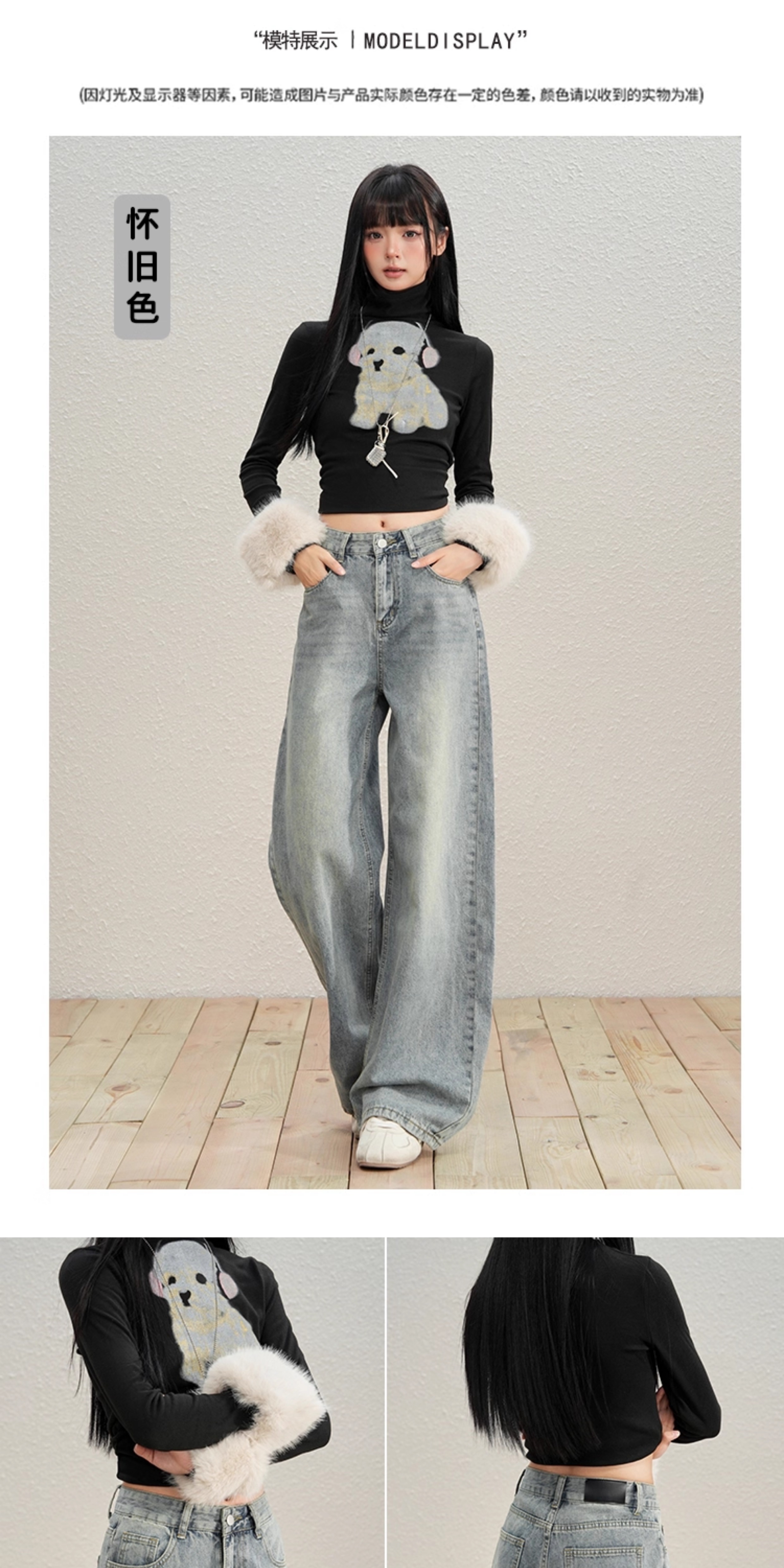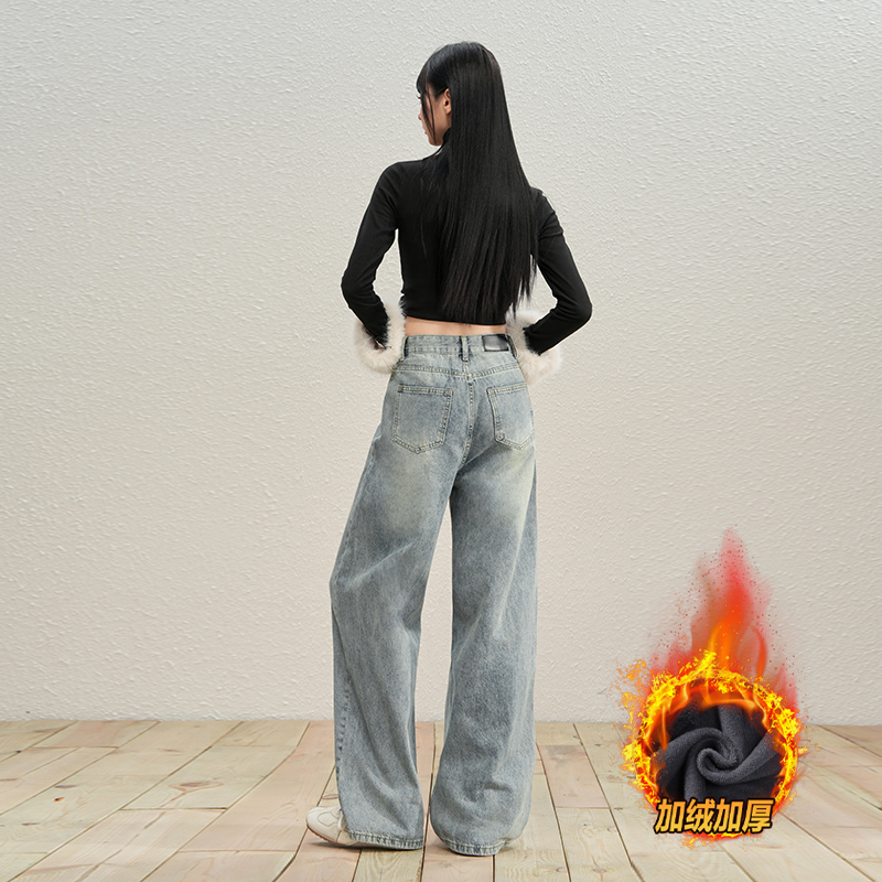 Fall/Winter 2025 new fleece wide-leg jeans women's high-waisted slimming loose drape straight floor-length pants