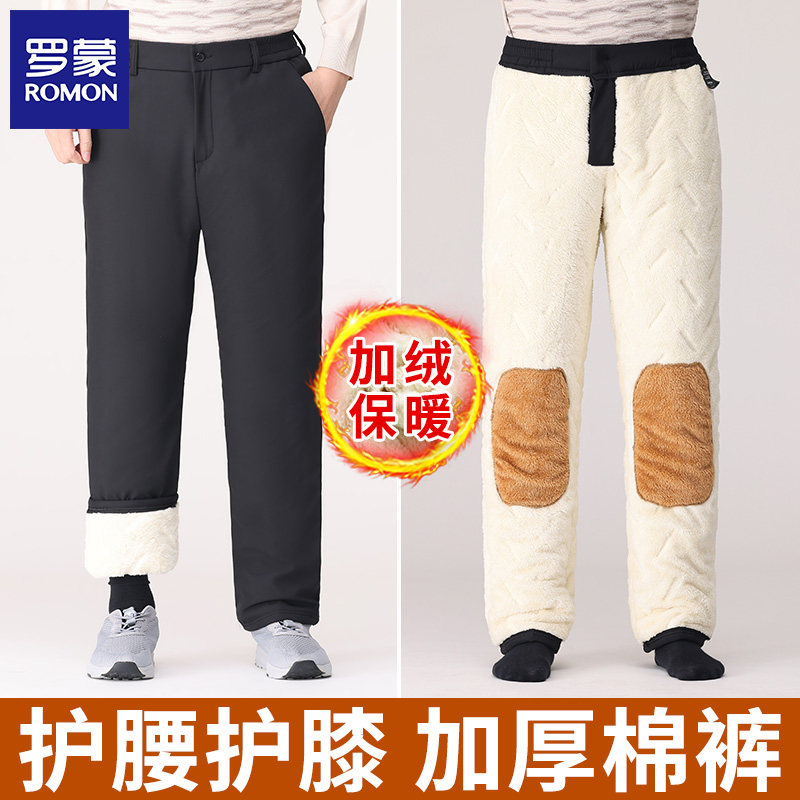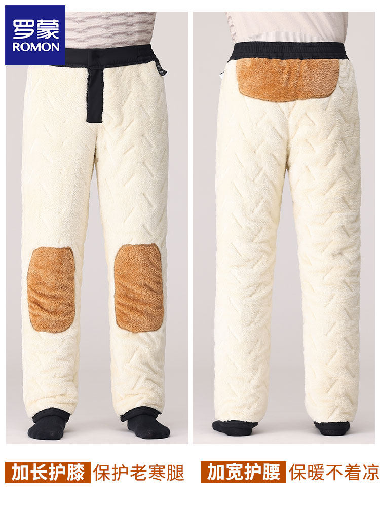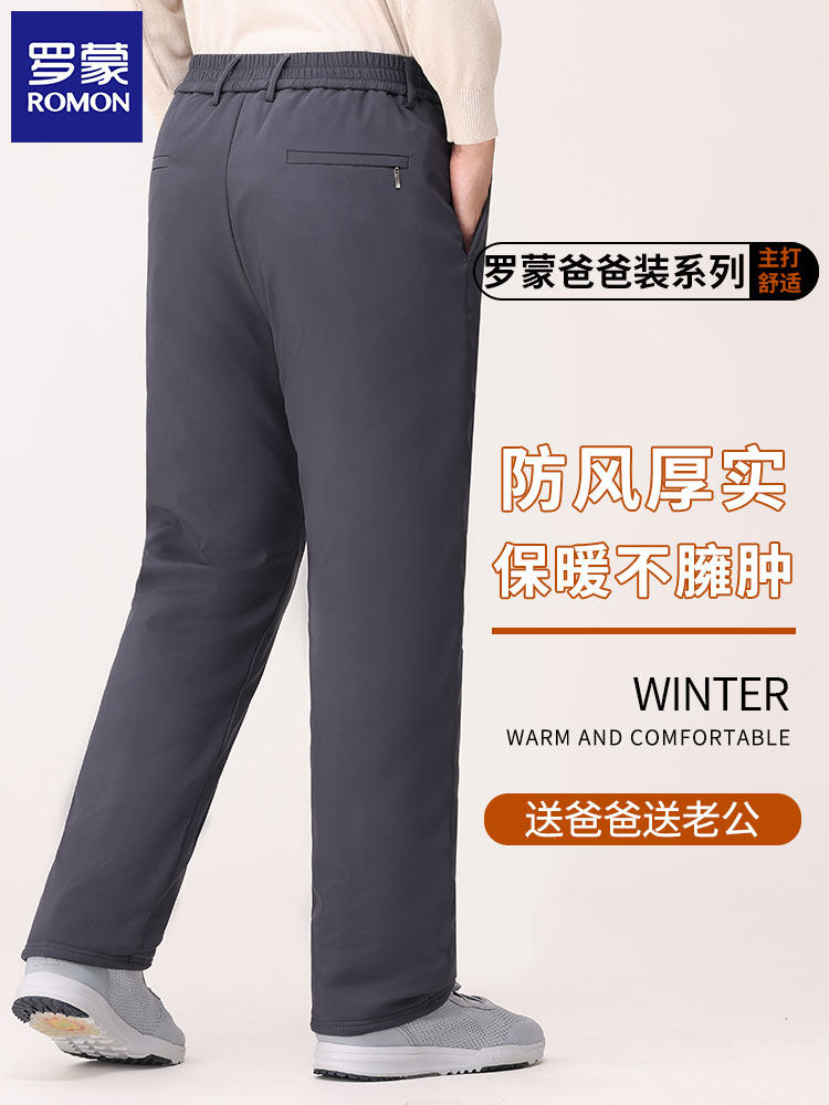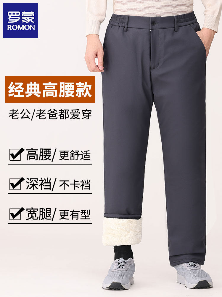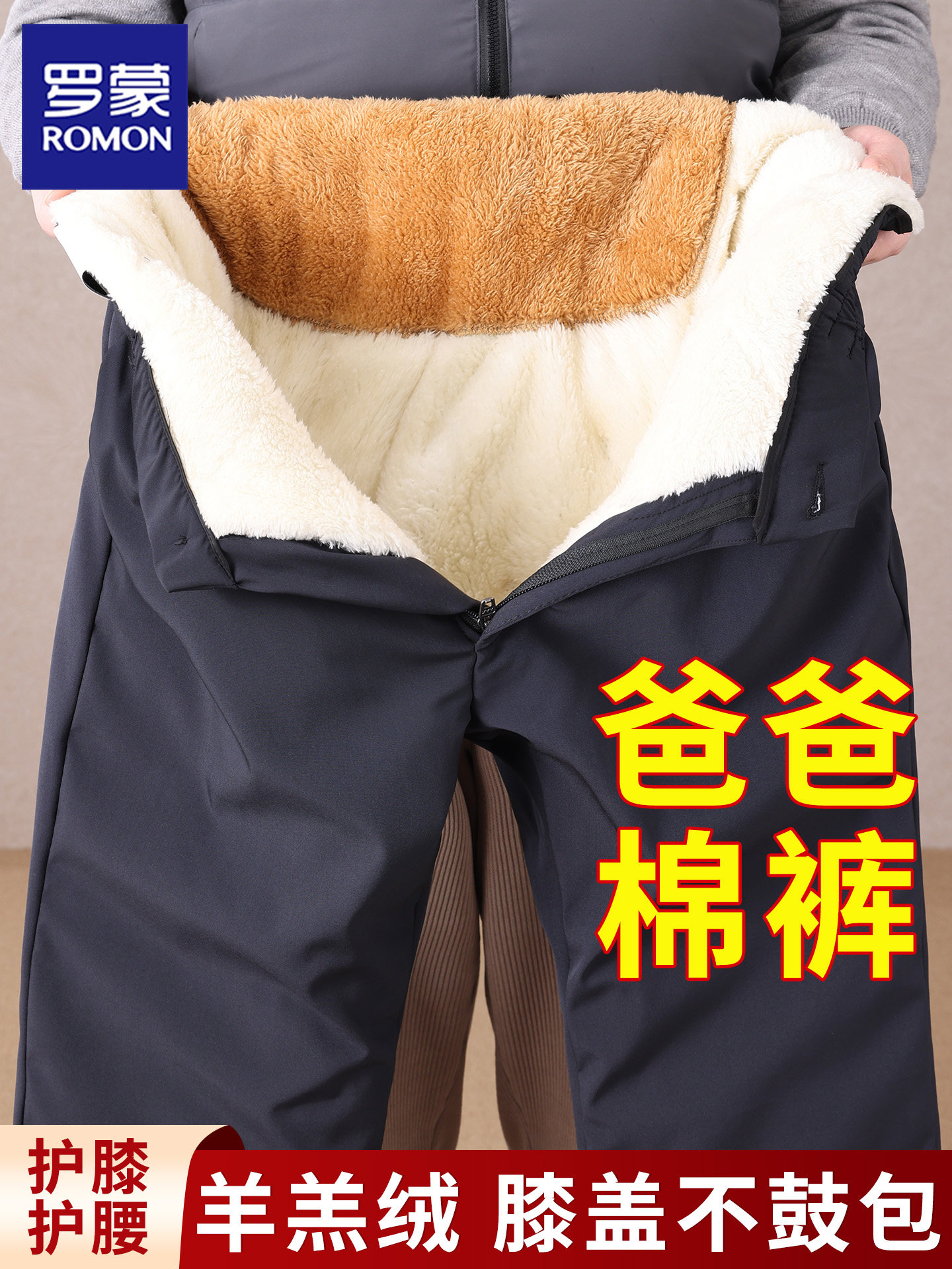 Romond's dad pants are fleece and thickened slacks in winter, and men's middle-aged and elderly lambswool cotton pants are worn outside, warm men's pants