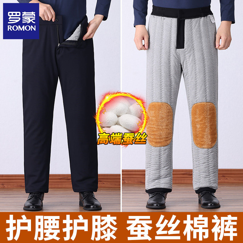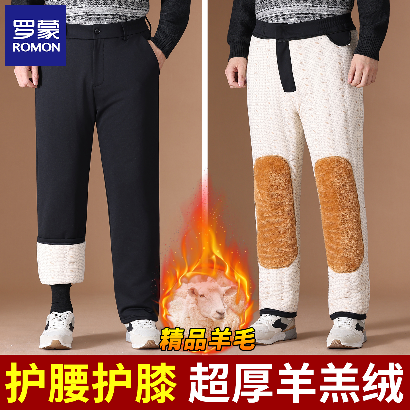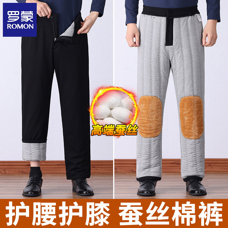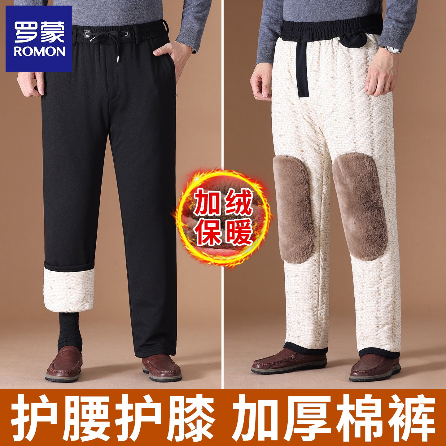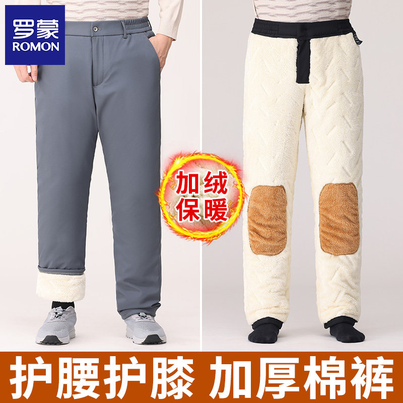 Romond's dad pants are fleece and thickened slacks in winter, and men's middle-aged and elderly lambswool cotton pants are worn outside, warm men's pants