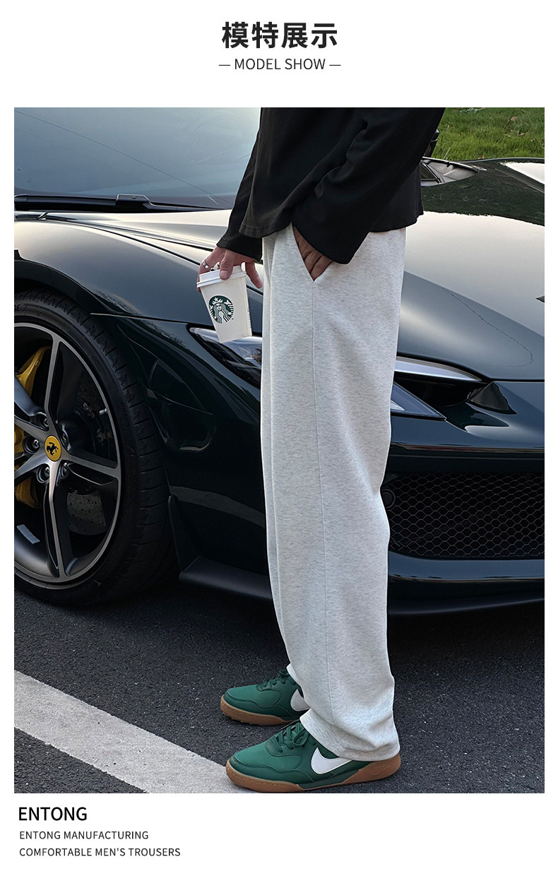 Entong American High Street Cleanfit Apricot Sweatpants Boys Pants Straight Leg Sports Loose Plus Size Slacks