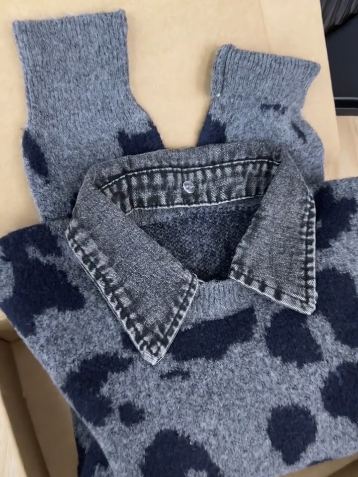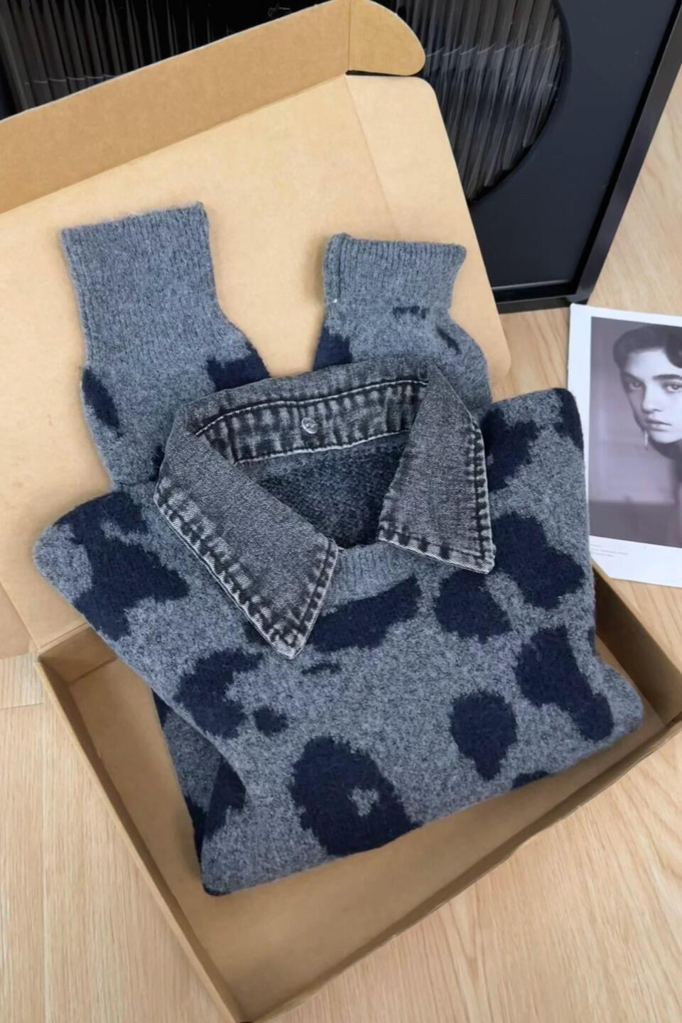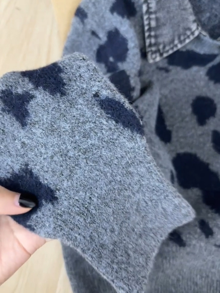 Self-retained explosive recommendation ~ American retro leopard print knitted sweater women's 2025 autumn and winter high-end loose soft waxy sweater