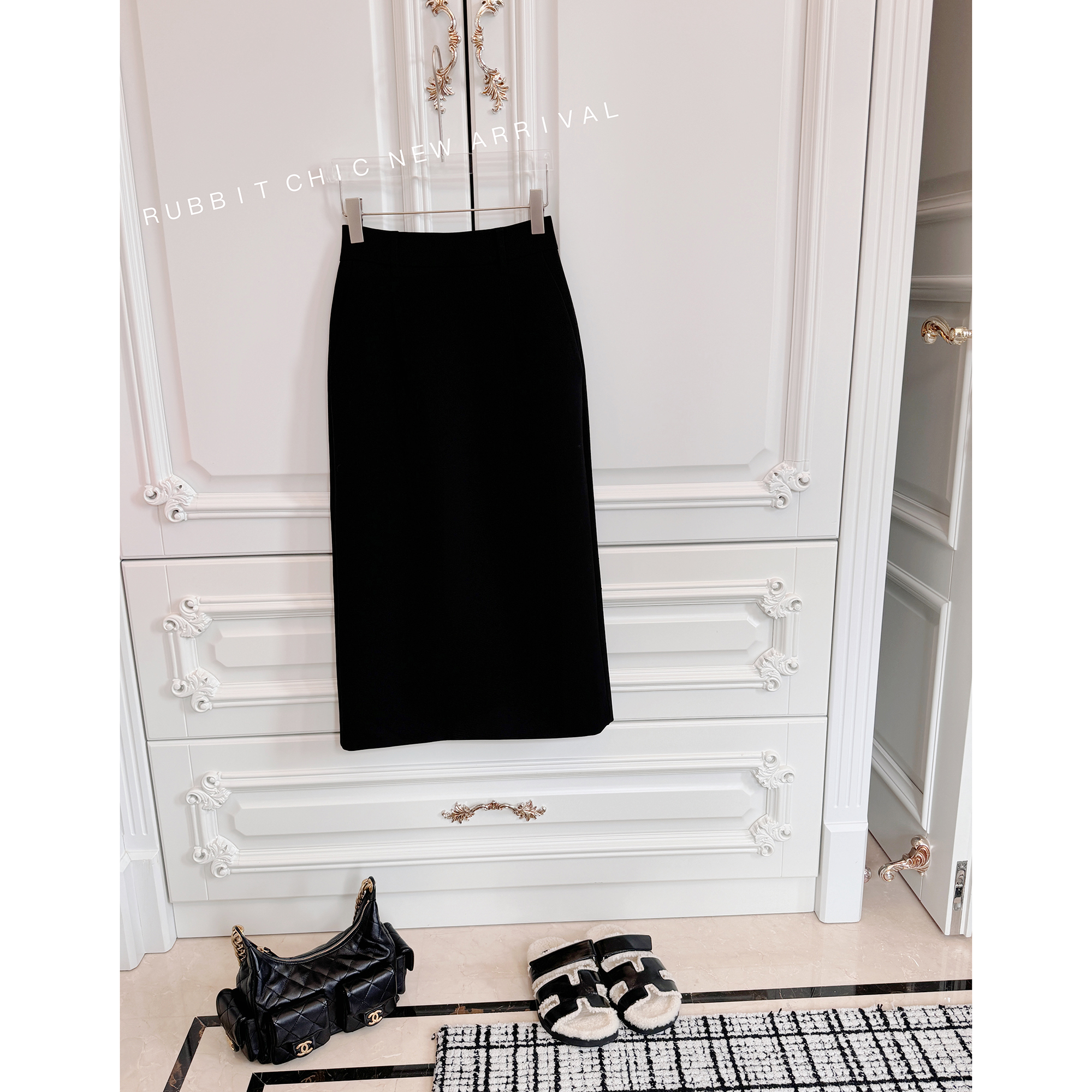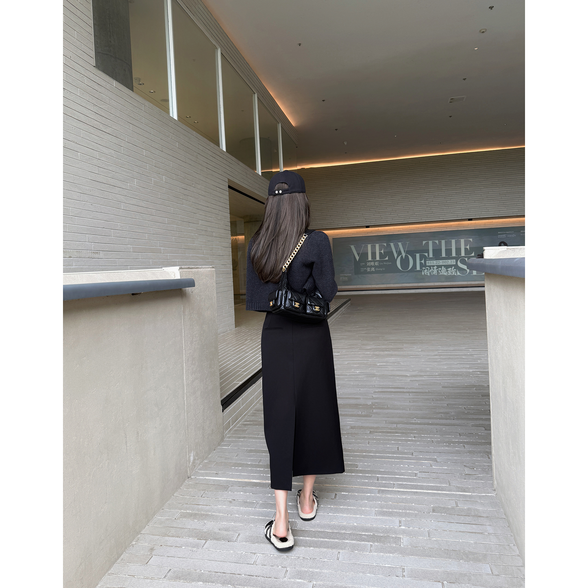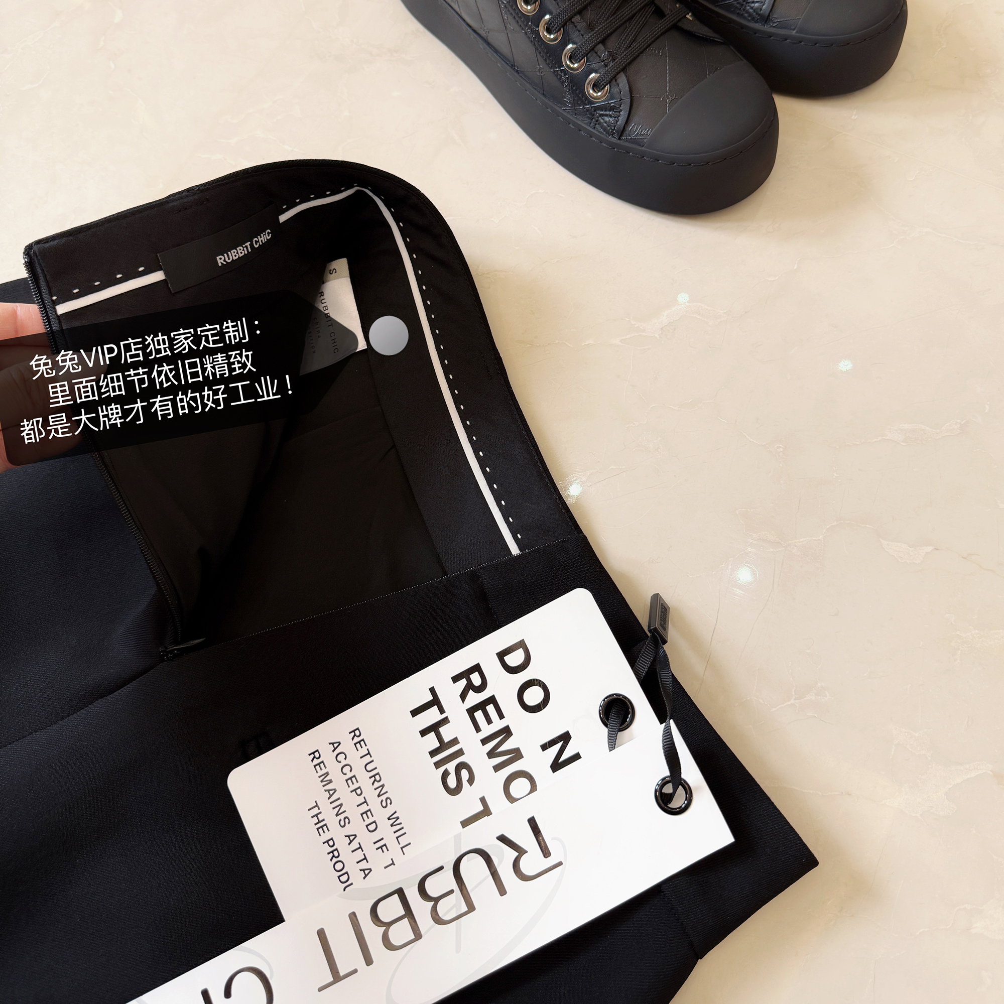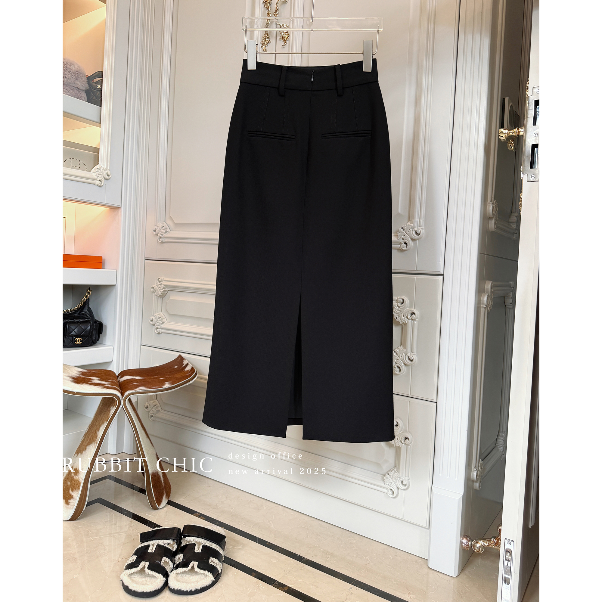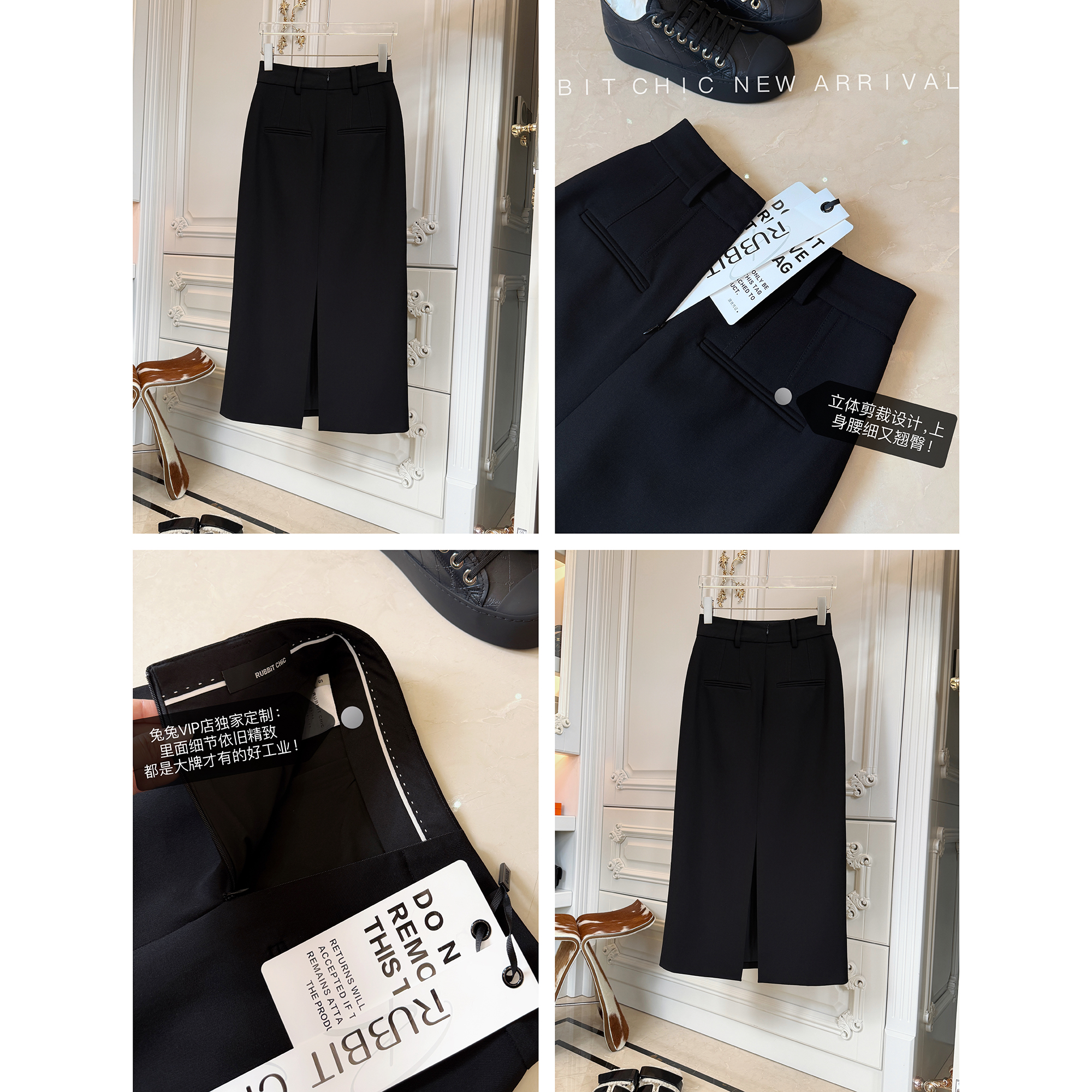 RUBBIT Classic Series Second Paper Man Little Black Skirt Drape High Waist Slimming Back Slit Midi Length Skirt