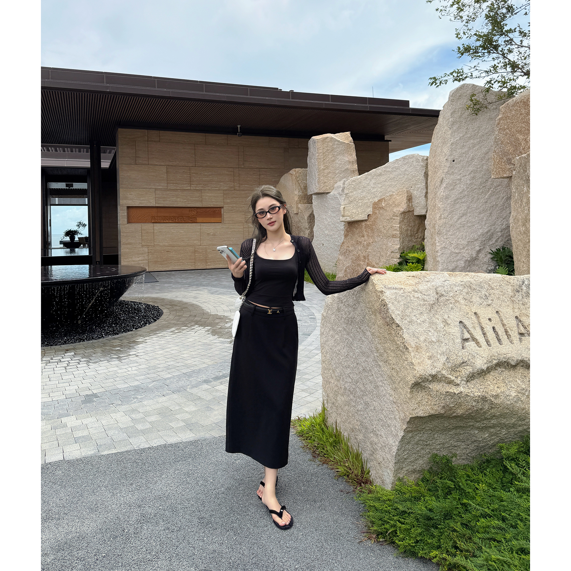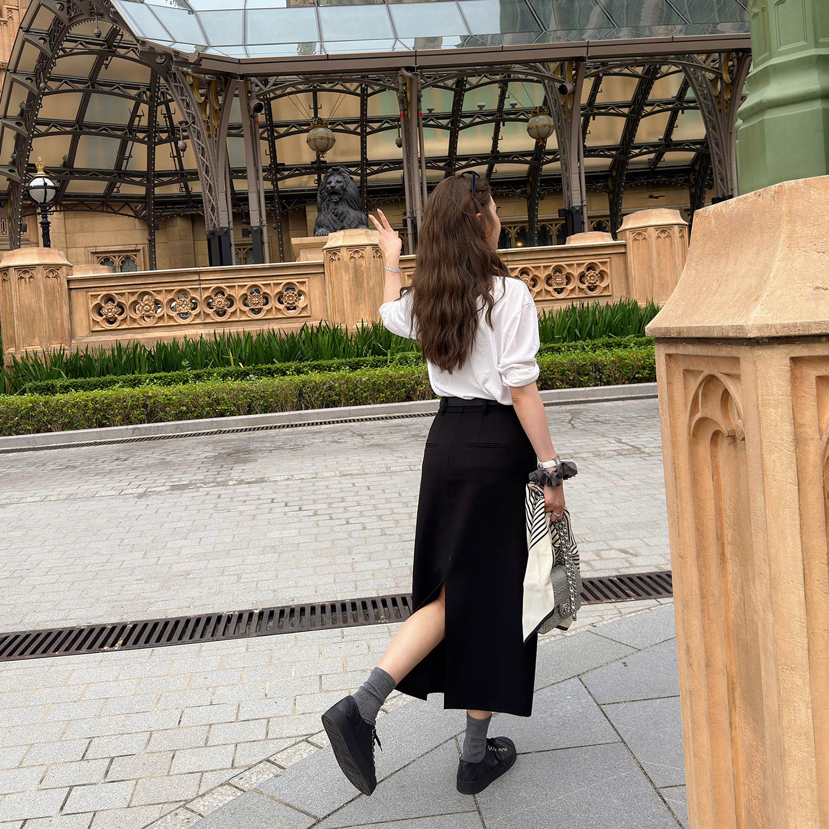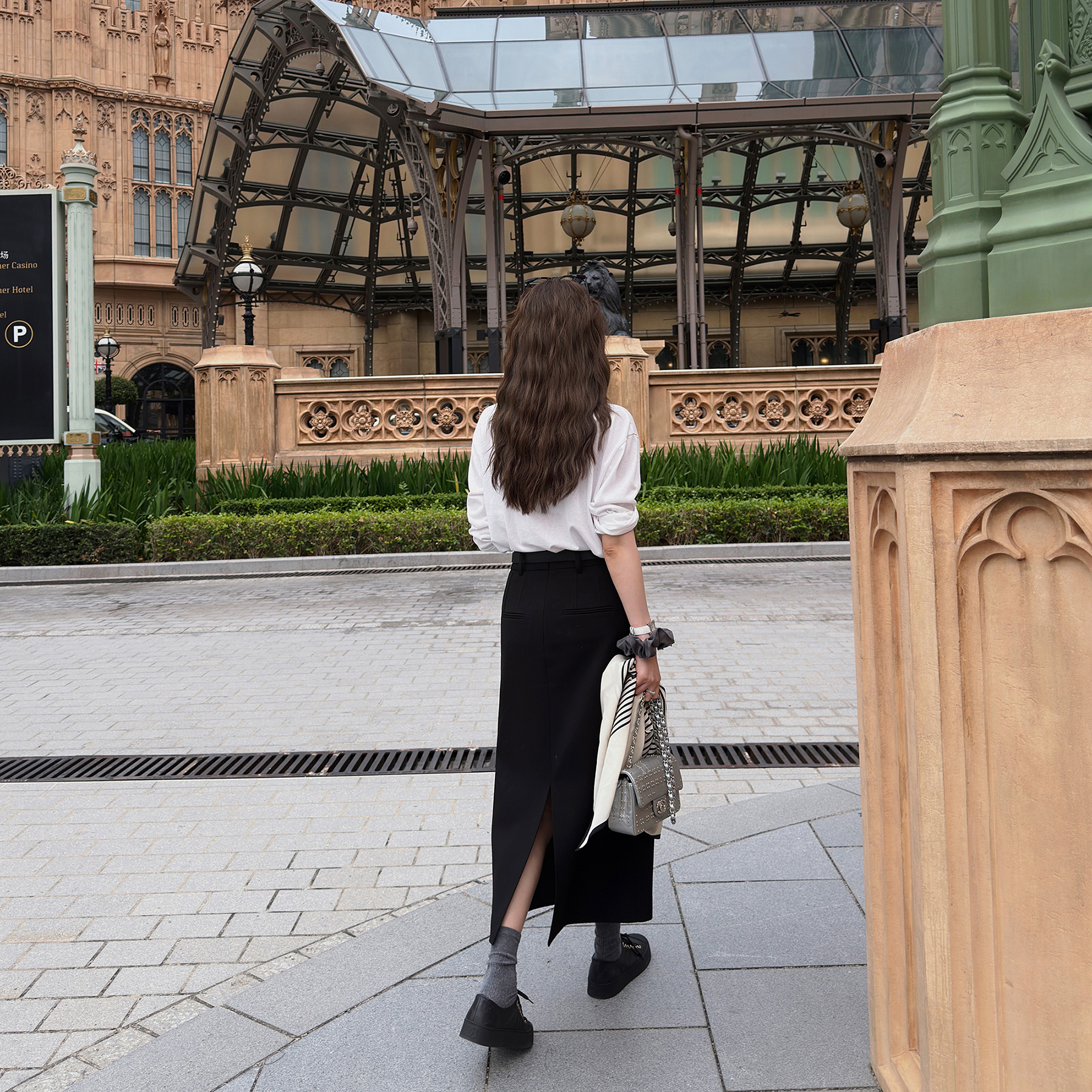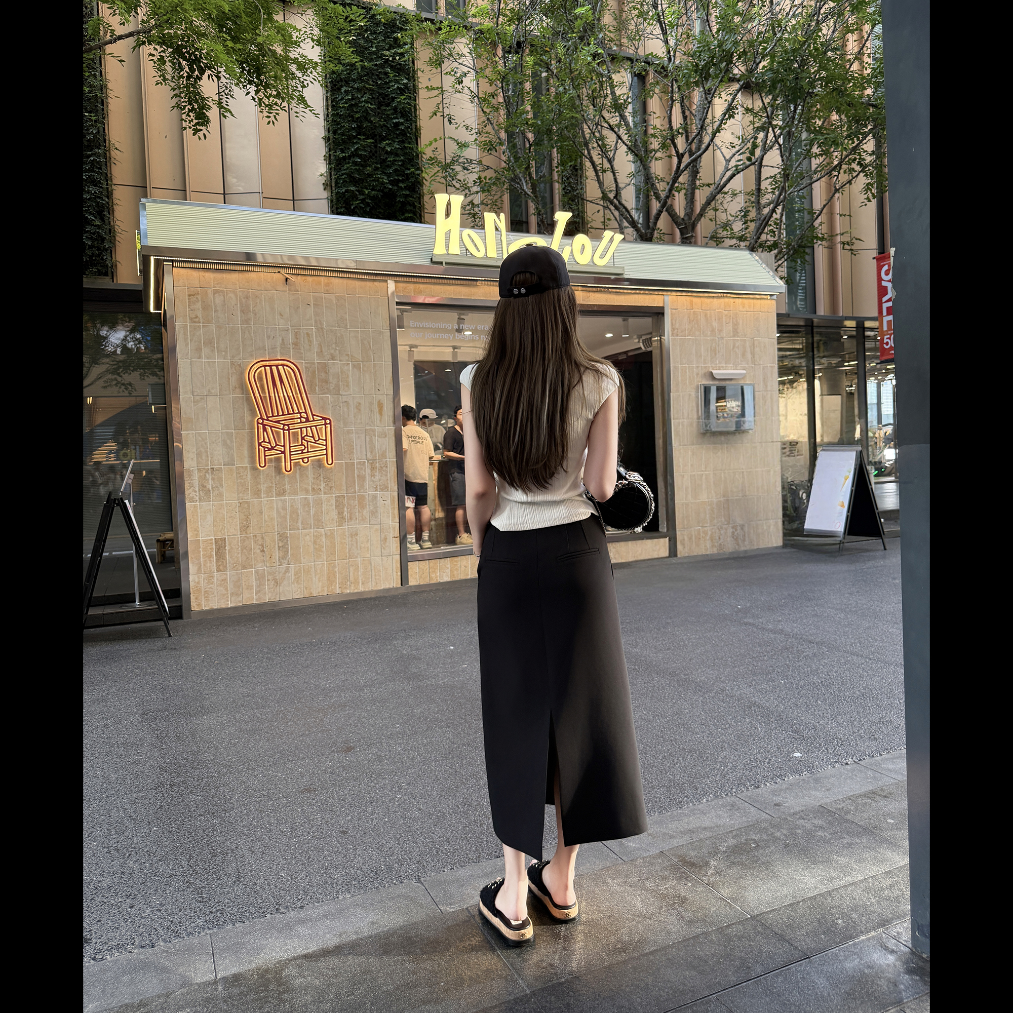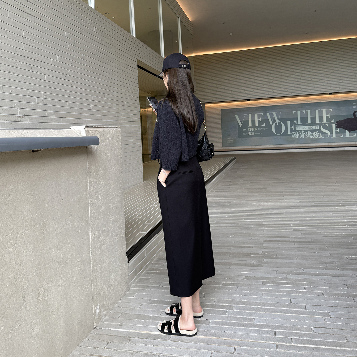 RUBBIT Classic Series Second Paper Man Little Black Skirt Drape High Waist Slimming Back Slit Midi Length Skirt