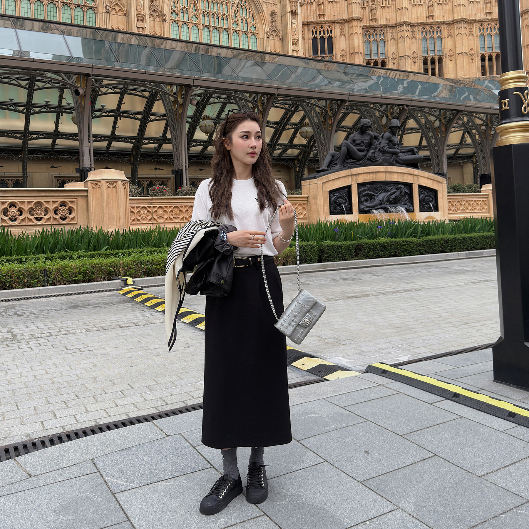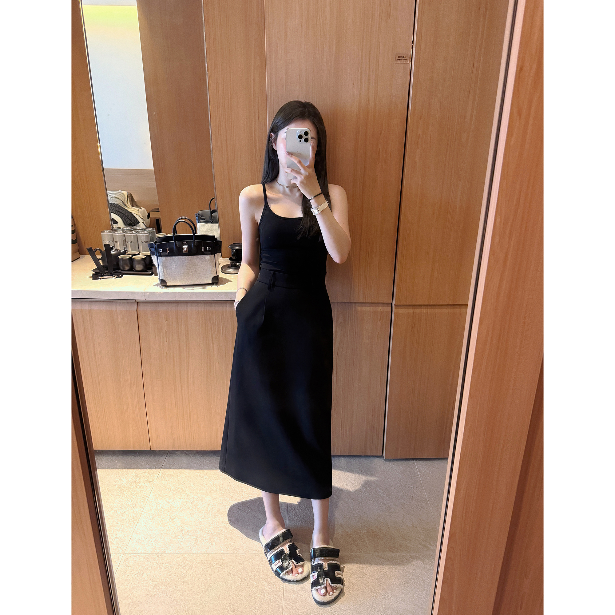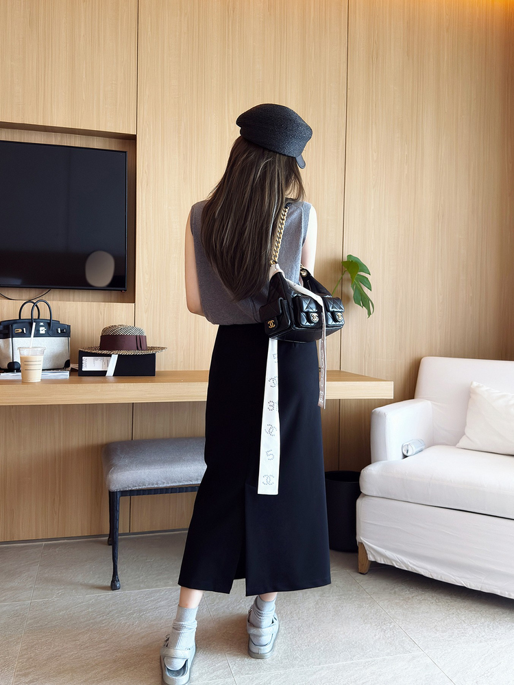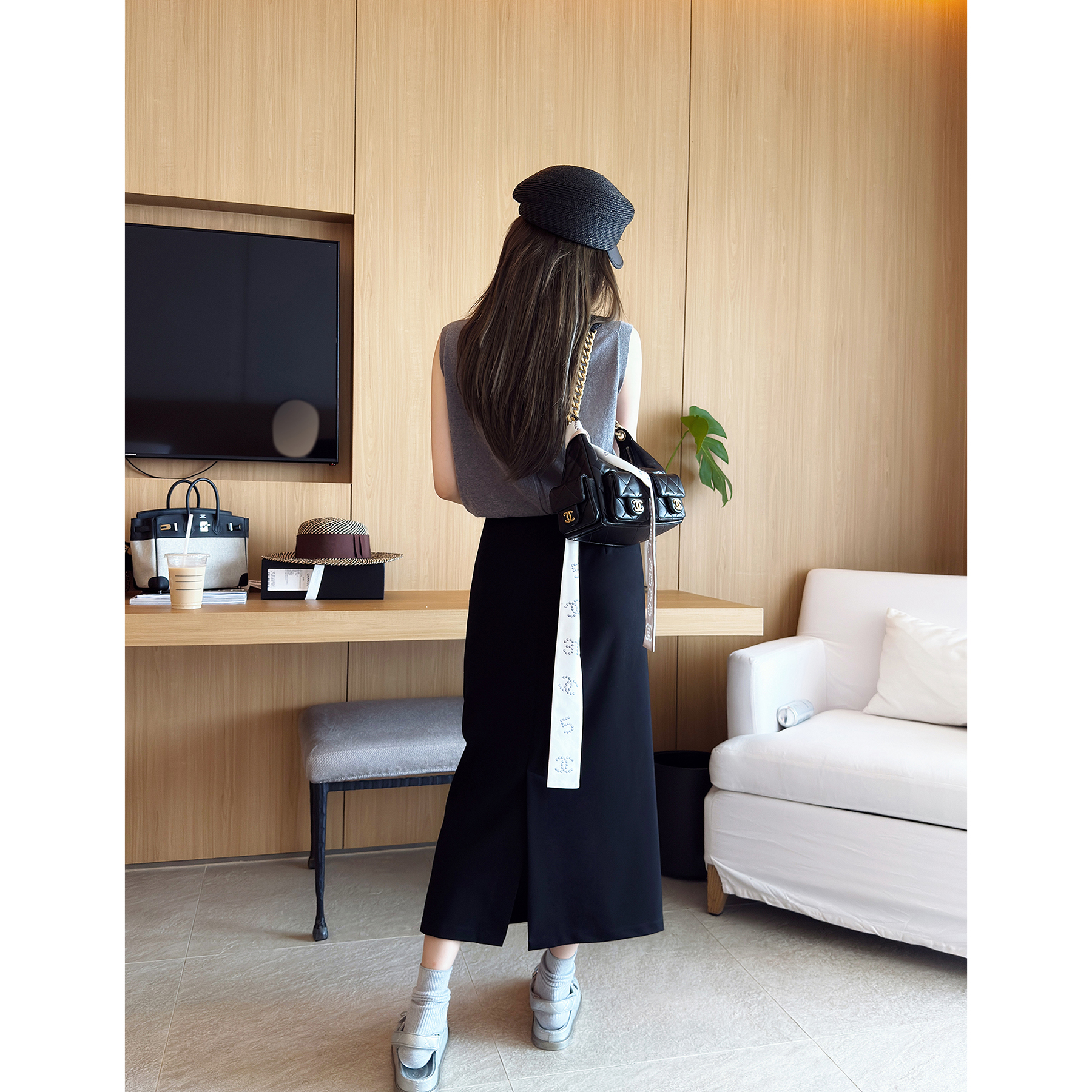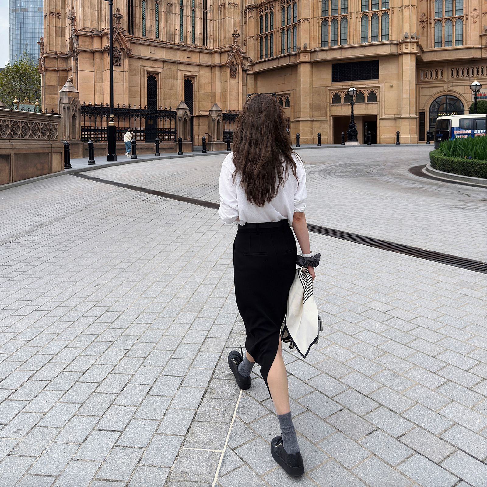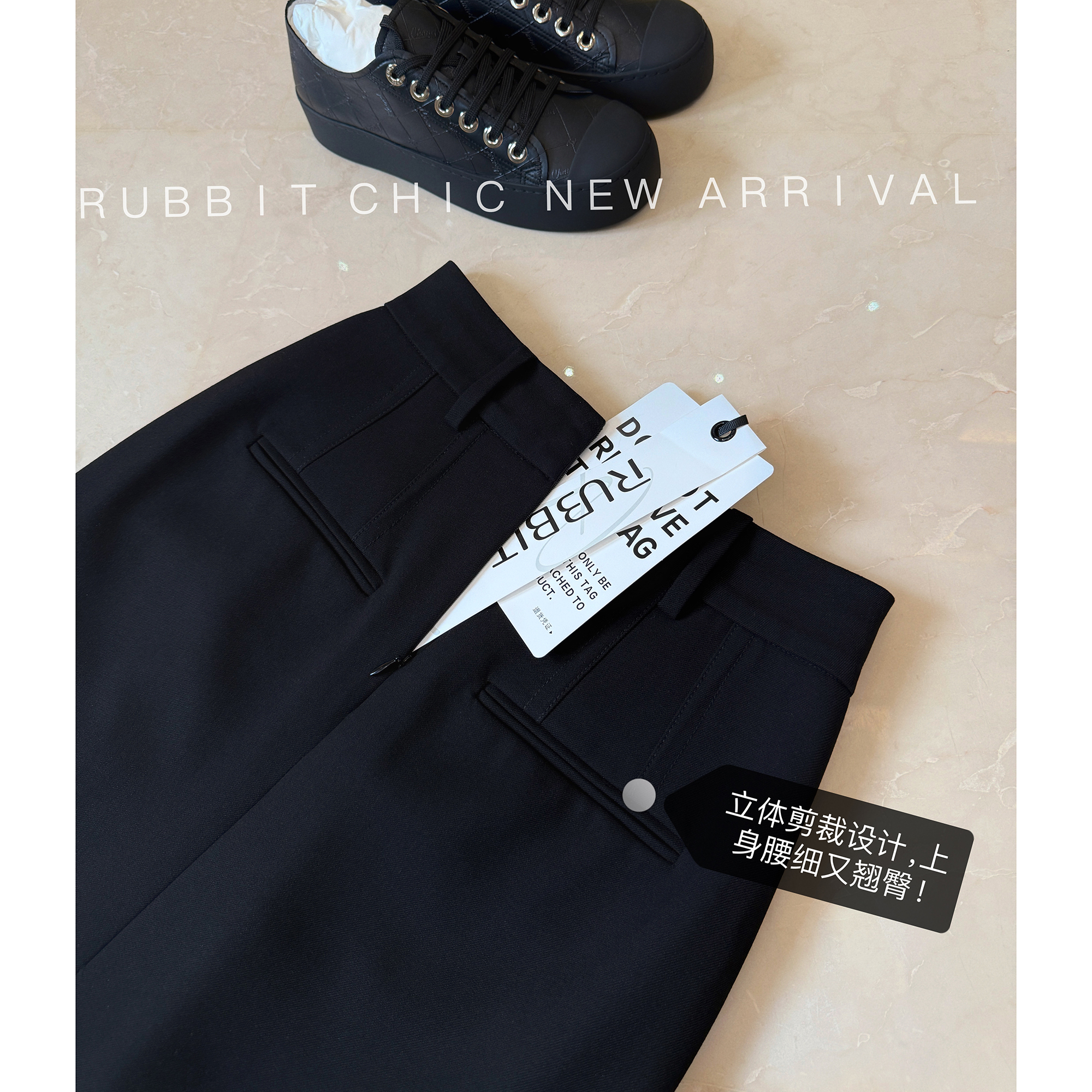 RUBBIT Classic Series Second Paper Man Little Black Skirt Drape High Waist Slimming Back Slit Midi Length Skirt