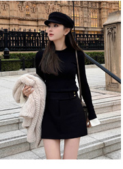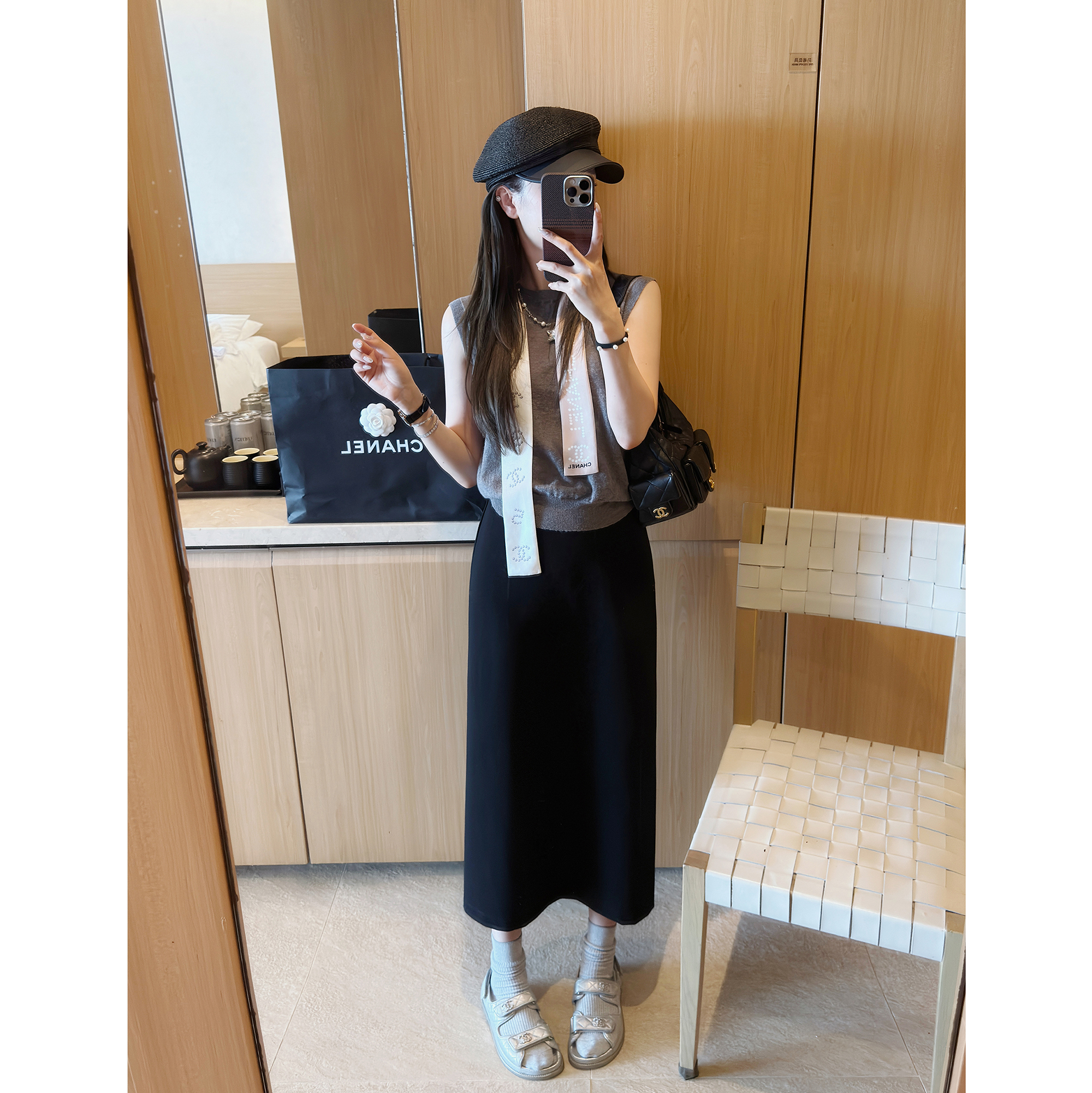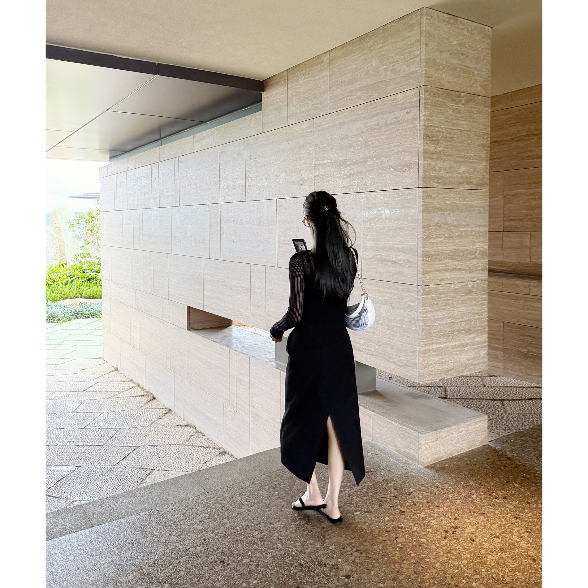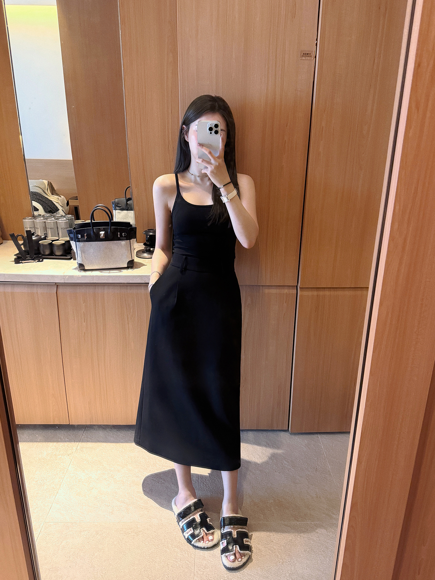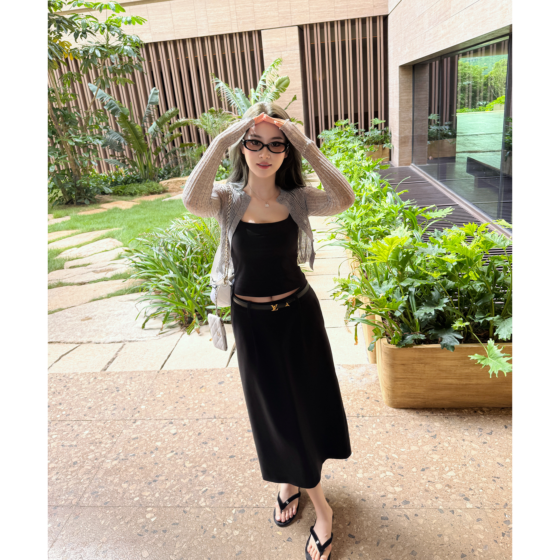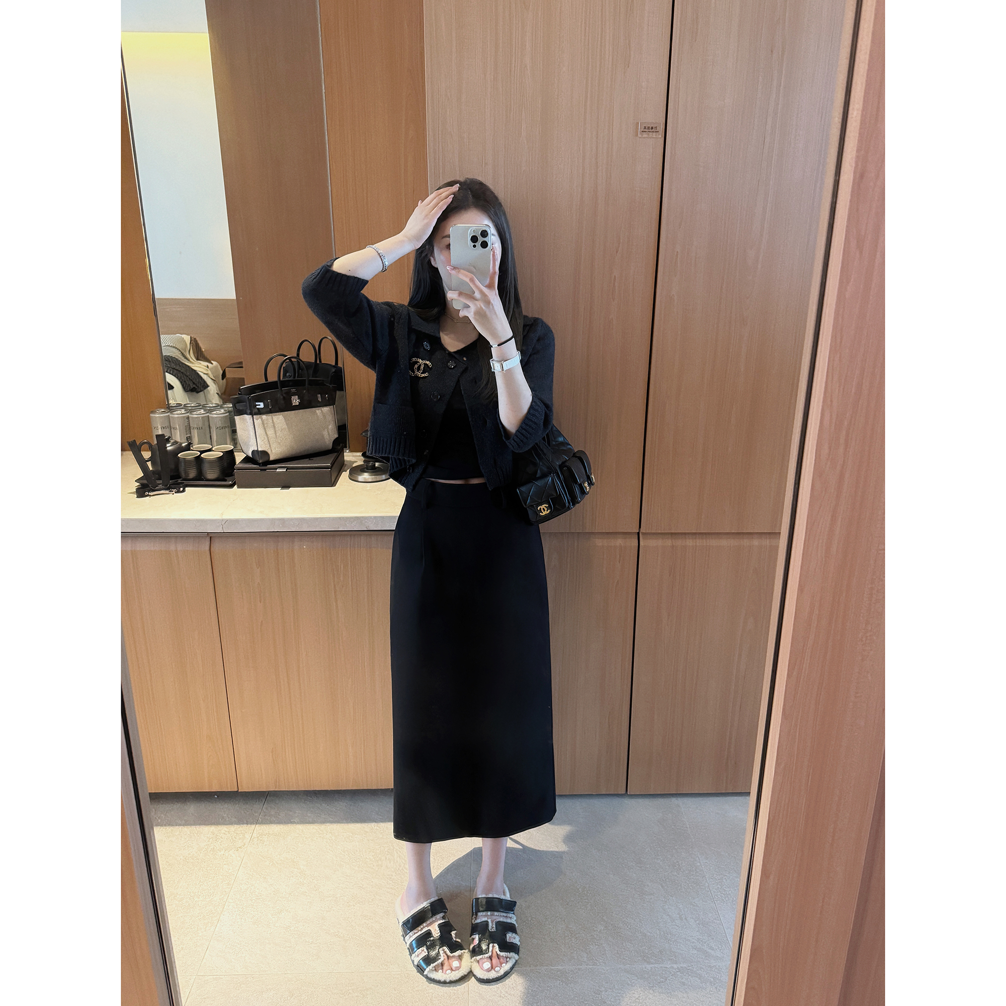 RUBBIT Classic Series Second Paper Man Little Black Skirt Drape High Waist Slimming Back Slit Midi Length Skirt