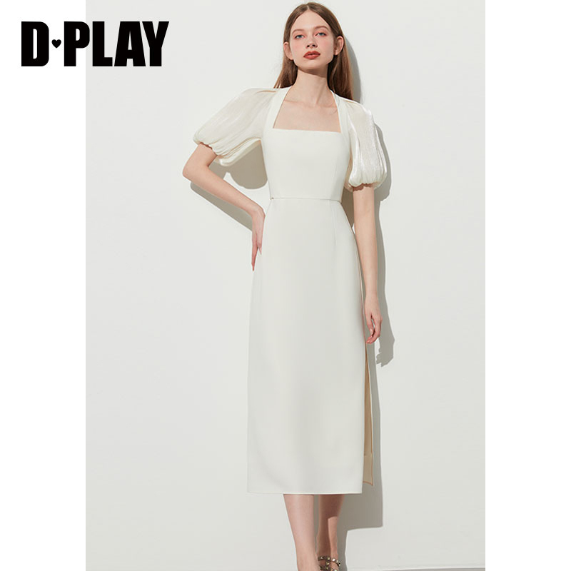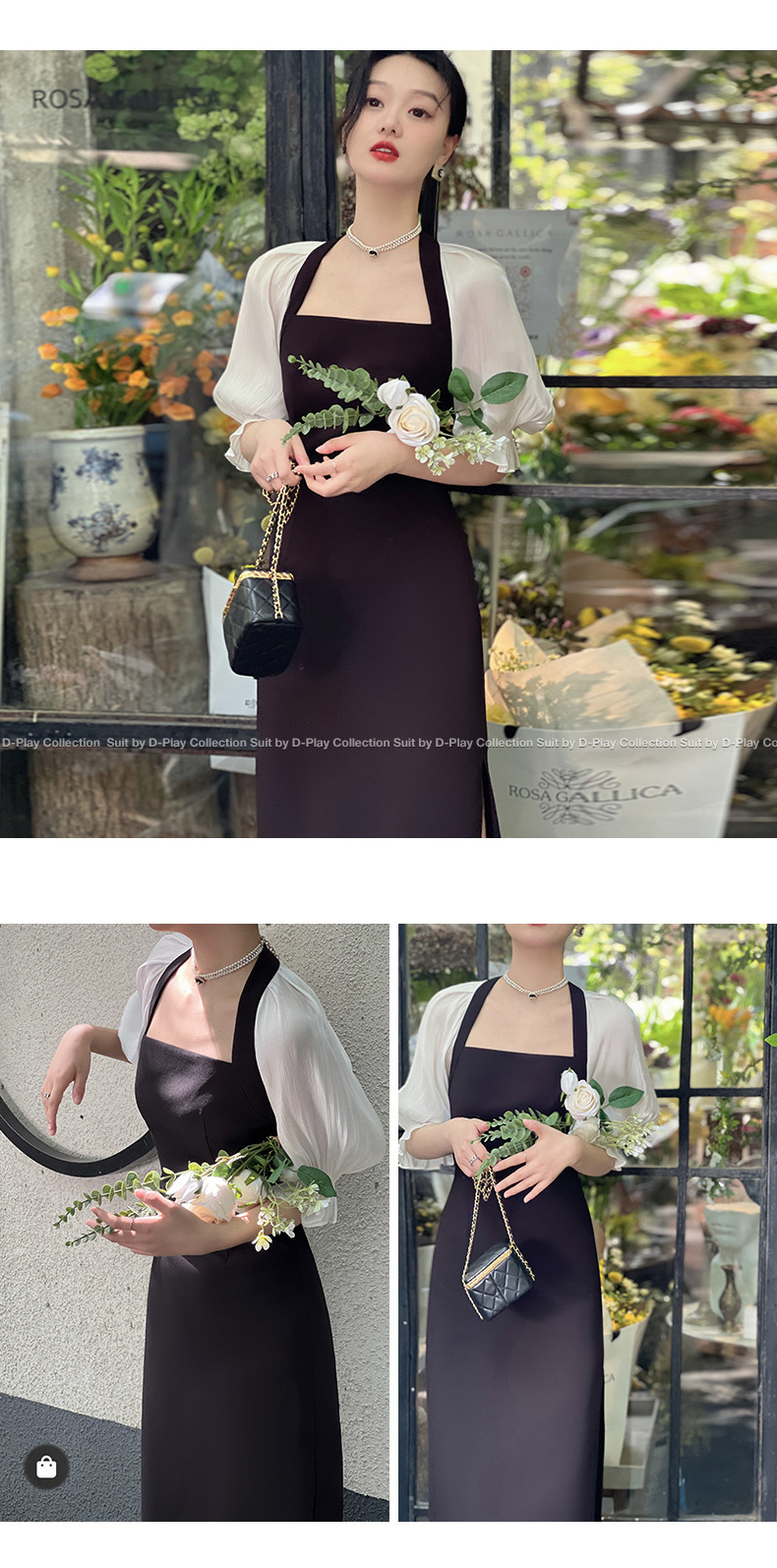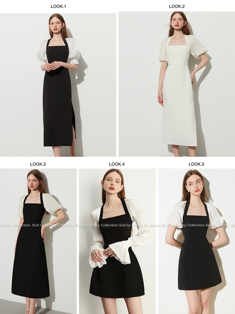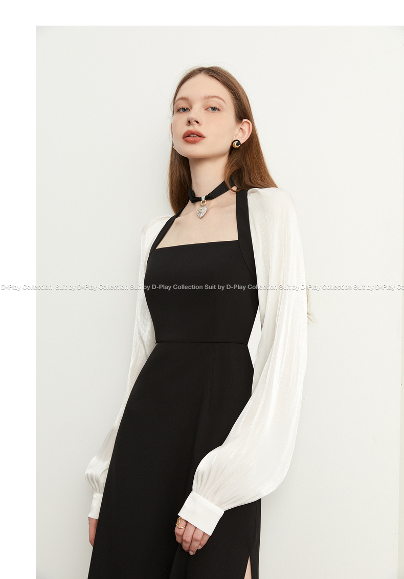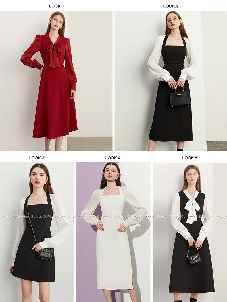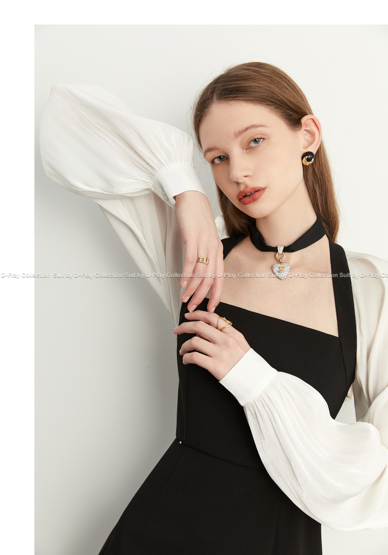 Autumn DPLAY2025, black and white long-sleeved dress, women's French light dress, gilt gauze long skirt, little black dress