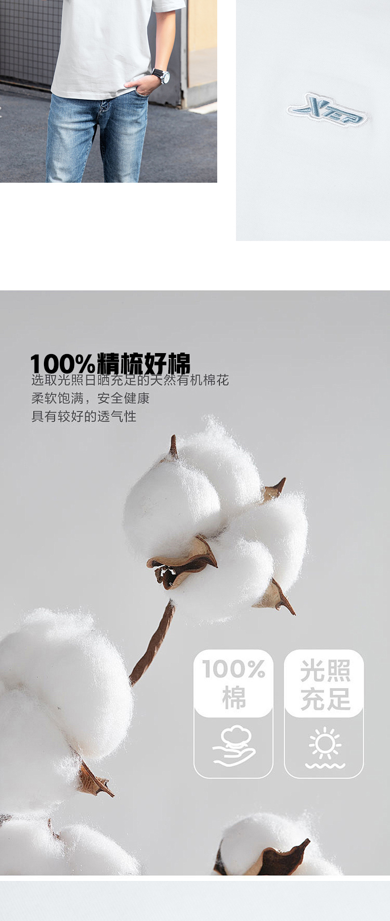 Xtep Cotton Short Sleeve T-Shirt Men's 2025 New Summer Men's Breathable Thin Official Flagship Store Men's Men's Clothing