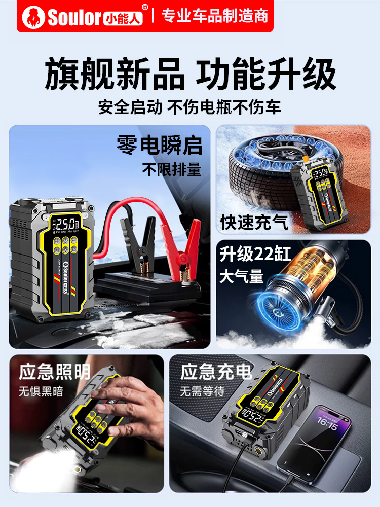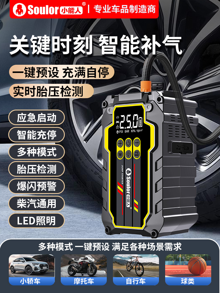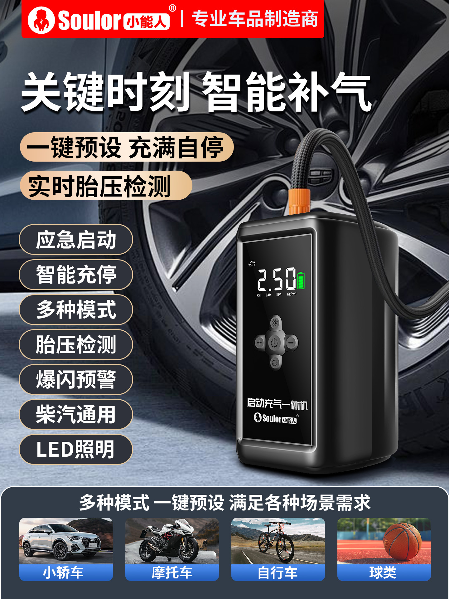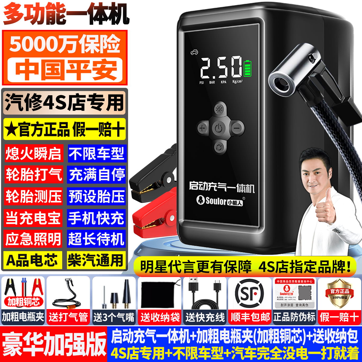 Small energy person car emergency start power supply, inflatable pump, integrated electromechanical bottle, electric treasure emergency fire weapon