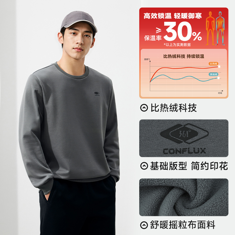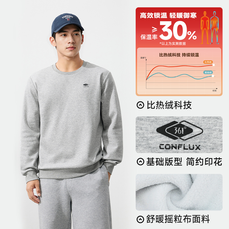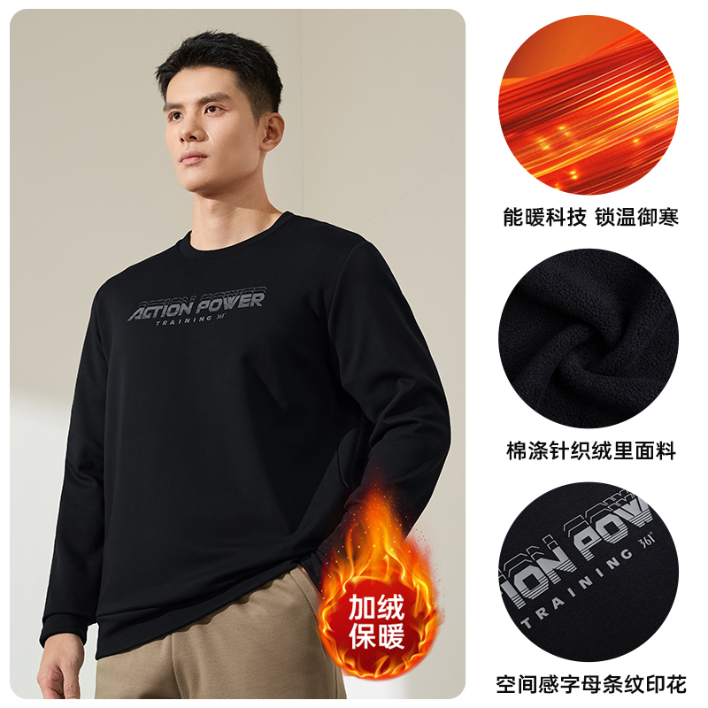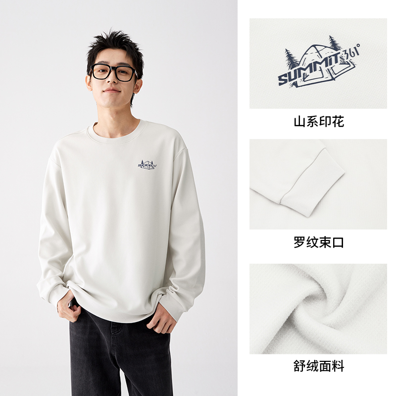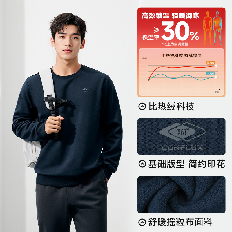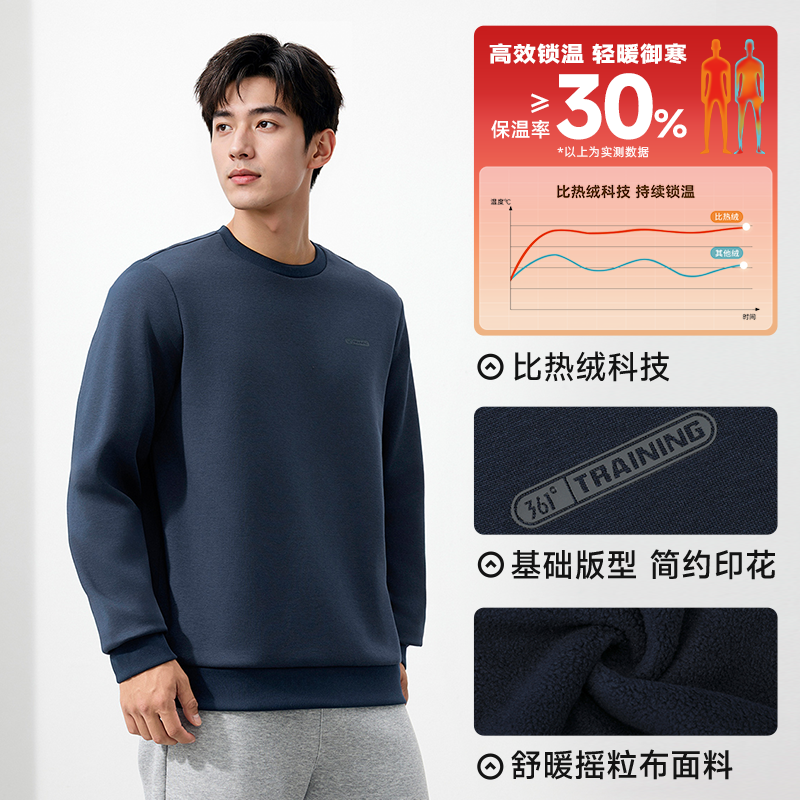 361 Sports Sweatshirt Men's 2025 Fall/Winter Crew Neck Men's Fleece Pullover Men's Long Sleeve Boys' Sportswear