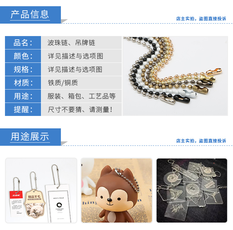 Diy doll jewelry accessories iron wave bead chain packaging chain tag chain material key black gold bead chain