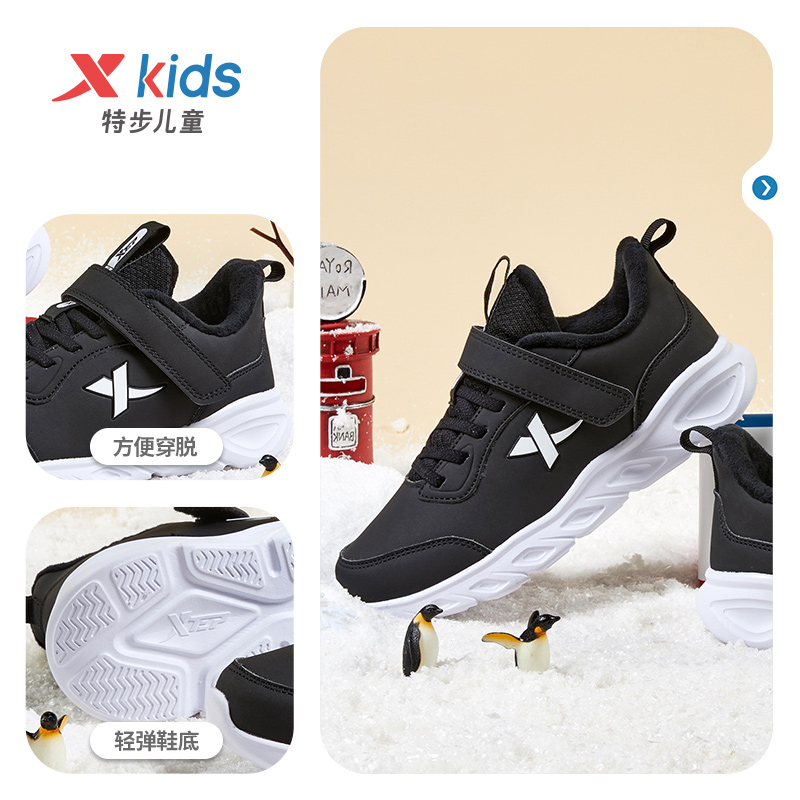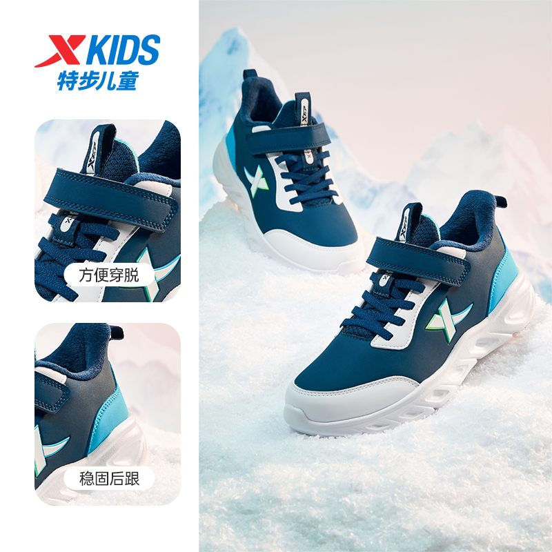 Xtep children's sneakers, autumn boys' shoes, running shoes, medium and large boys, autumn and winter warm children's shoes, running shoes