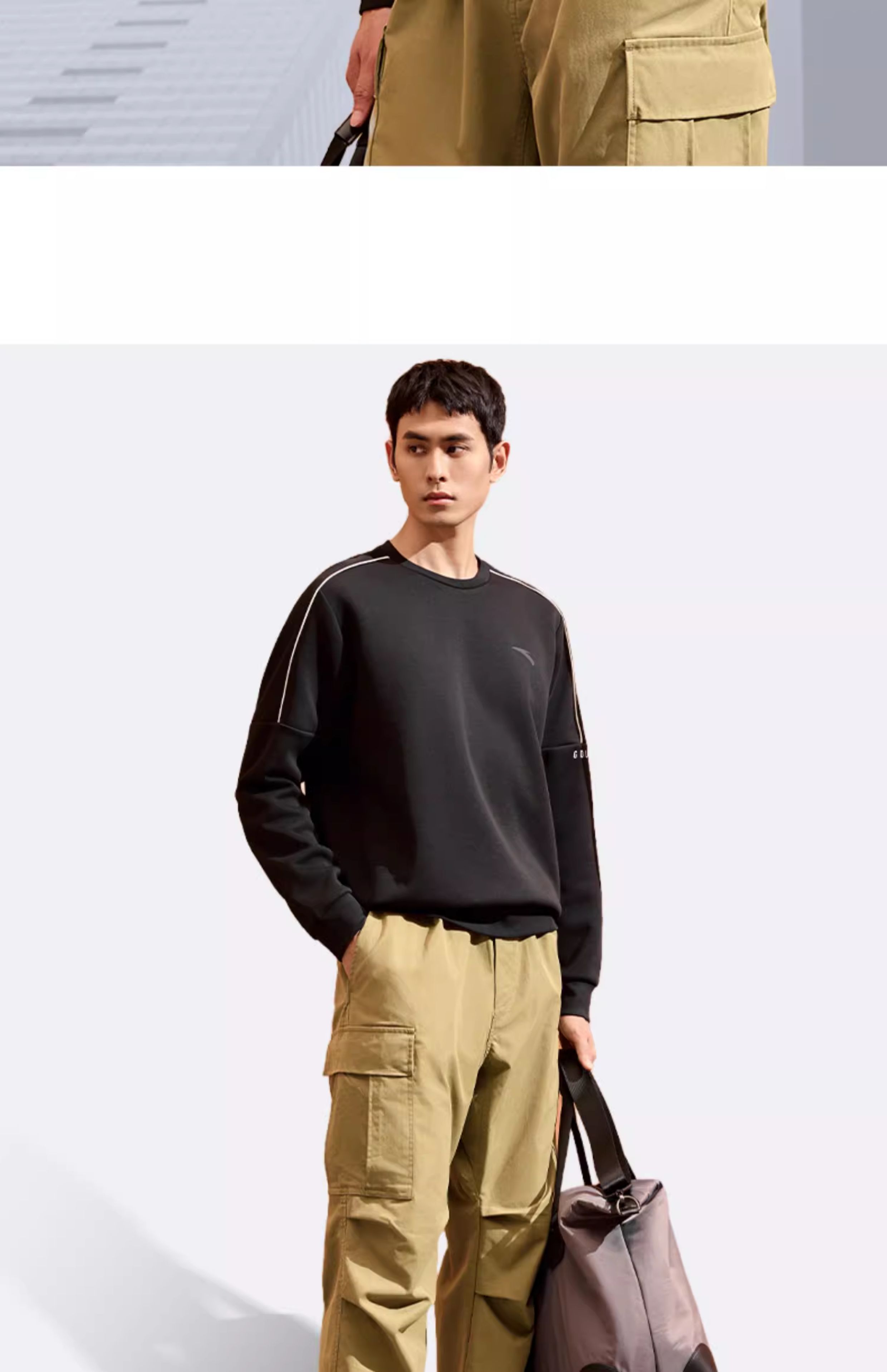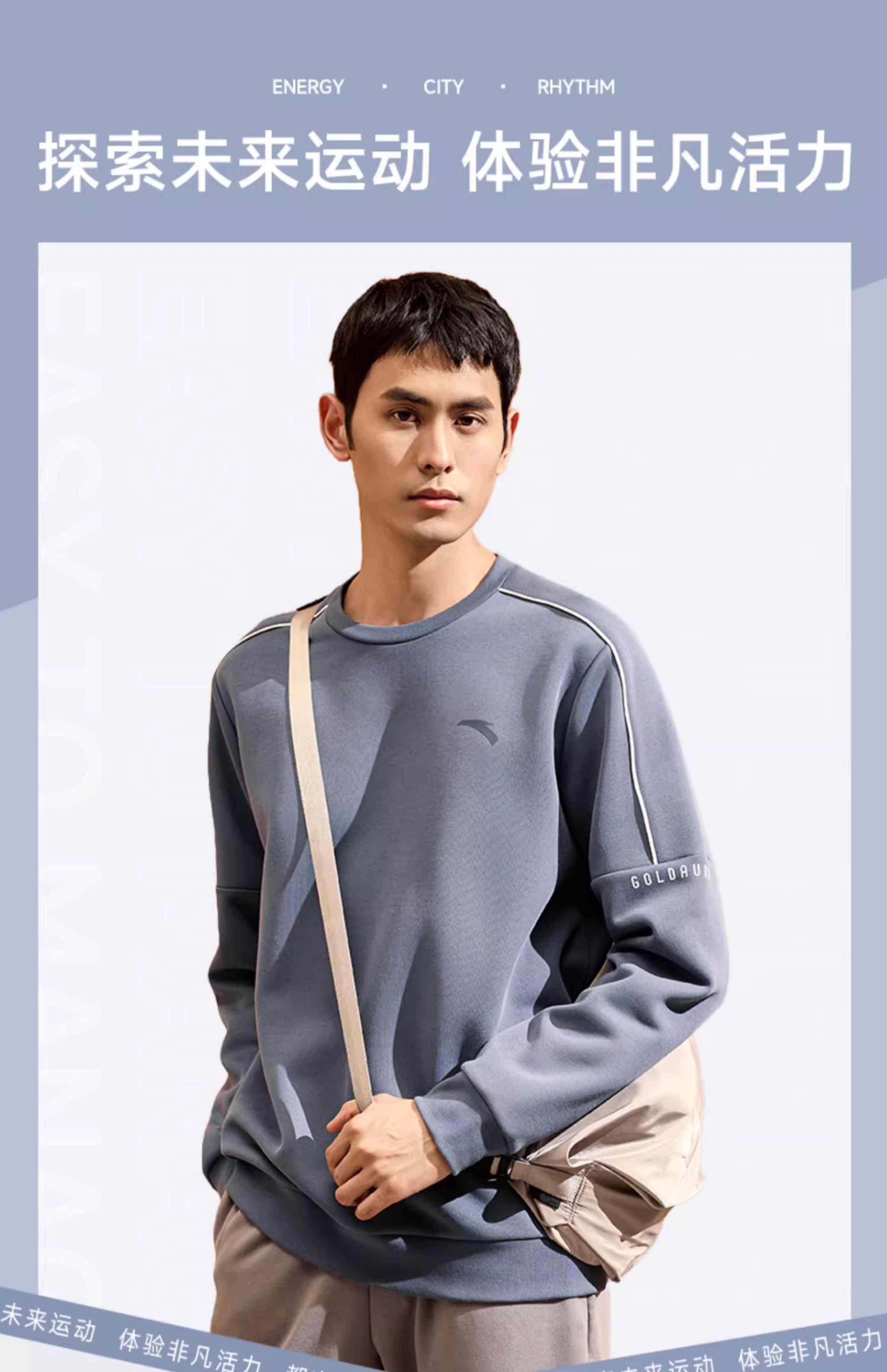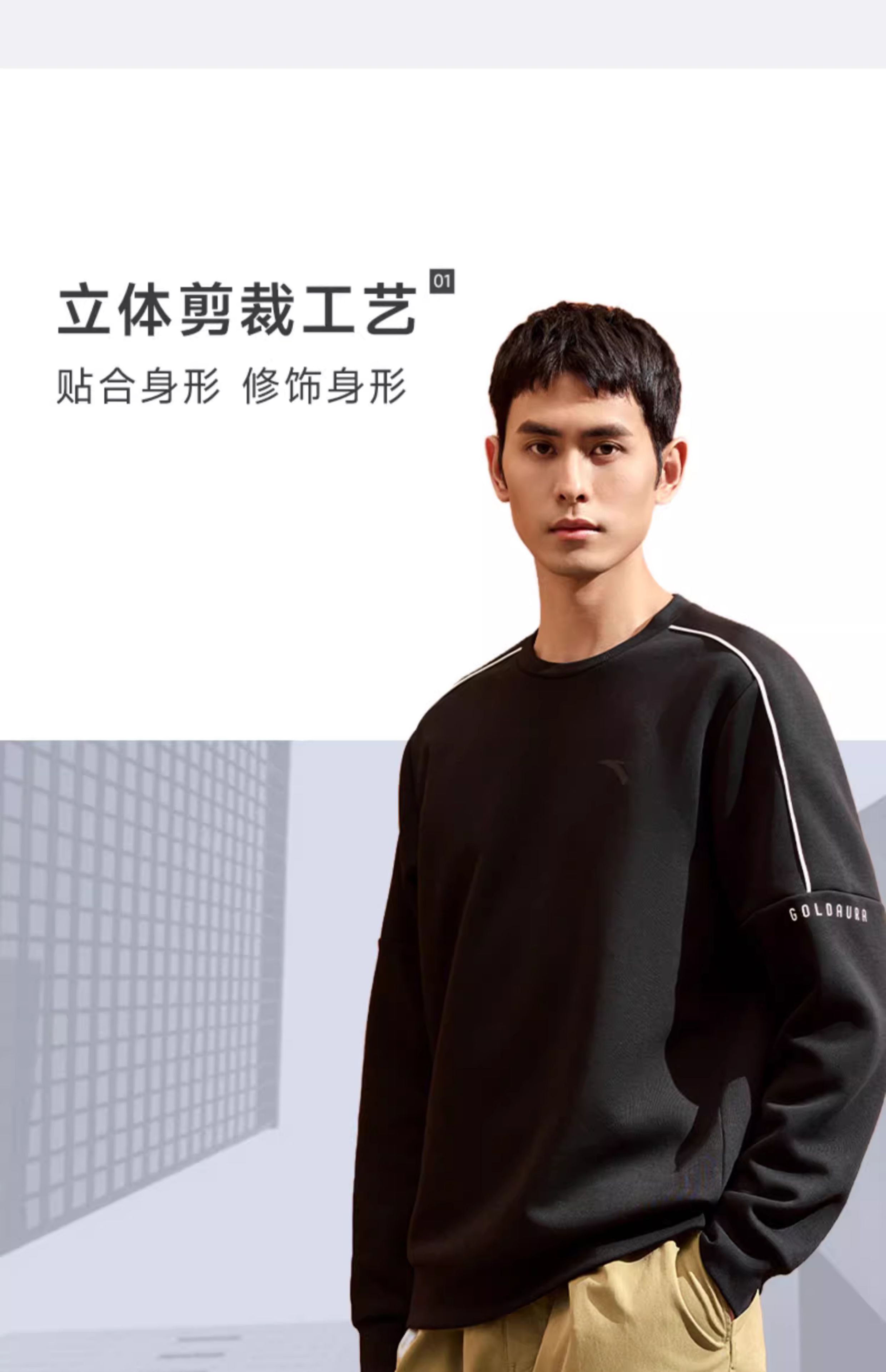 ANTA Youth Sweatshirt Men's 2025 Winter New Men's Official Flagship Long-Sleeved T-Shirt Men's Crew Neck Top