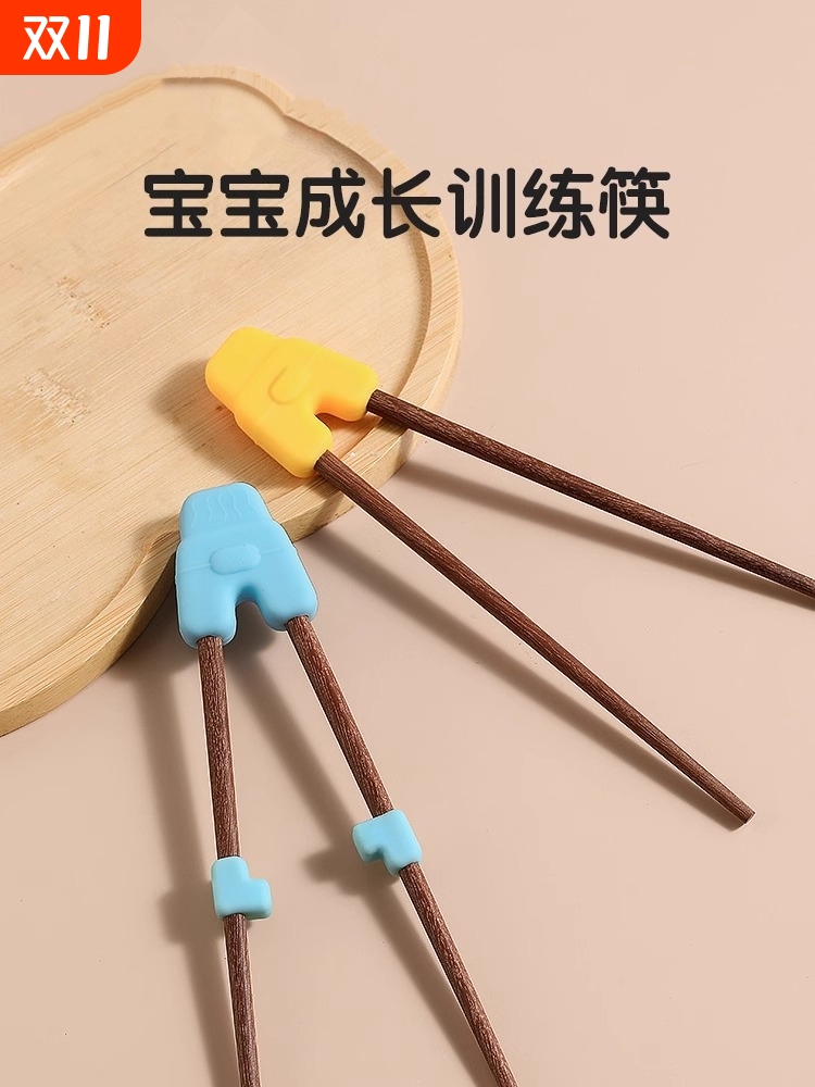 Children's chopsticks training chopsticks 3 years old 6 years old home wooden assistive device anti-slip baby special food grade silicone learning