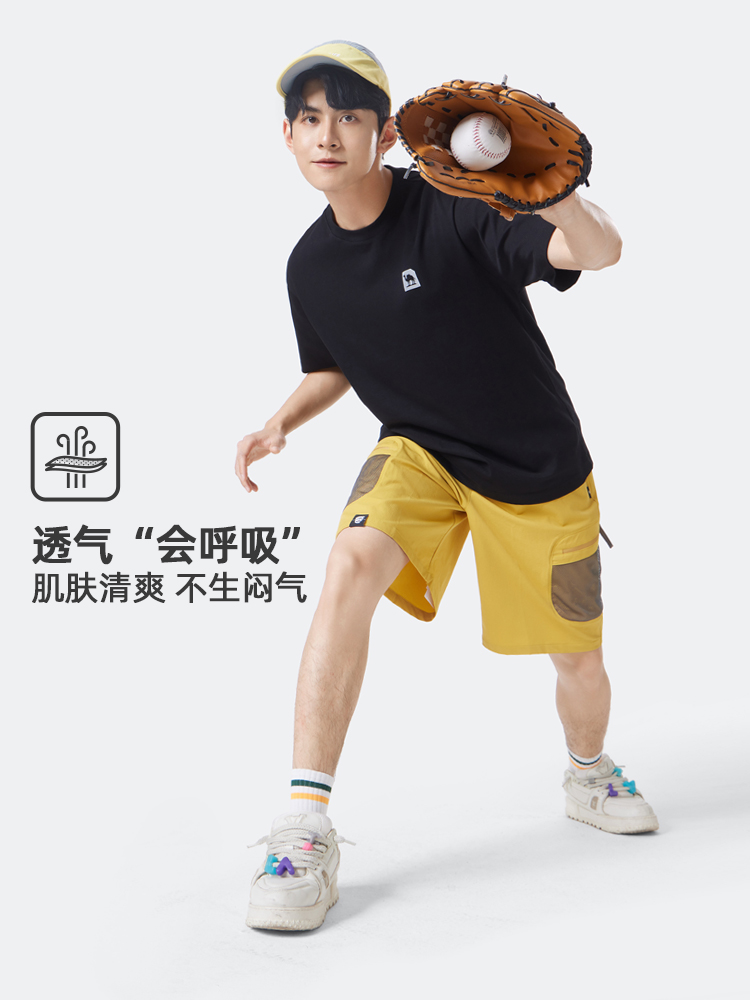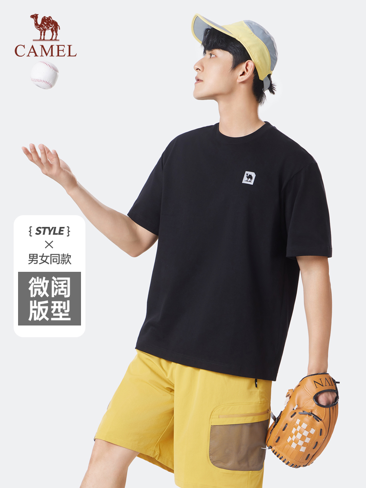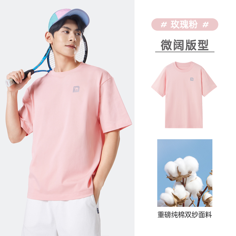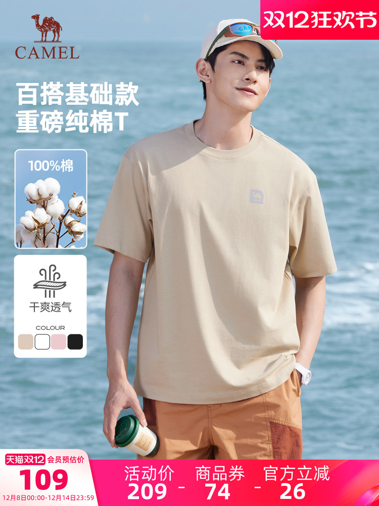 Camel men's T-shirt men's sports summer loose breathable cool pure cotton solid color crew neck heavy short sleeve short sleeve half sleeve top