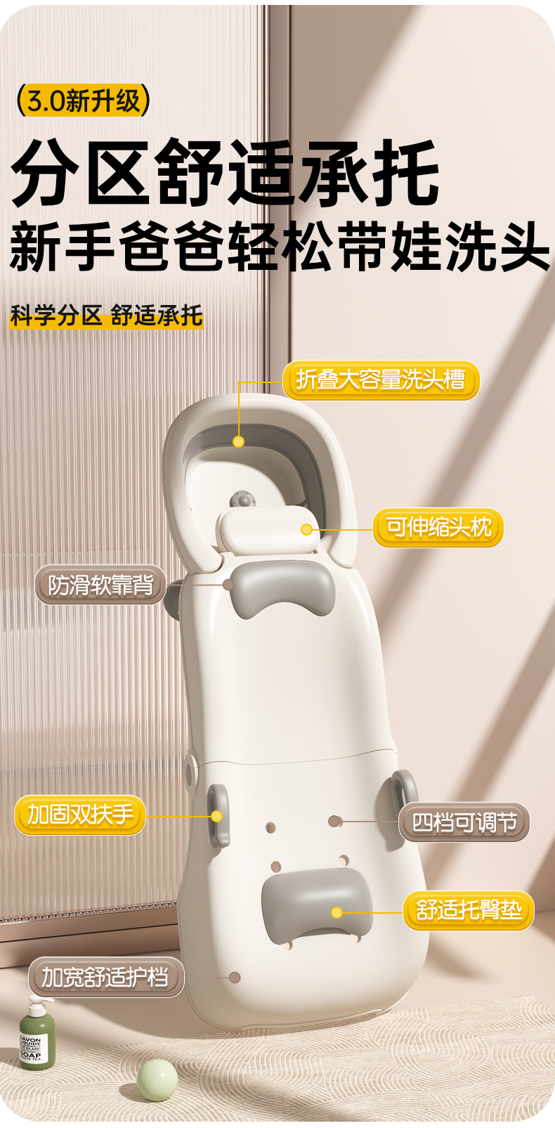 Little Muma children's shampoo reclining chair, baby shampoo artifact, foldable girl shampoo bed, household children's shampoo stool