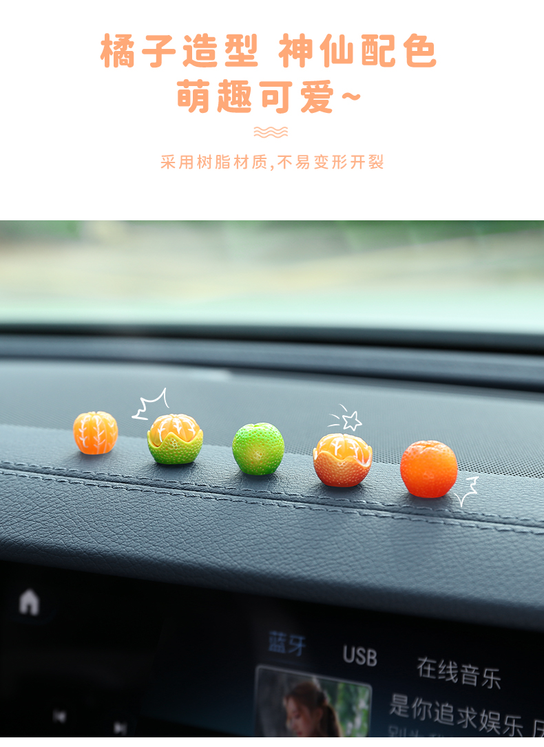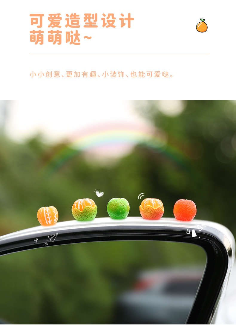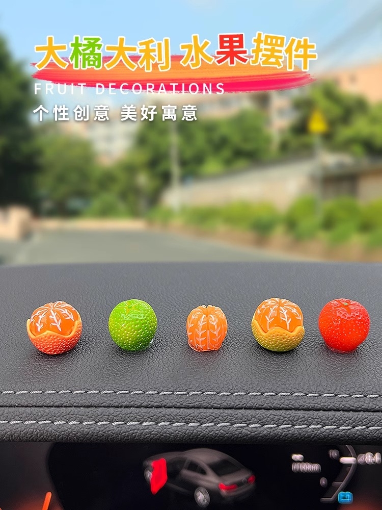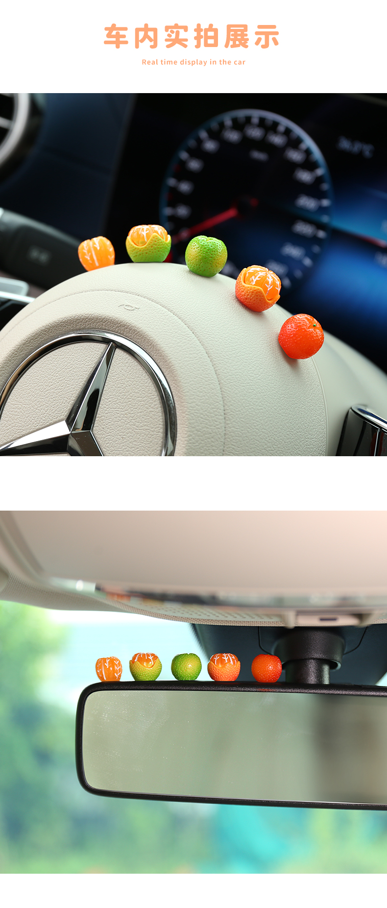 Car knick-knacks mini simulation orange car interior products, center console good things, rearview mirrors, cute decorative supplies