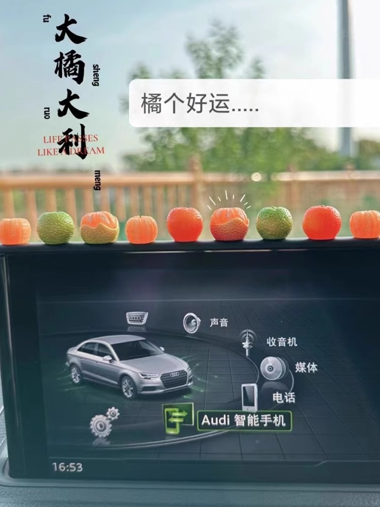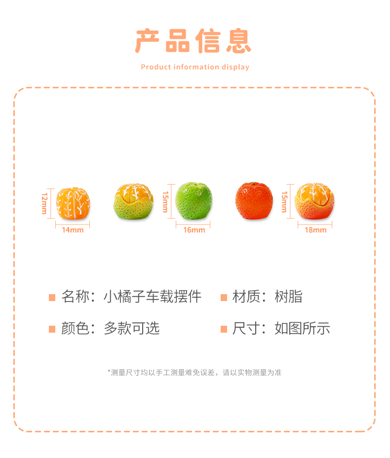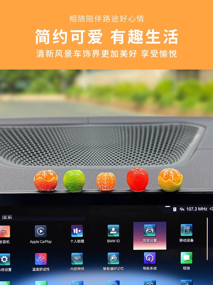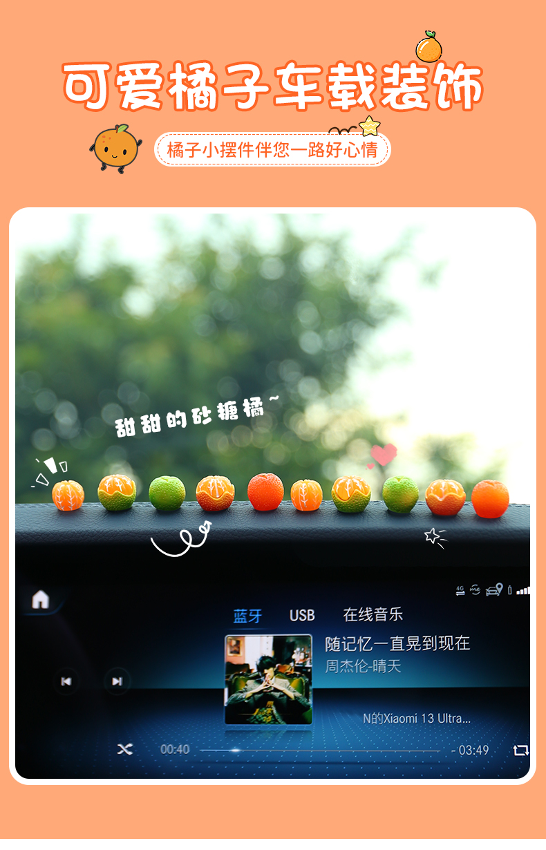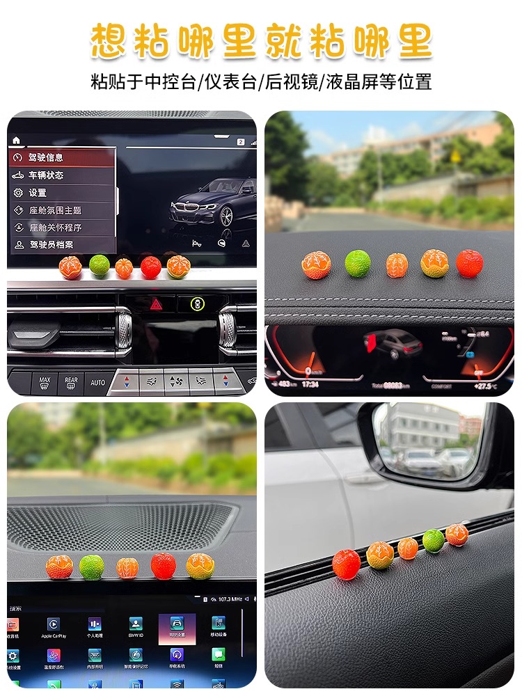 Car knick-knacks mini simulation orange car interior products, center console good things, rearview mirrors, cute decorative supplies