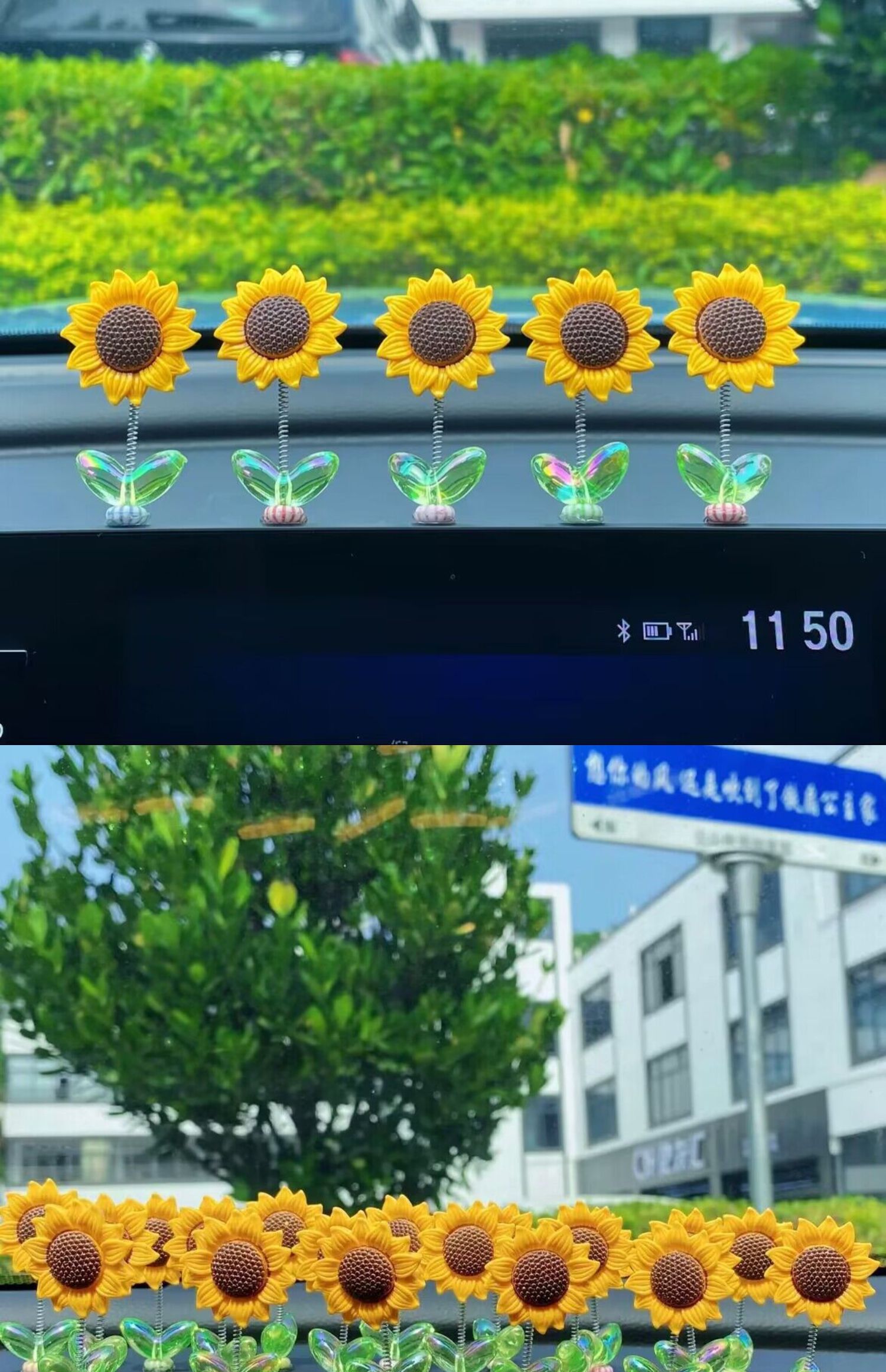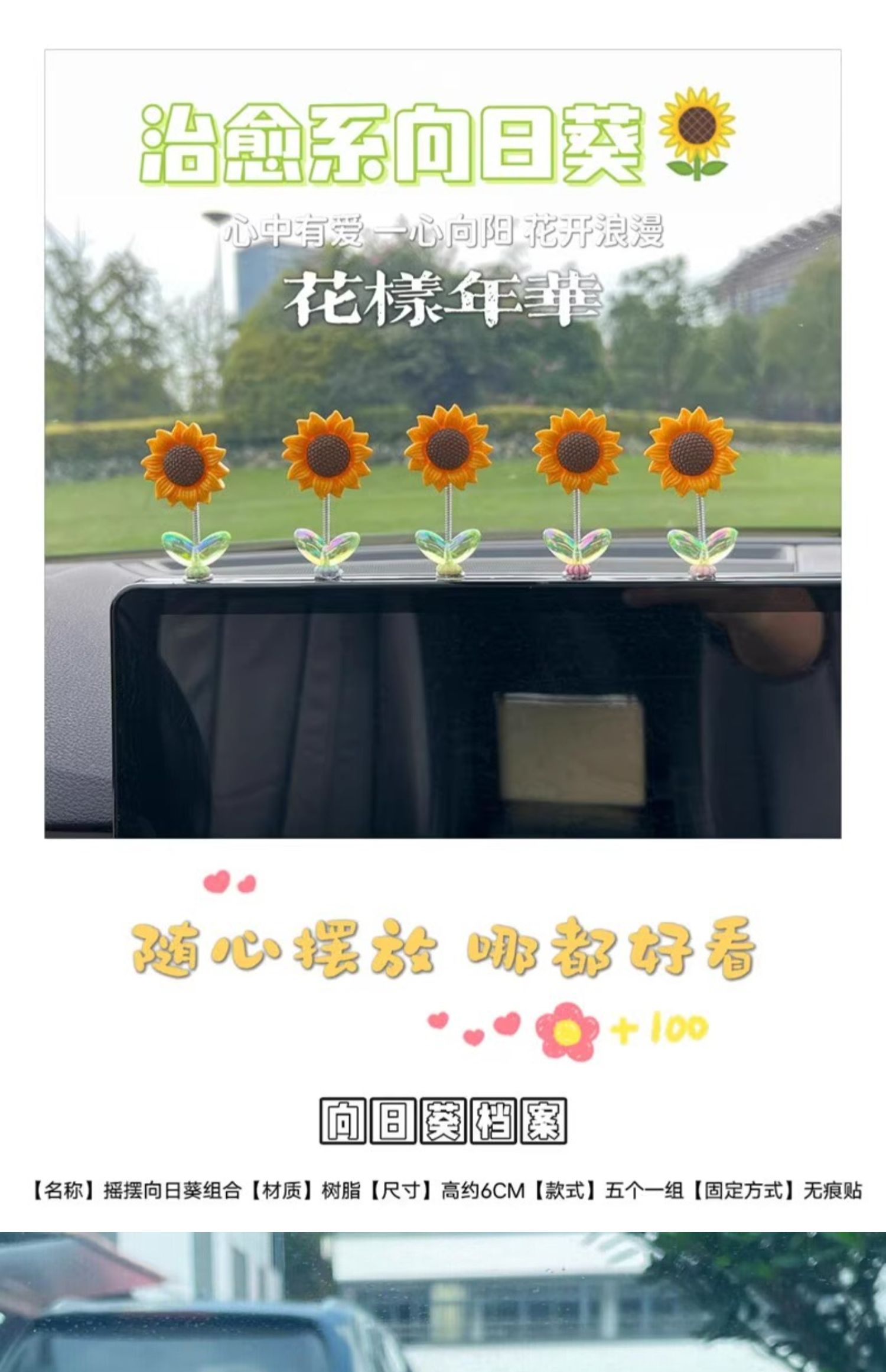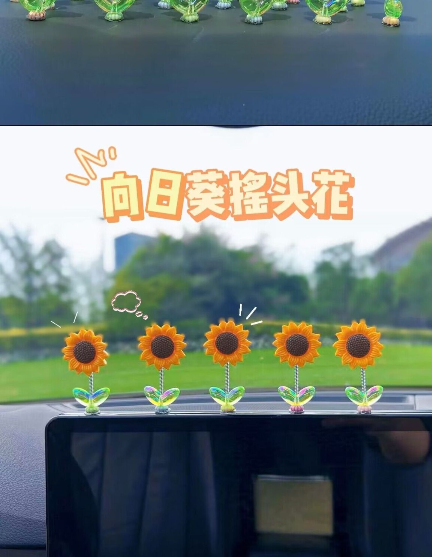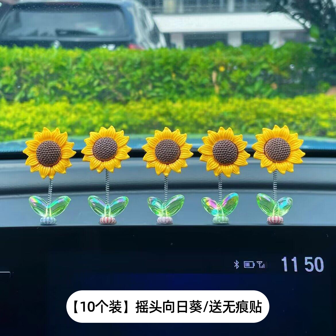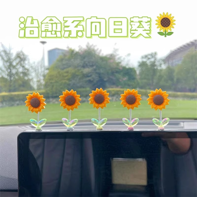 Cute bobblehead sunflower car ornament healing fresh flowers car center console rearview mirror ornament swinging