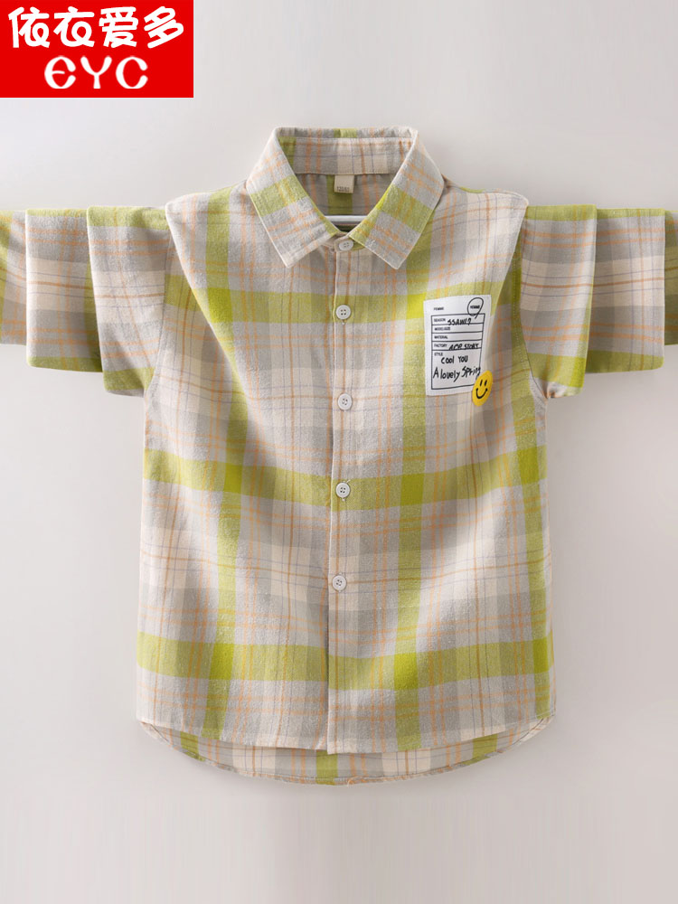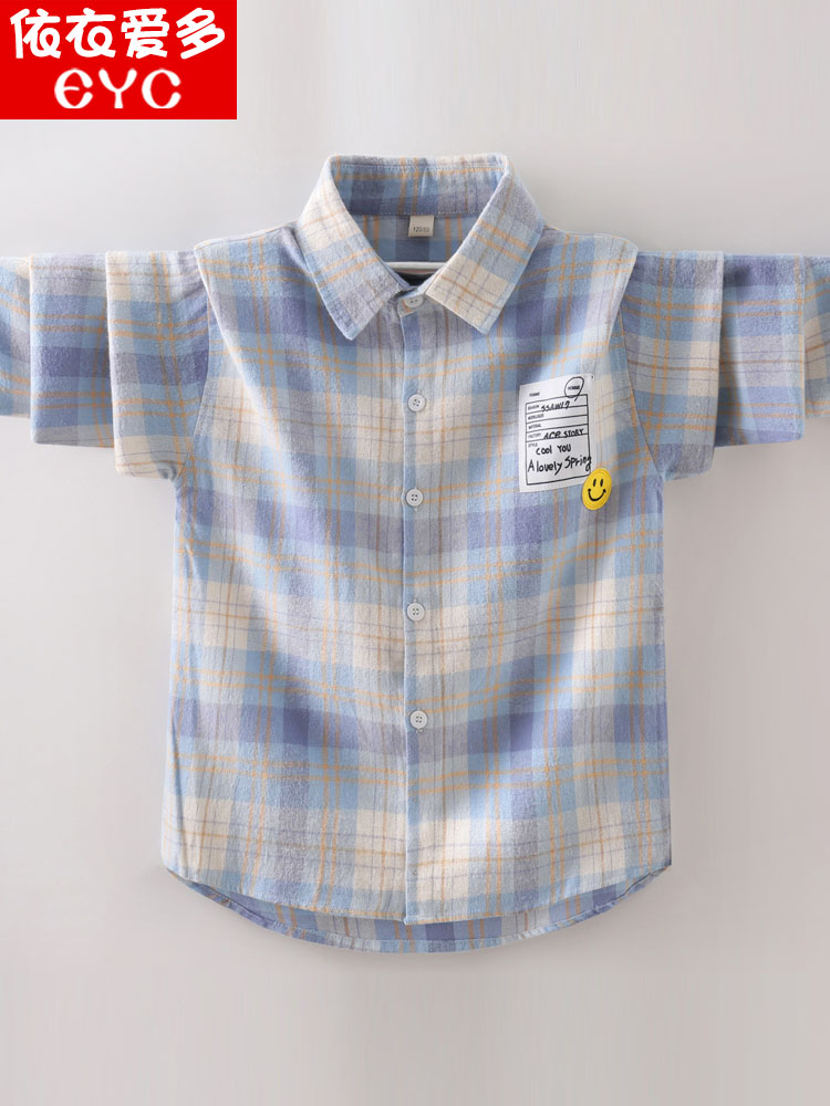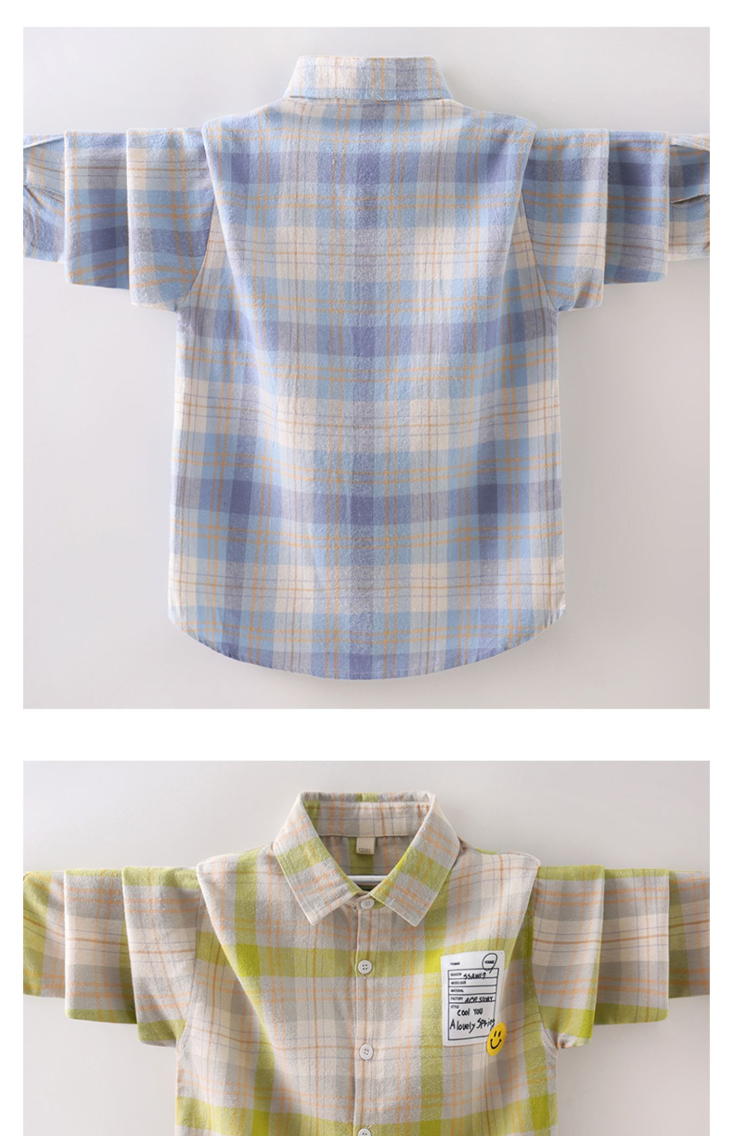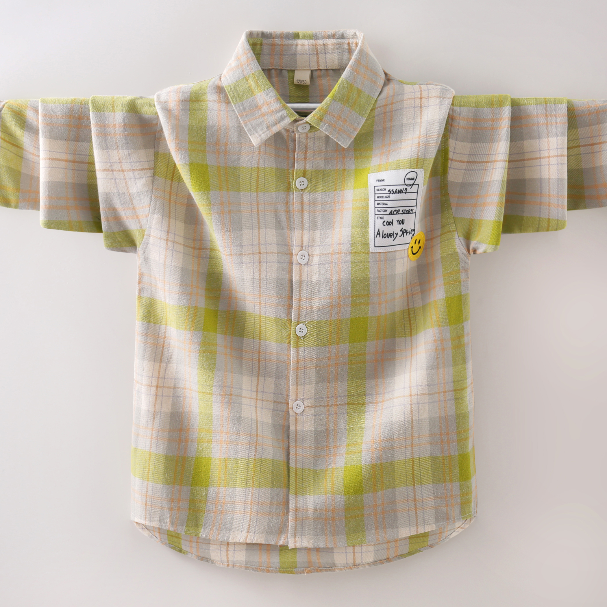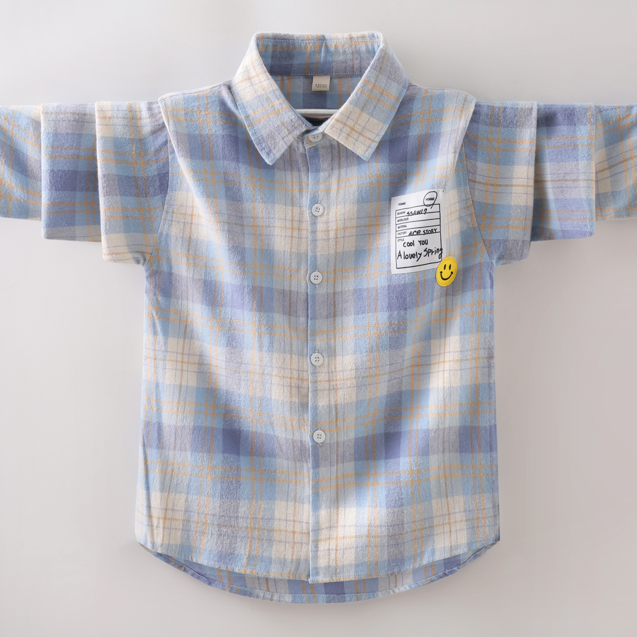 2025 New Spring and Autumn Medium and Big Children's Shirt Cotton Boy's Shirt Fashion Boy Smiley Jacket Check Tide