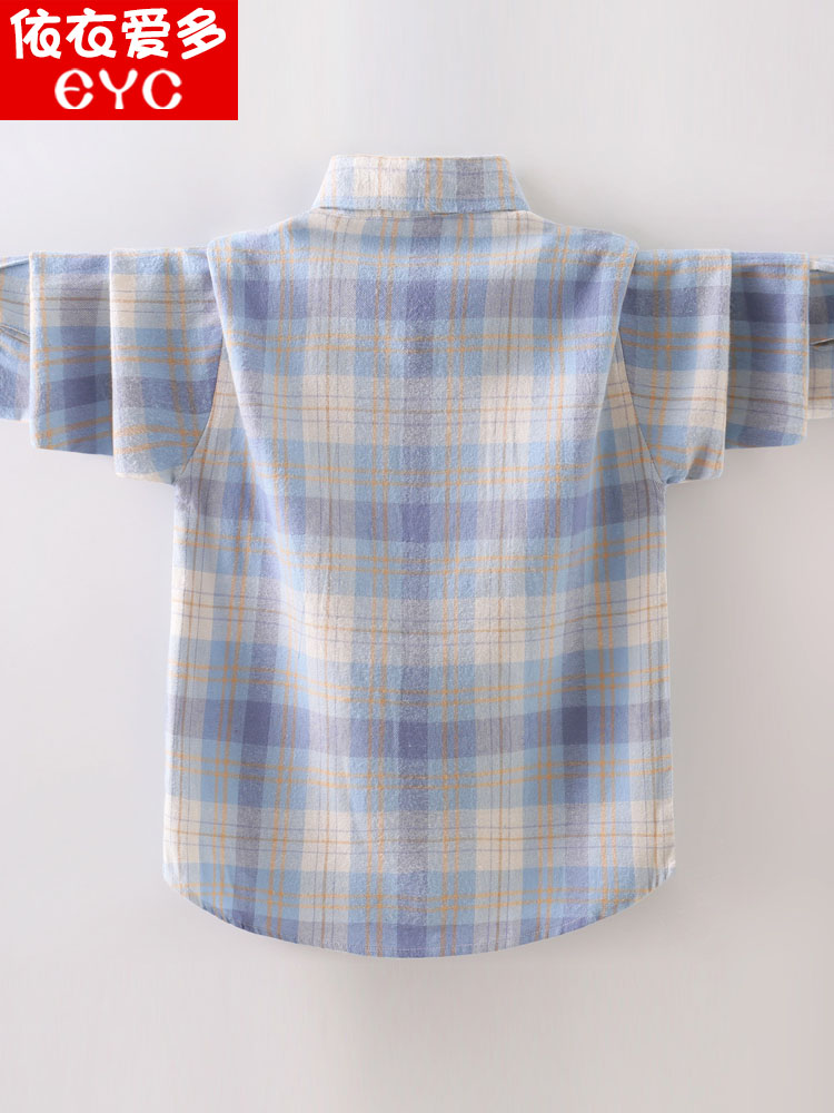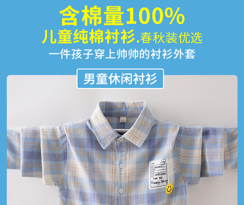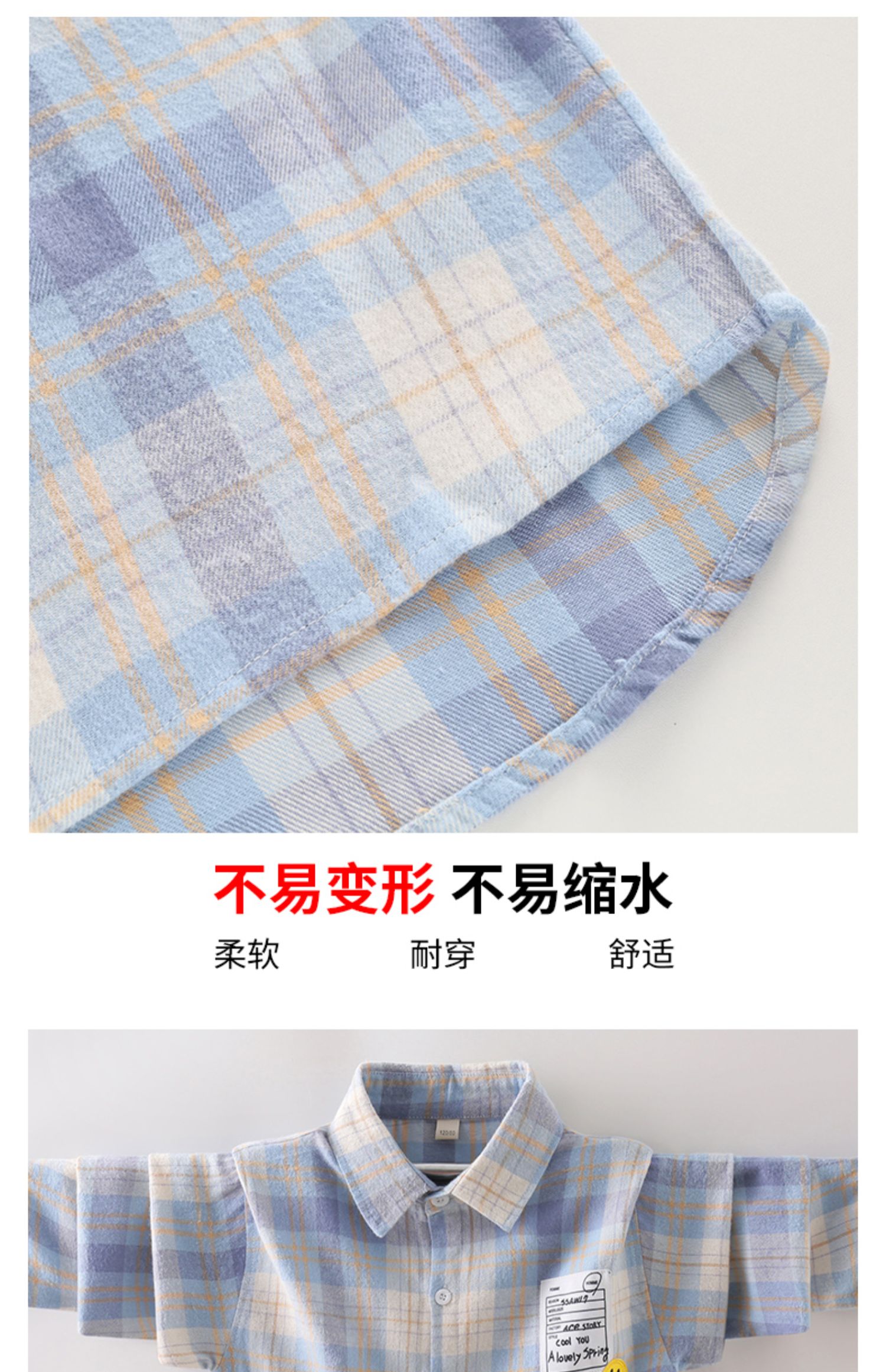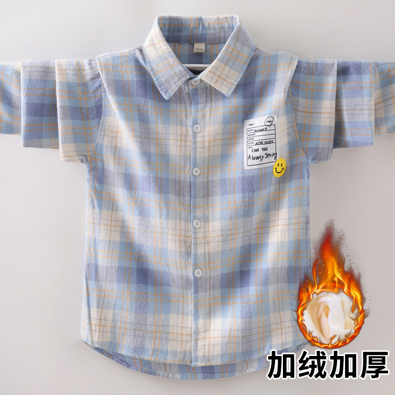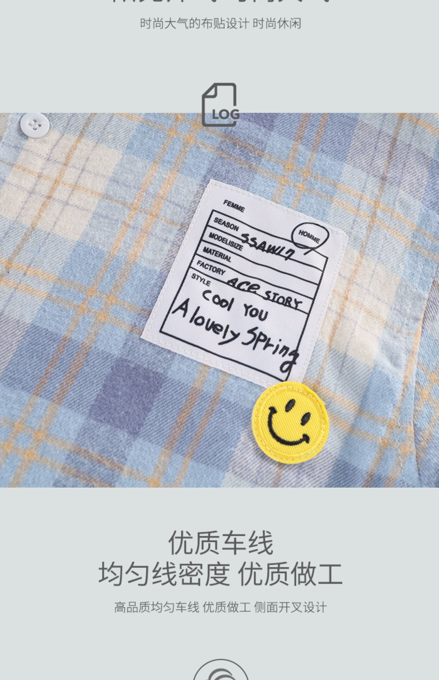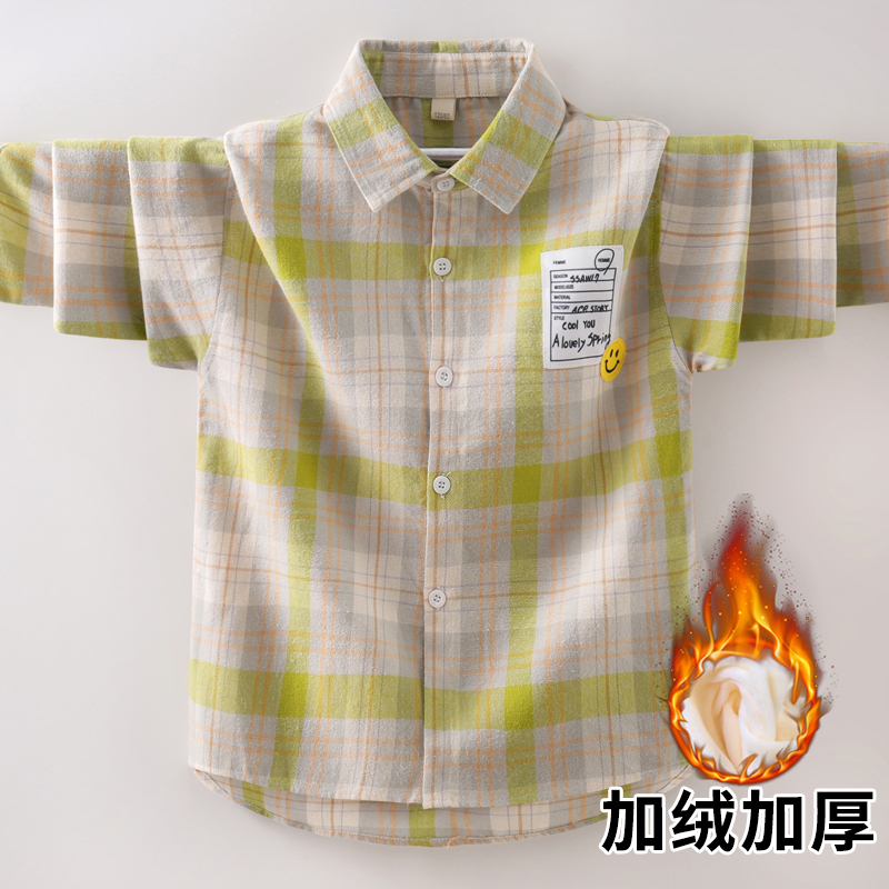 2025 New Spring and Autumn Medium and Big Children's Shirt Cotton Boy's Shirt Fashion Boy Smiley Jacket Check Tide