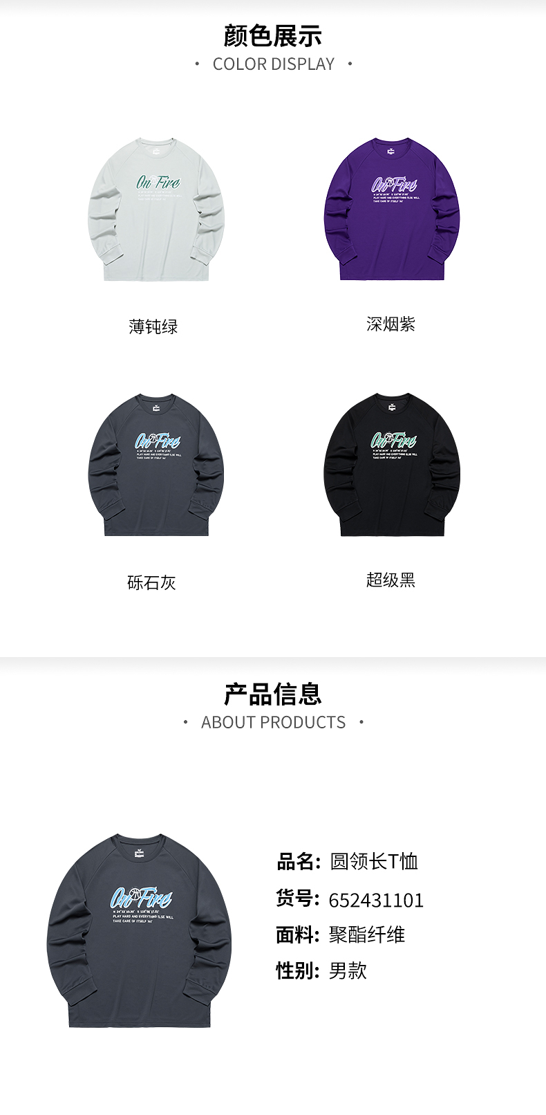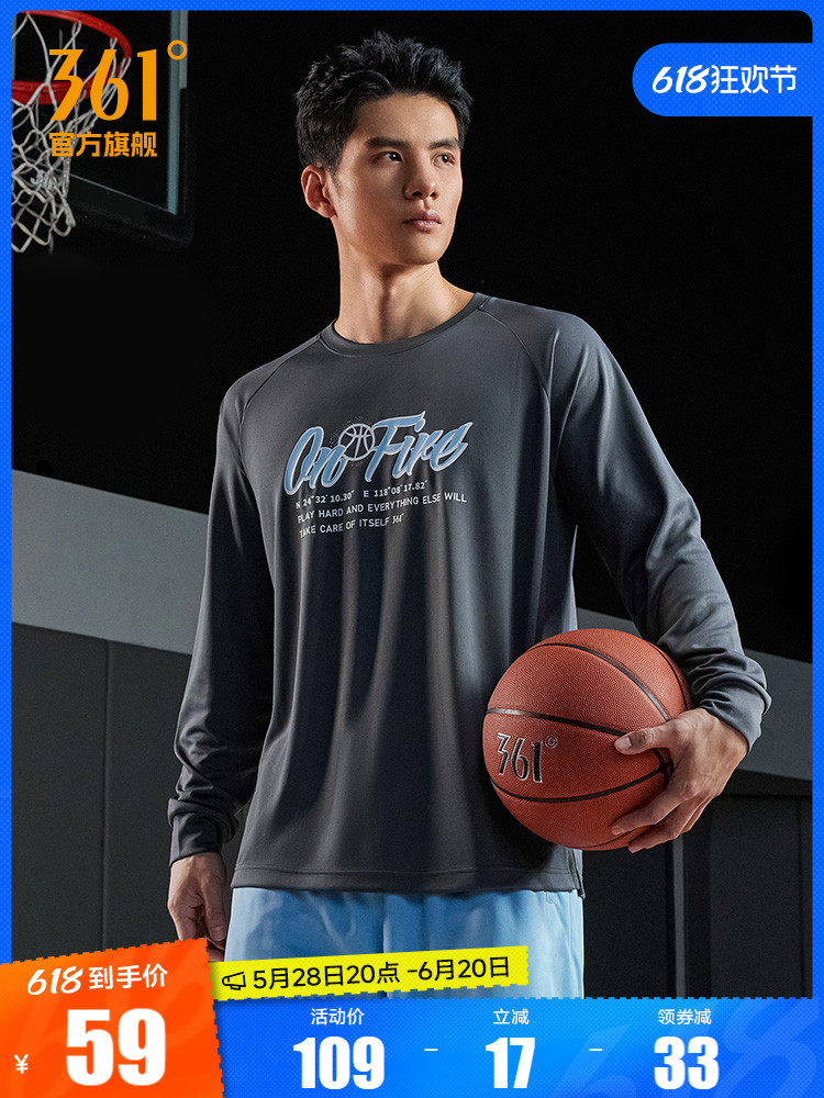 361 Men's Long Sleeve T-Shirt 2025 Summer New Quick Drying Breathable Shooting Suit Men's Loose Light Sport Top