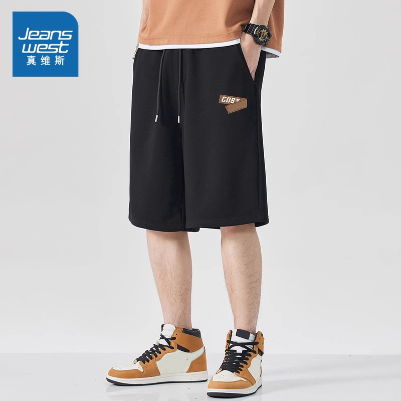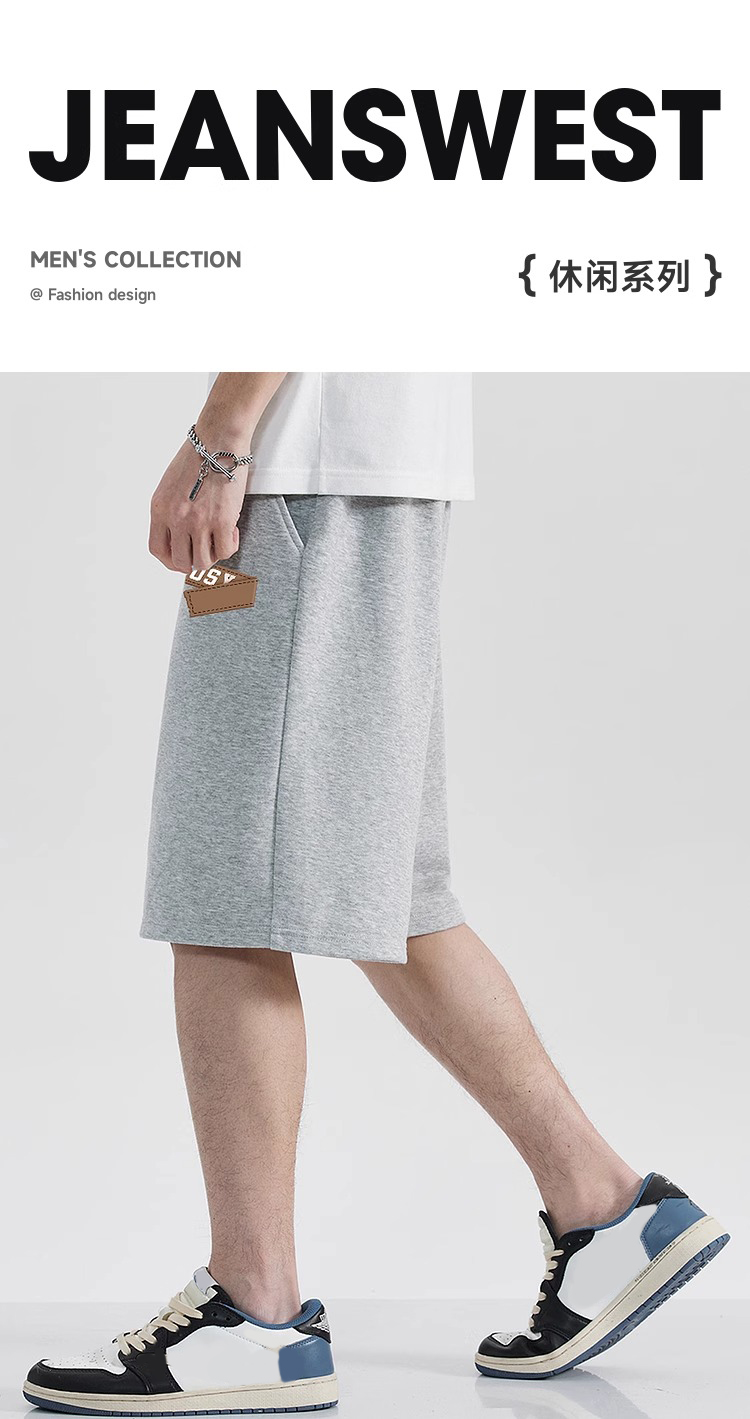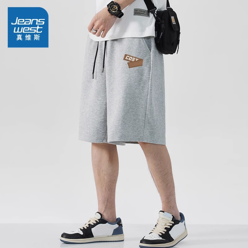 JR Jeanswest Men's Spring 2025 New 220g Cotton Drawstring Sport Men's Casual Cropped Pants Shorts