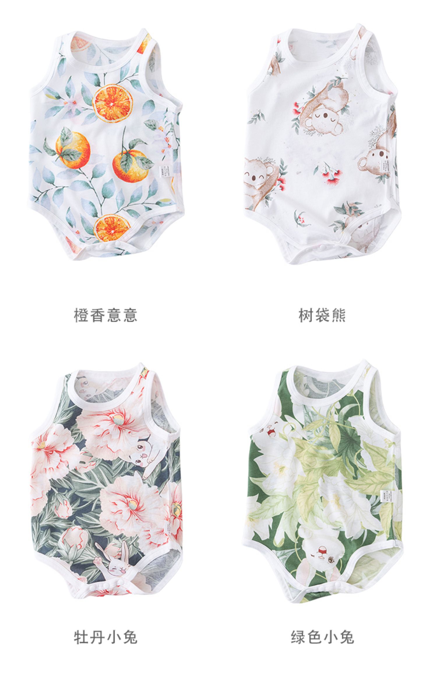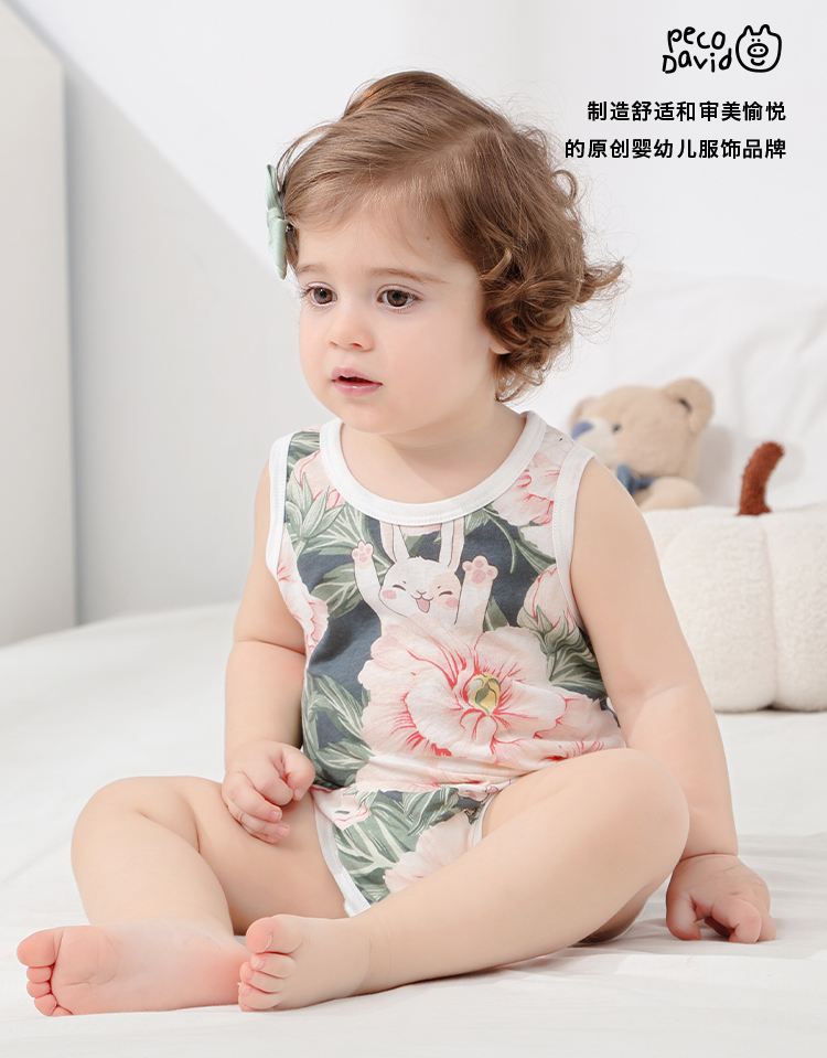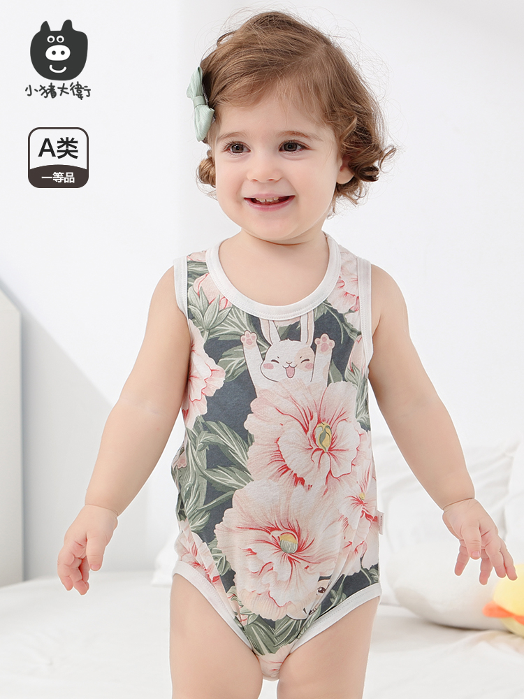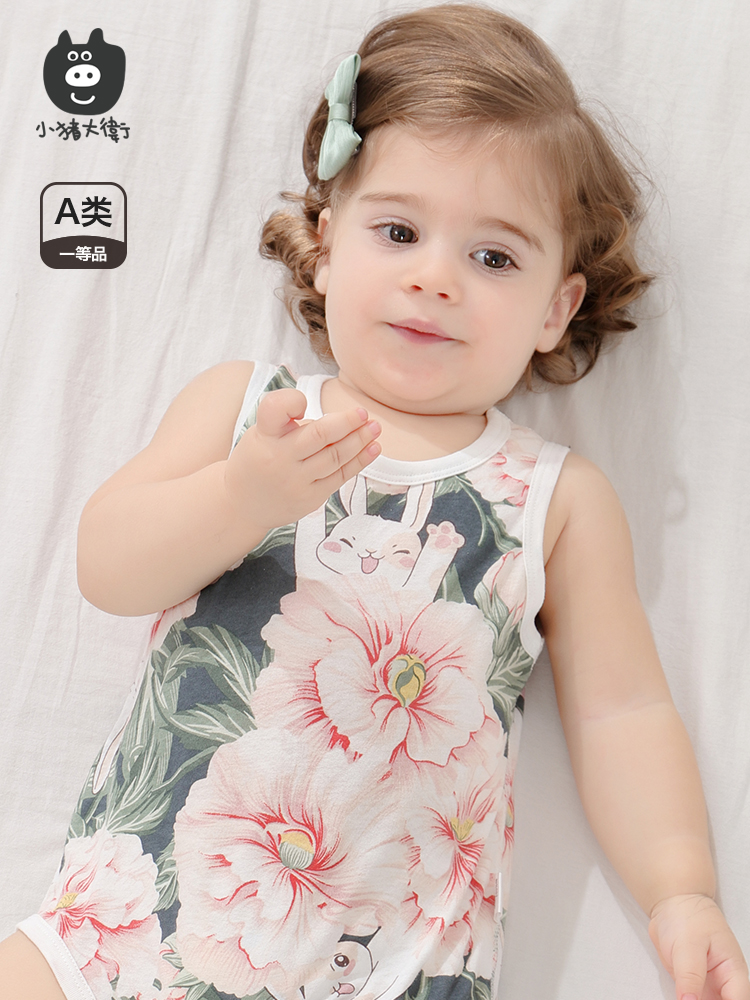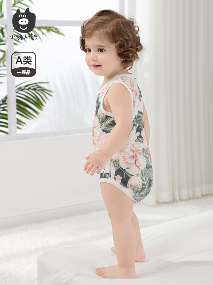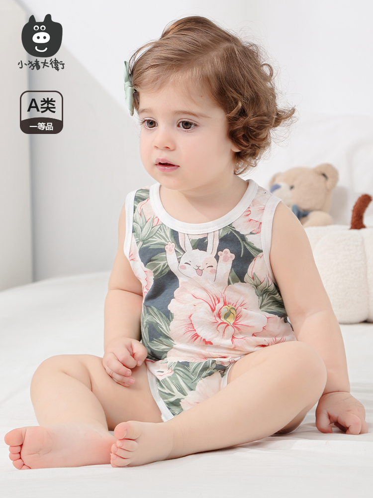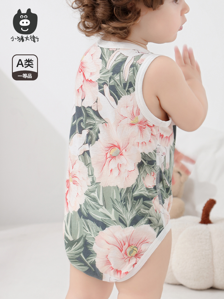 Piggy David summer boys and girls cute wrap fart clothes 100% cotton print vest Ha clothes triangle climbing clothes