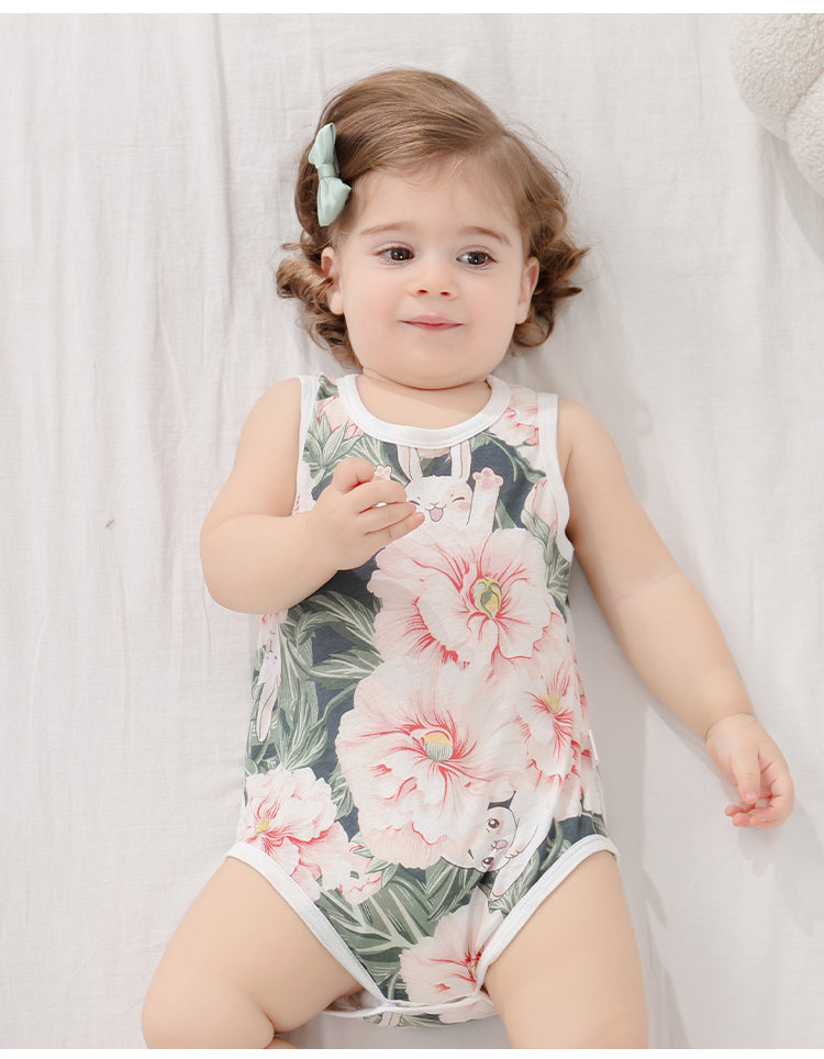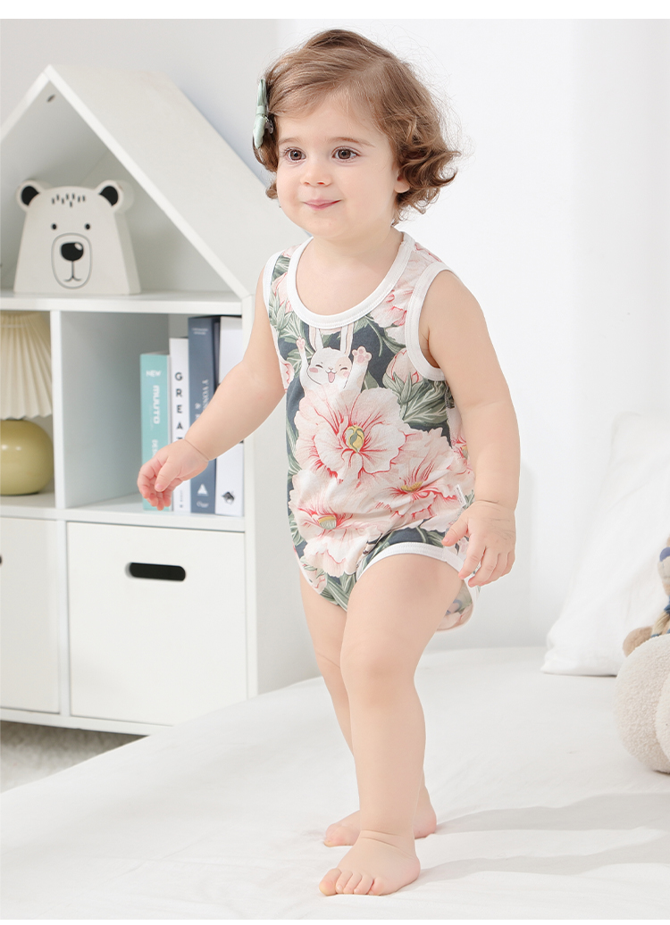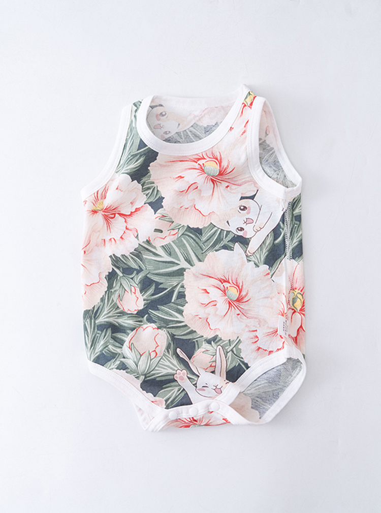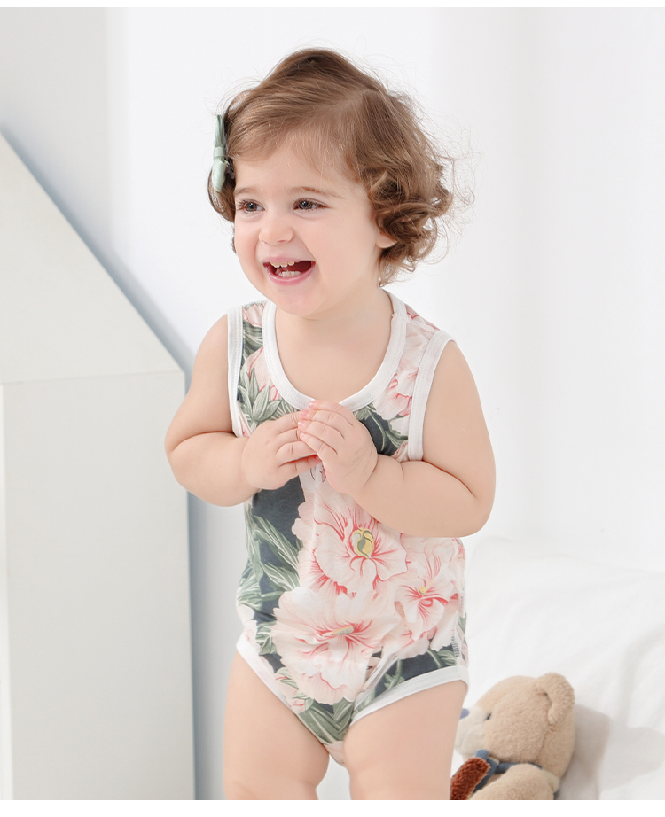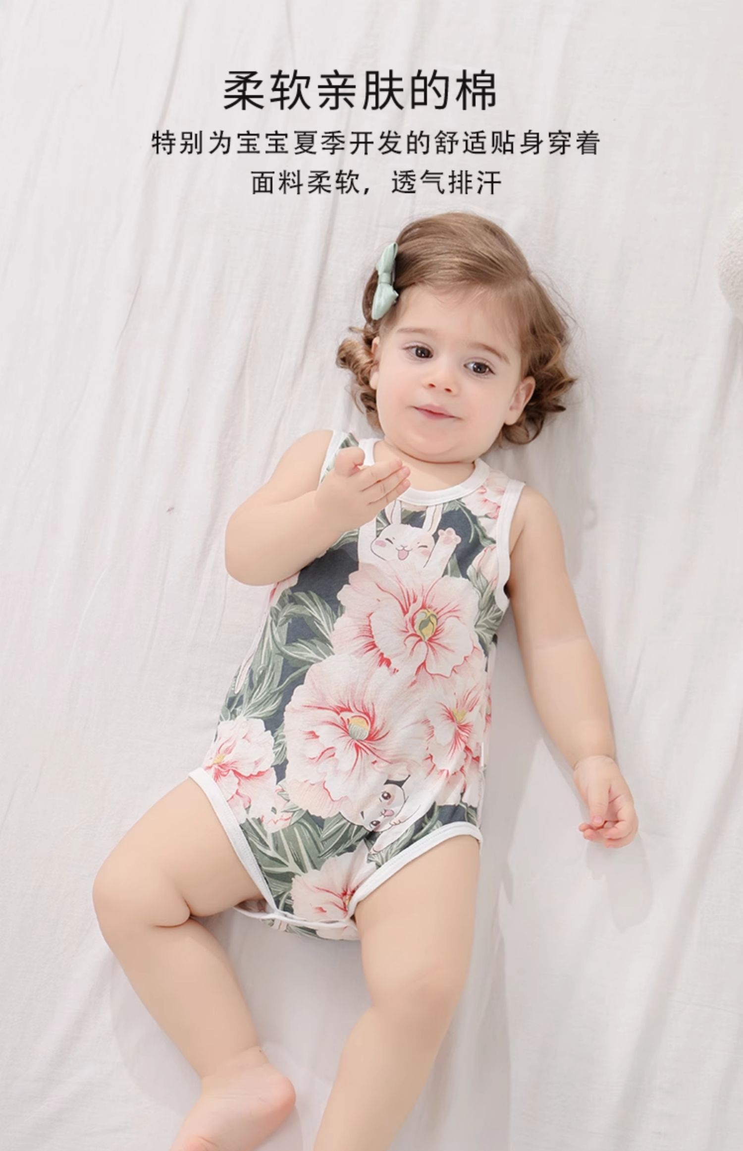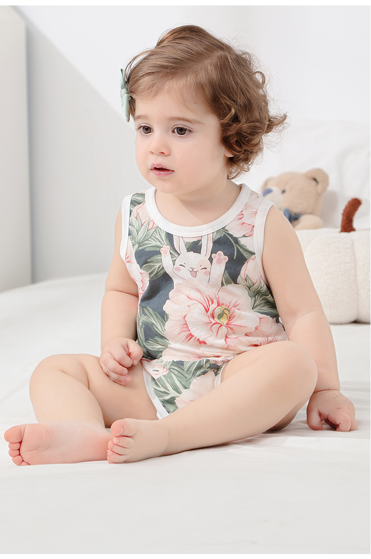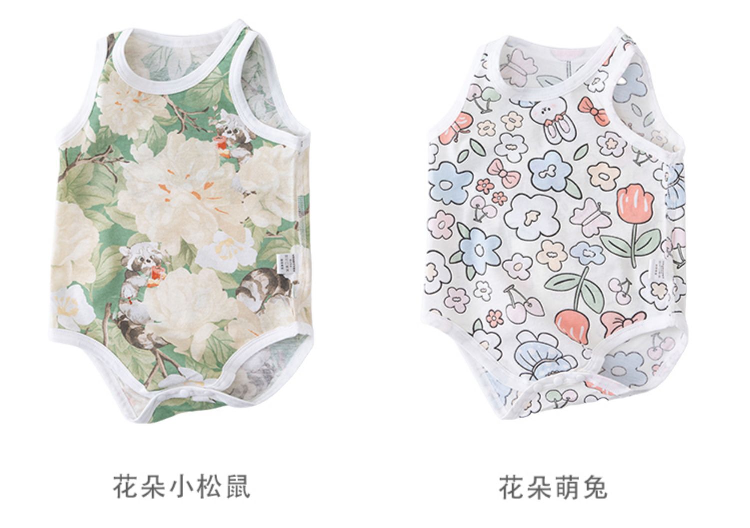 Piggy David summer boys and girls cute wrap fart clothes 100% cotton print vest Ha clothes triangle climbing clothes