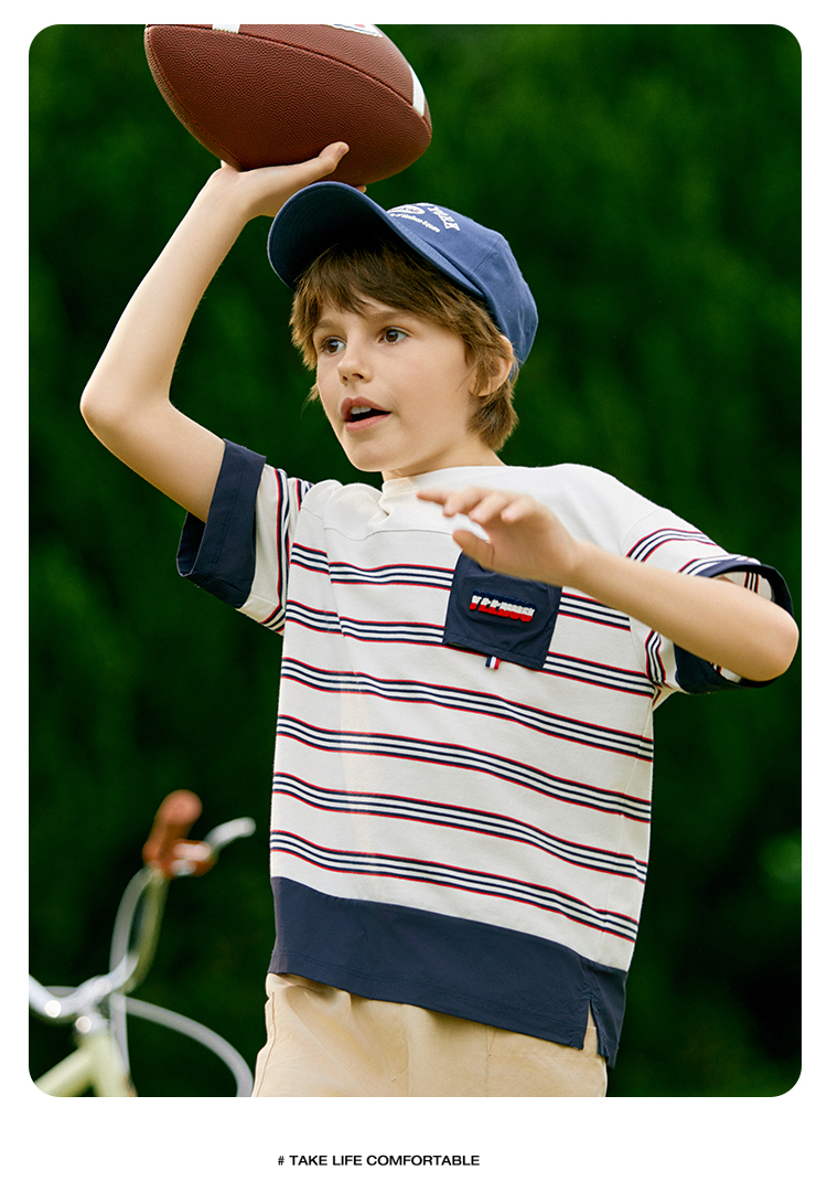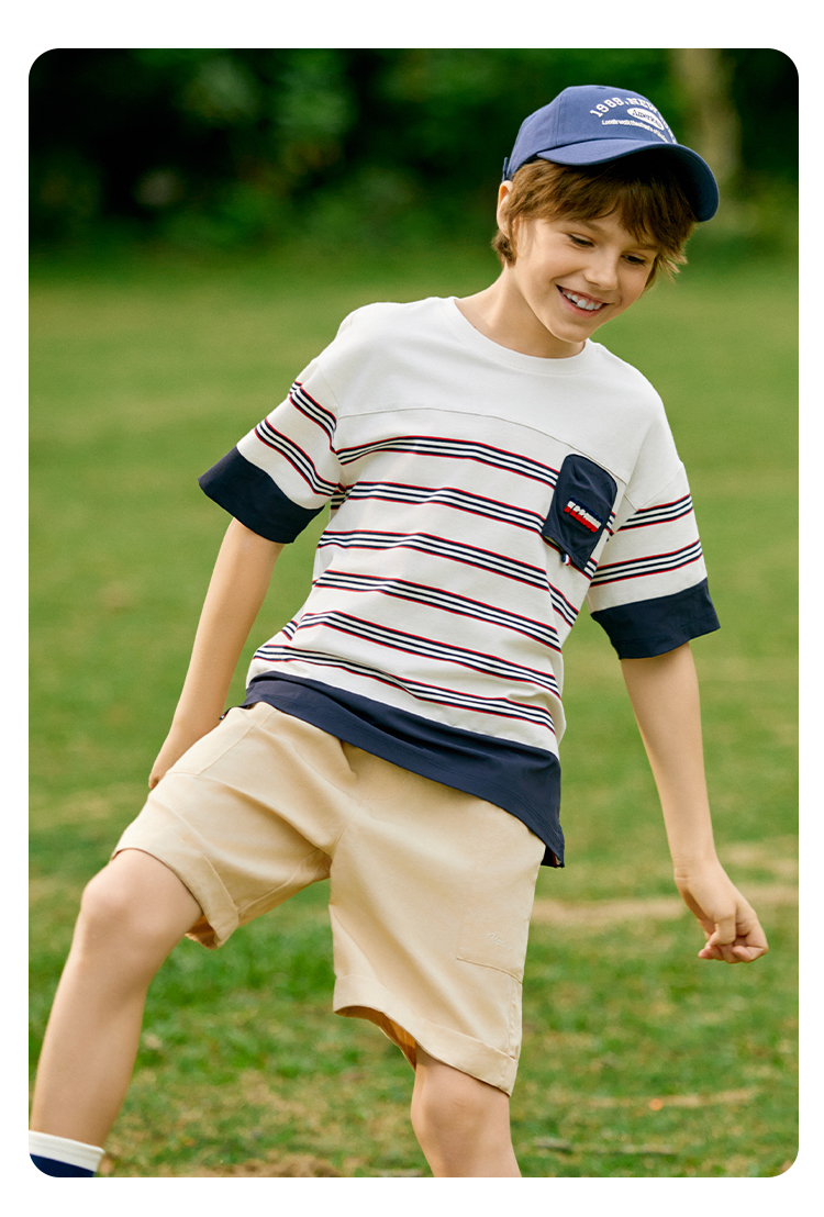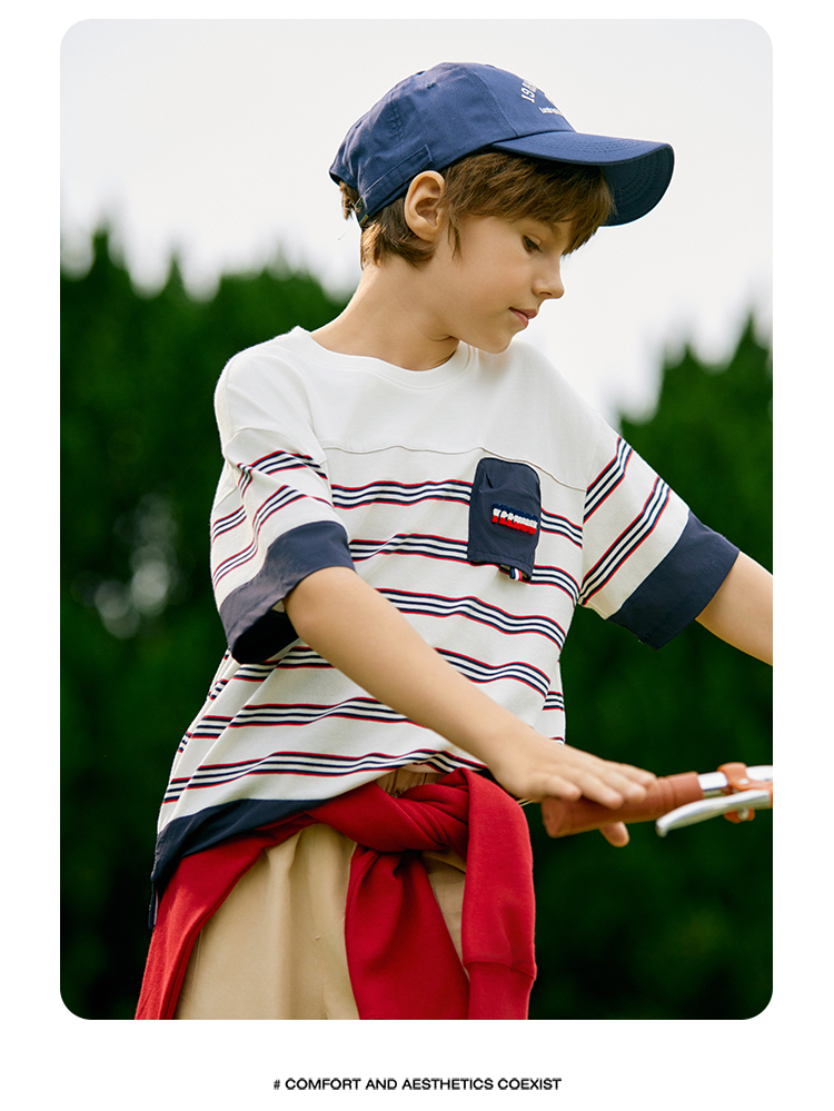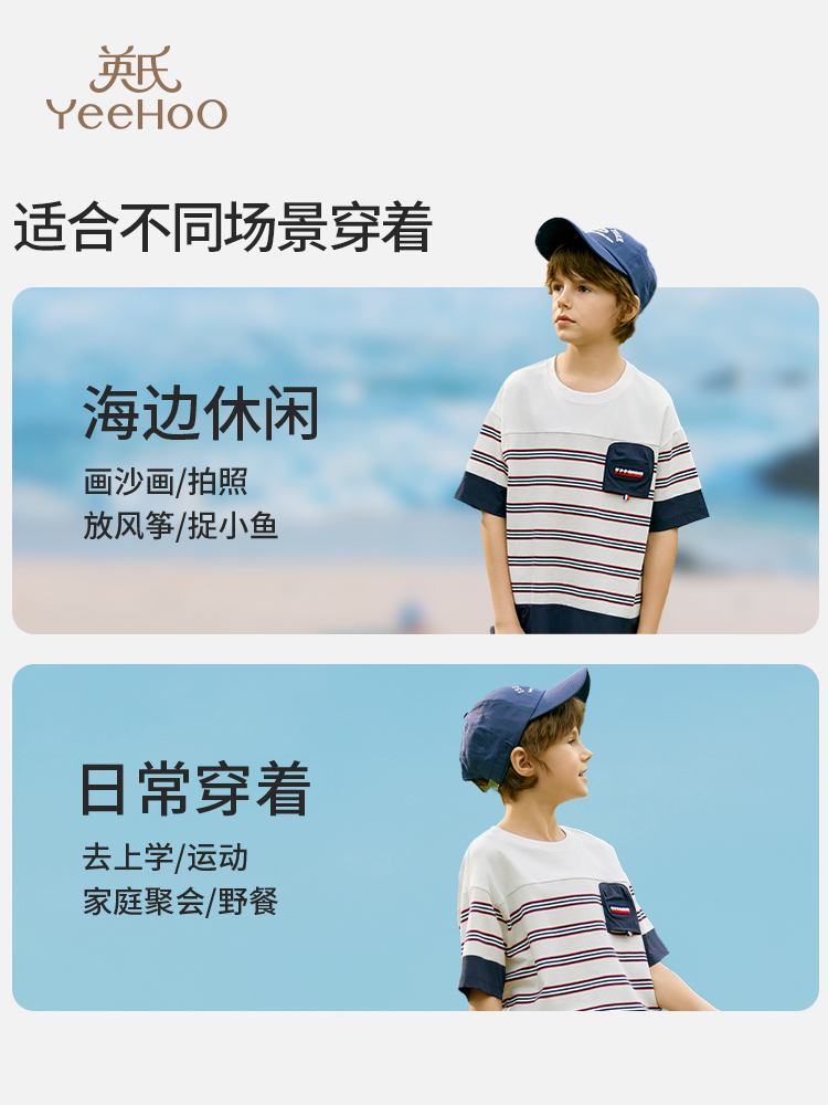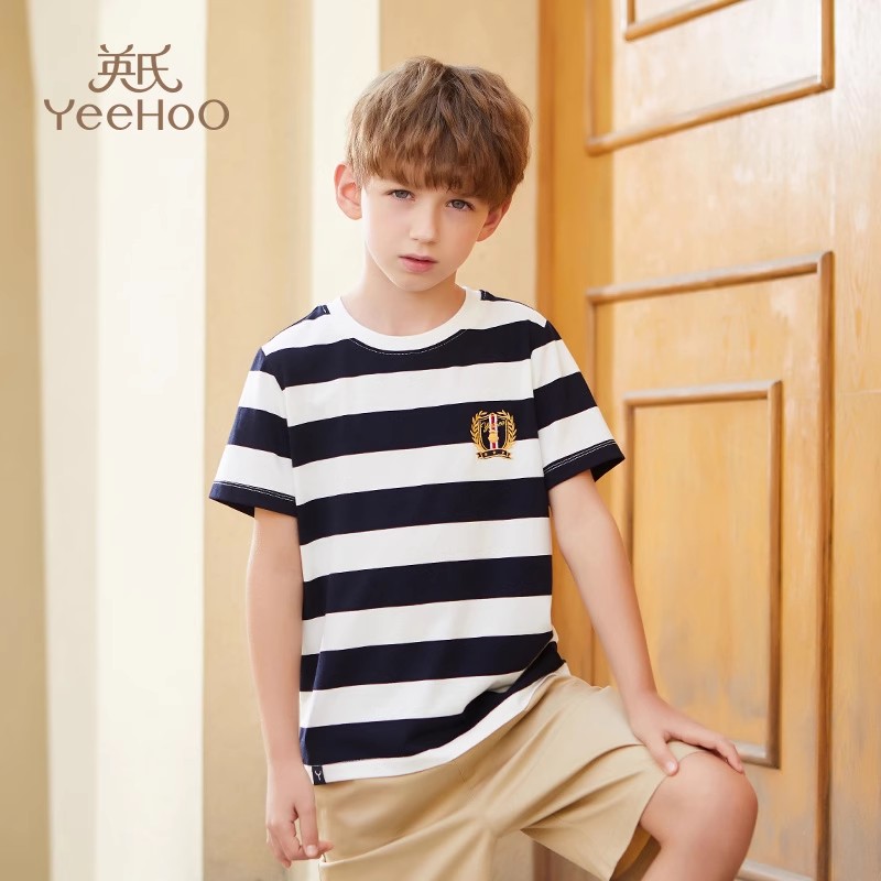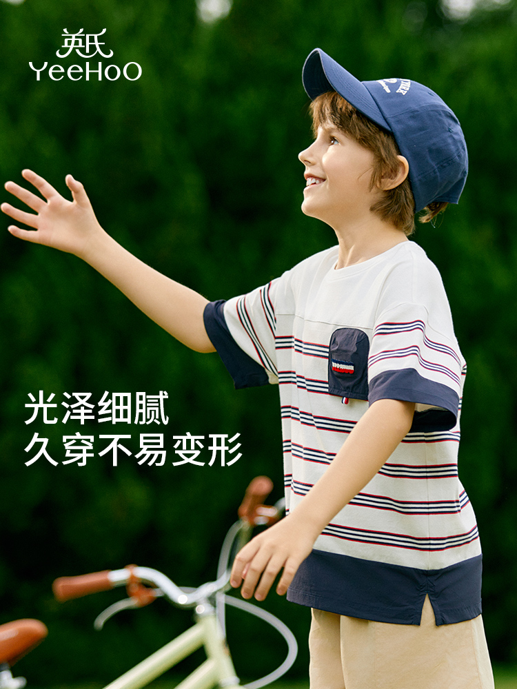 Ying's boy short sleeve t-shirt 2025 summer new children's striped loose thin top little boy summer dress tide