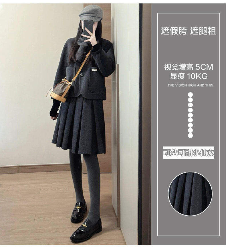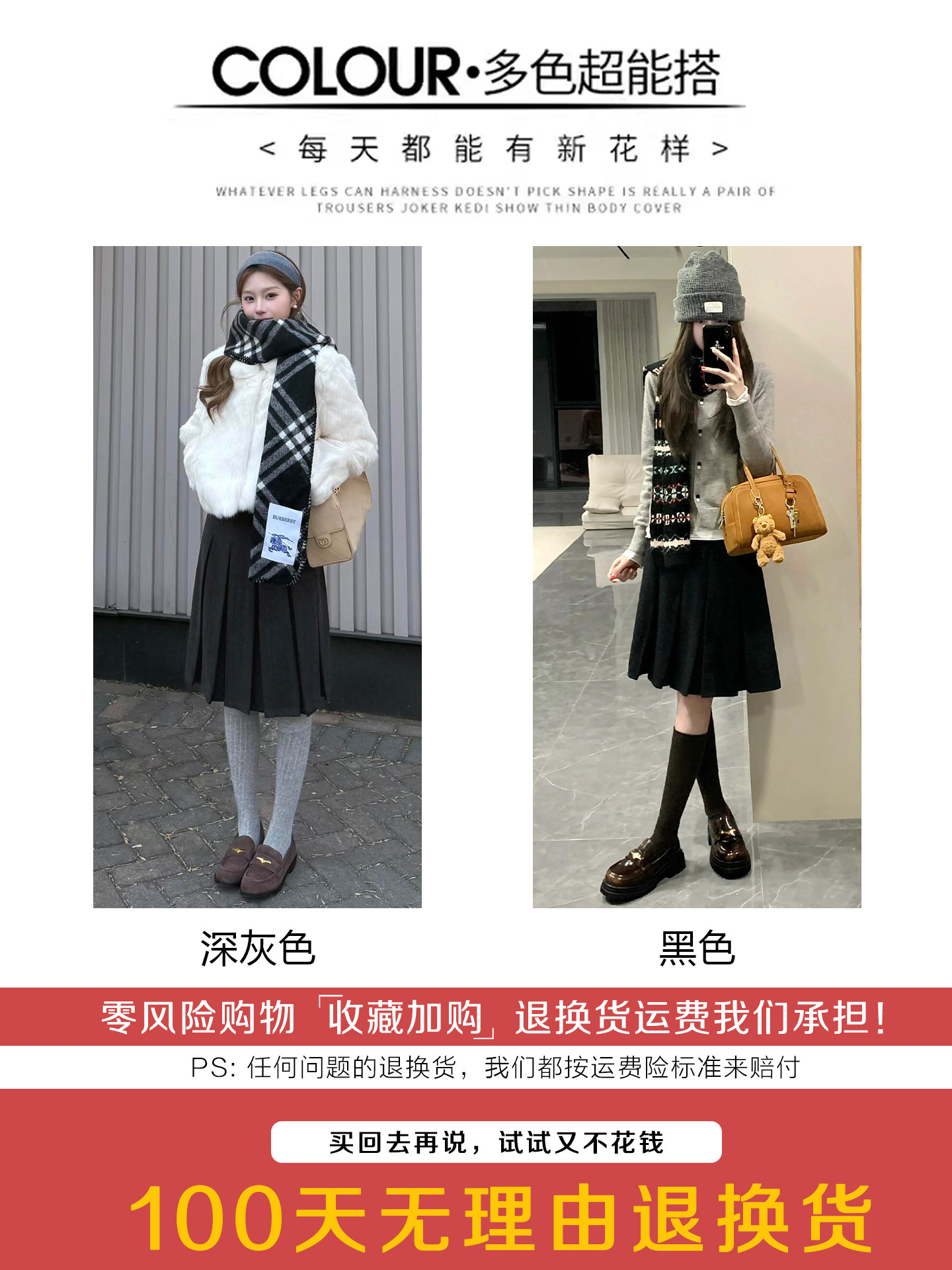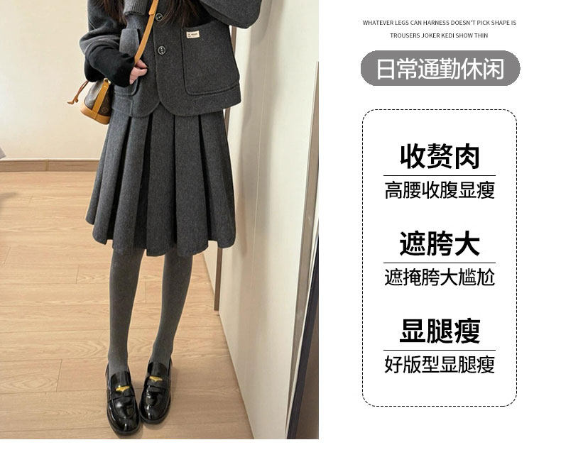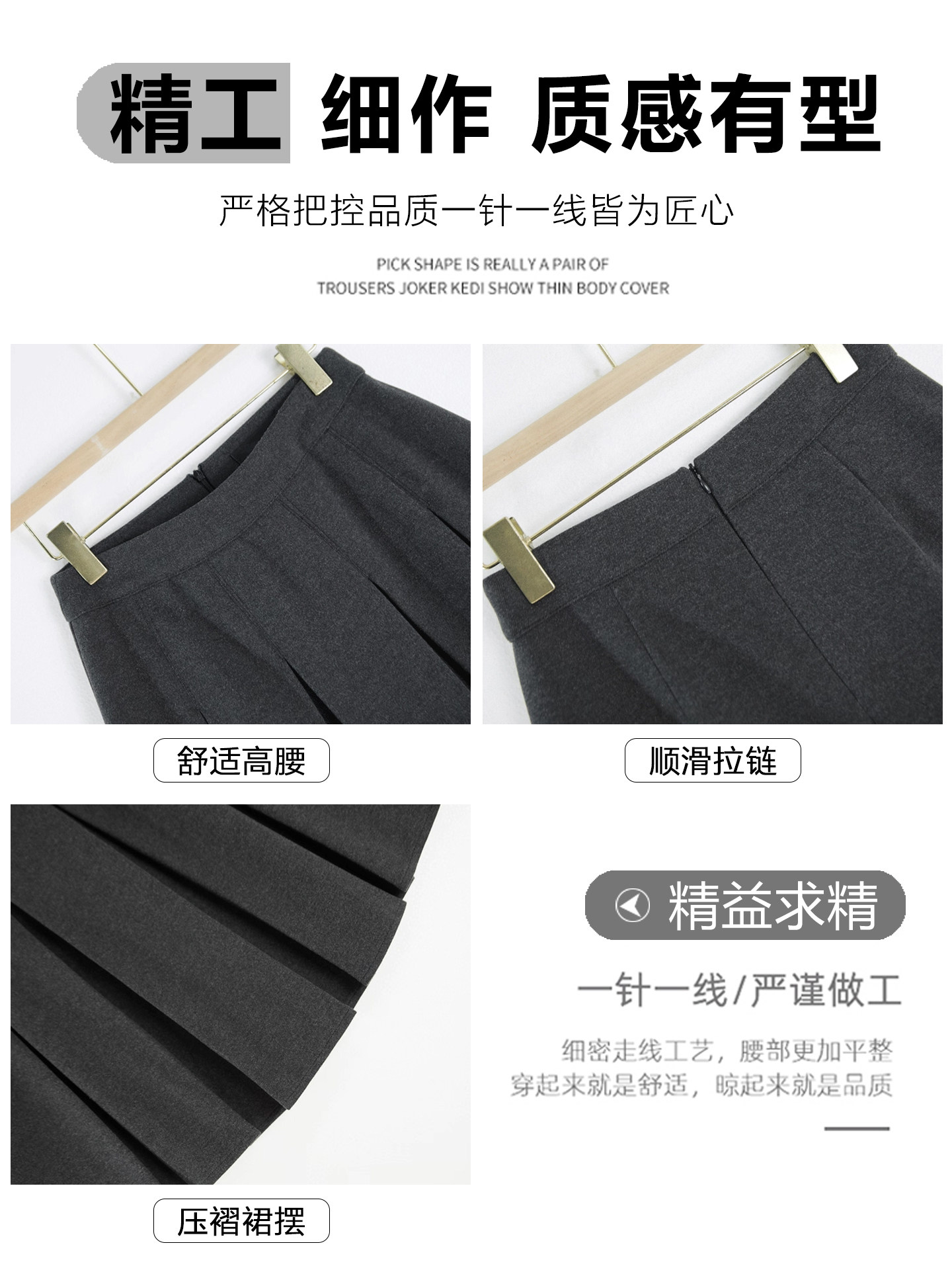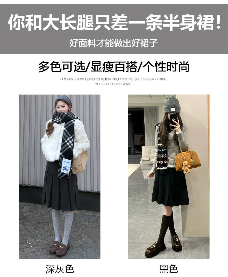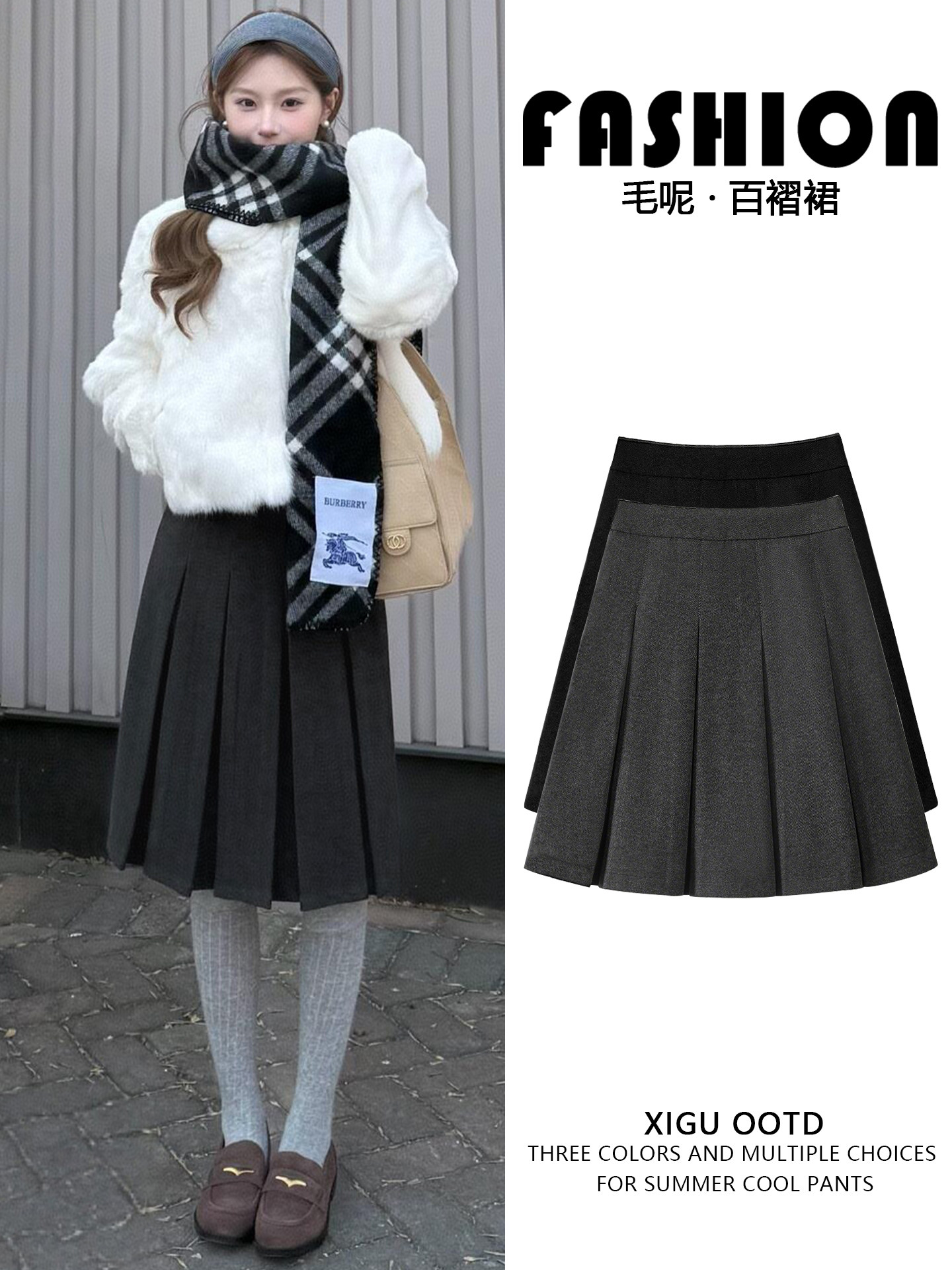 Dark gray pleated skirt women's winter 2025 new high-waisted A-line woolen skirt small man slimming midi skirt