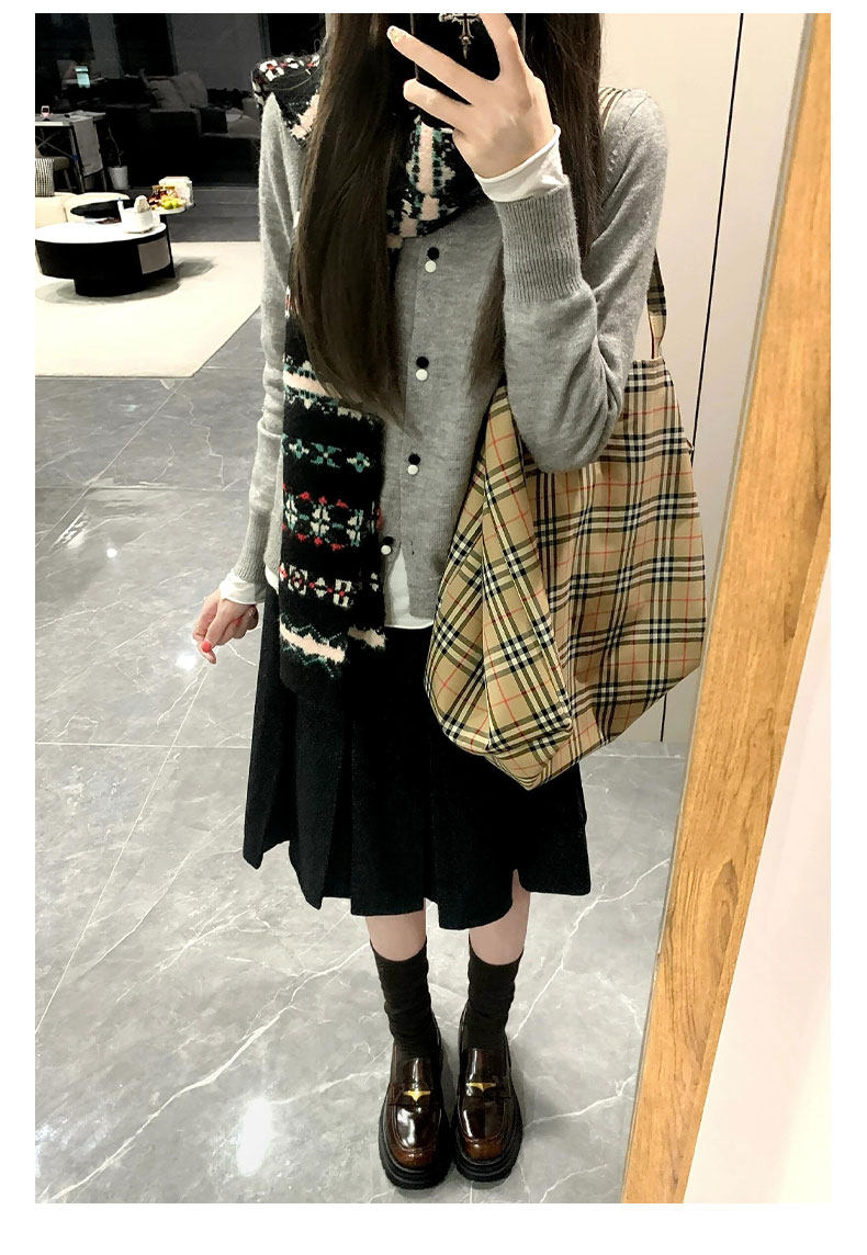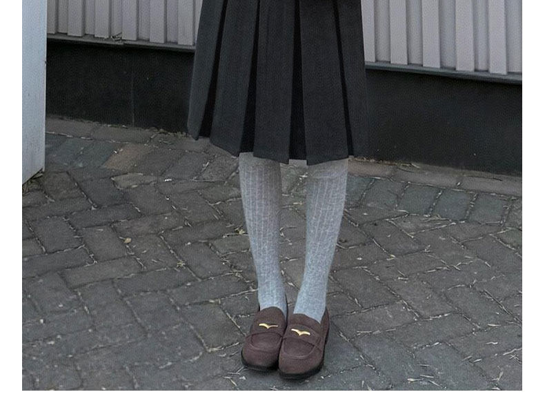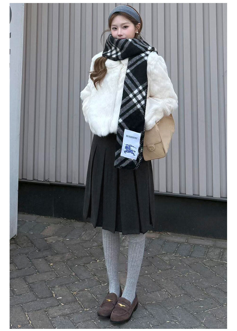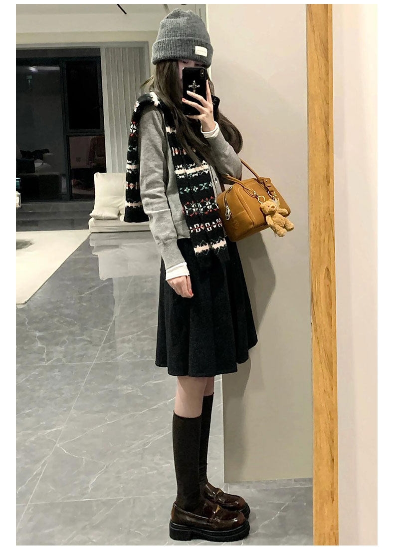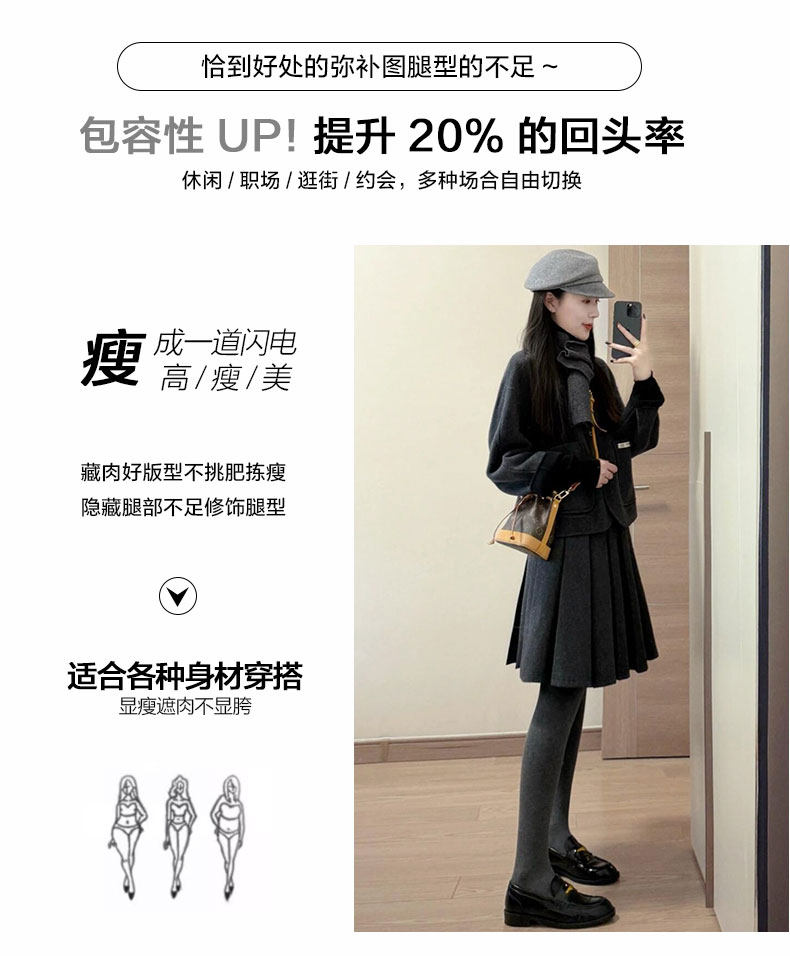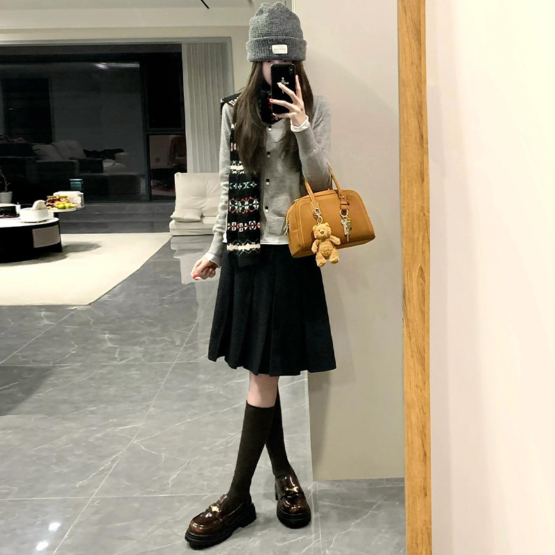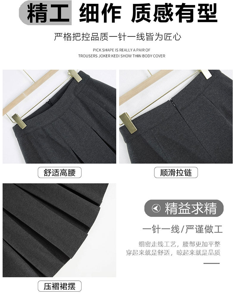 Dark gray pleated skirt women's winter 2025 new high-waisted A-line woolen skirt small man slimming midi skirt