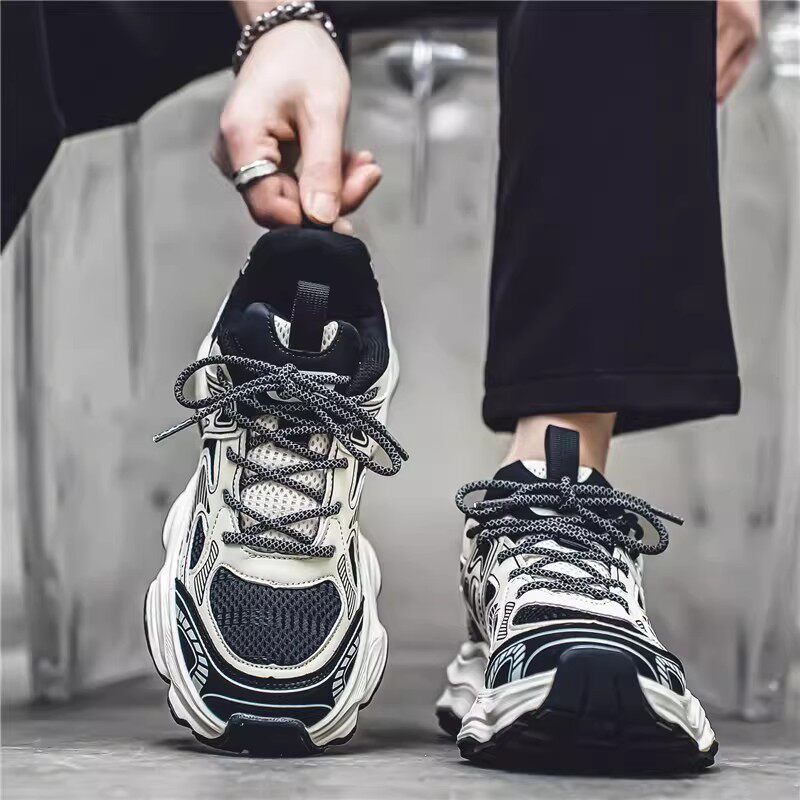 Men's shoes, spring mesh, breathable, casual running sneakers, thick soles, heightened, Hong Kong style, high-end, versatile dad trendy shoes