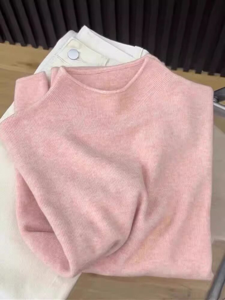 Pink semi-turtleneck inner sweater knitted sweater women's 2025 winter new unique and beautiful age-reducing base layer top