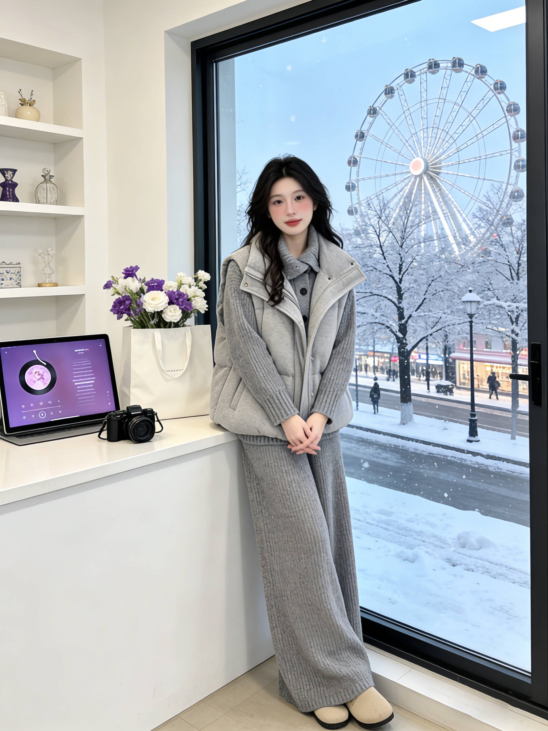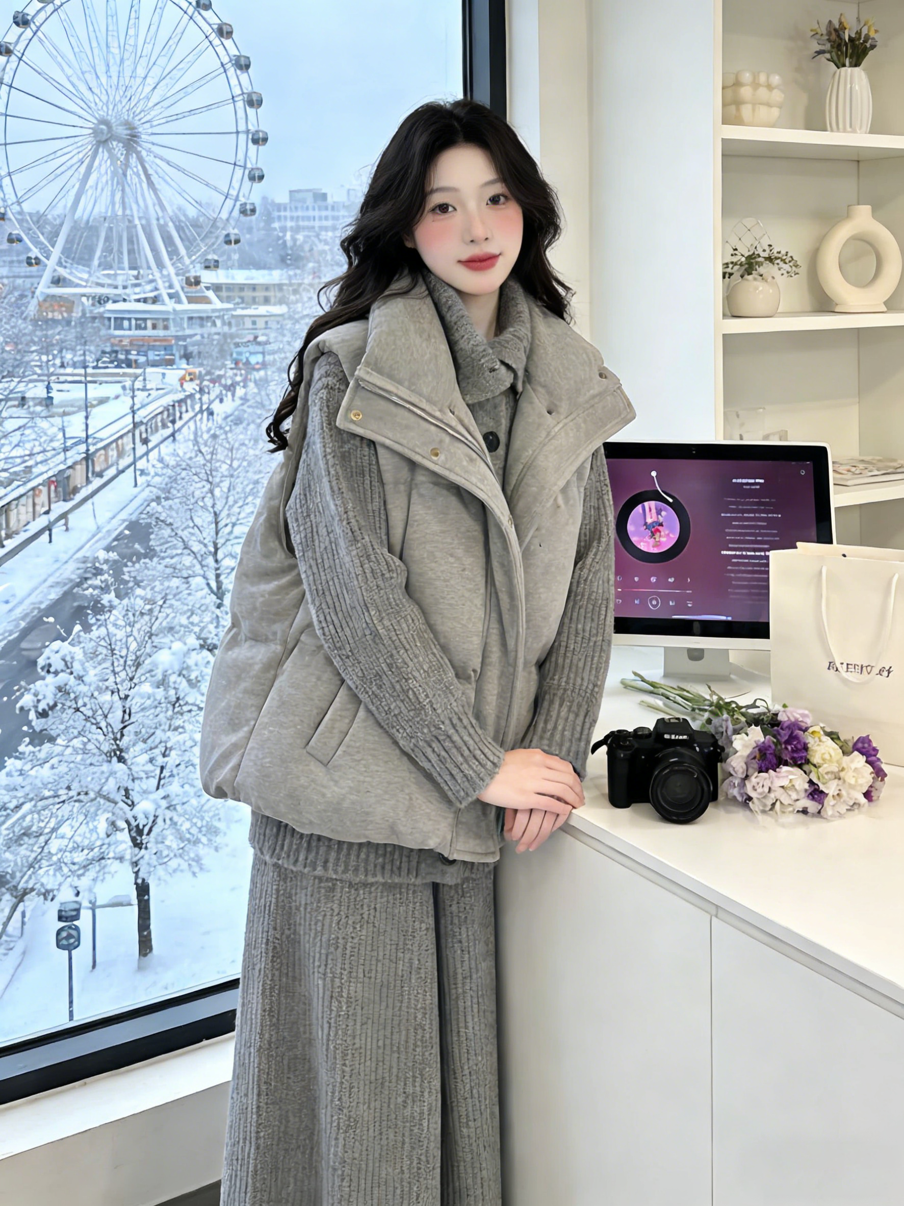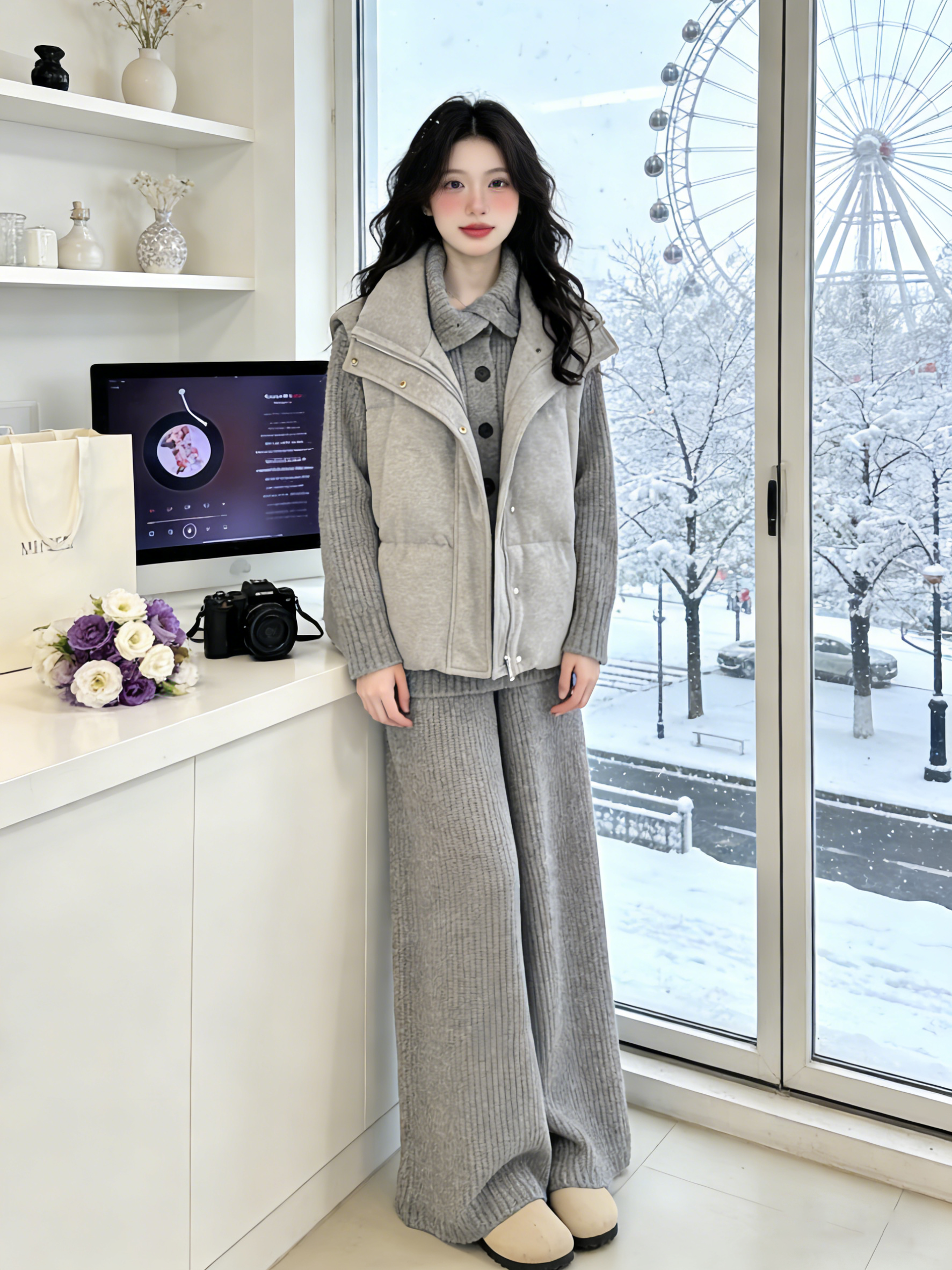 Lazy style cotton suit vest suit women's winter outfit is a complete set of Korean layered sweaters and wide-leg pants three-piece set