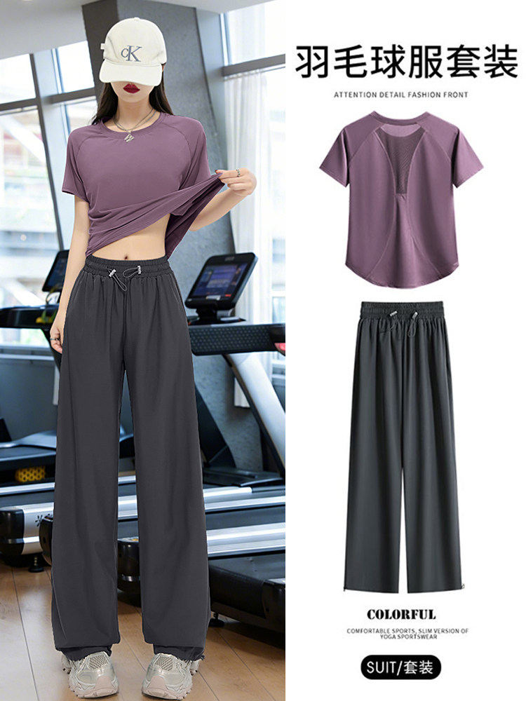 Fat mm plus size badminton suit sportssuit women's 2025 new loose slimming tennis top short sleeve morning running suit
