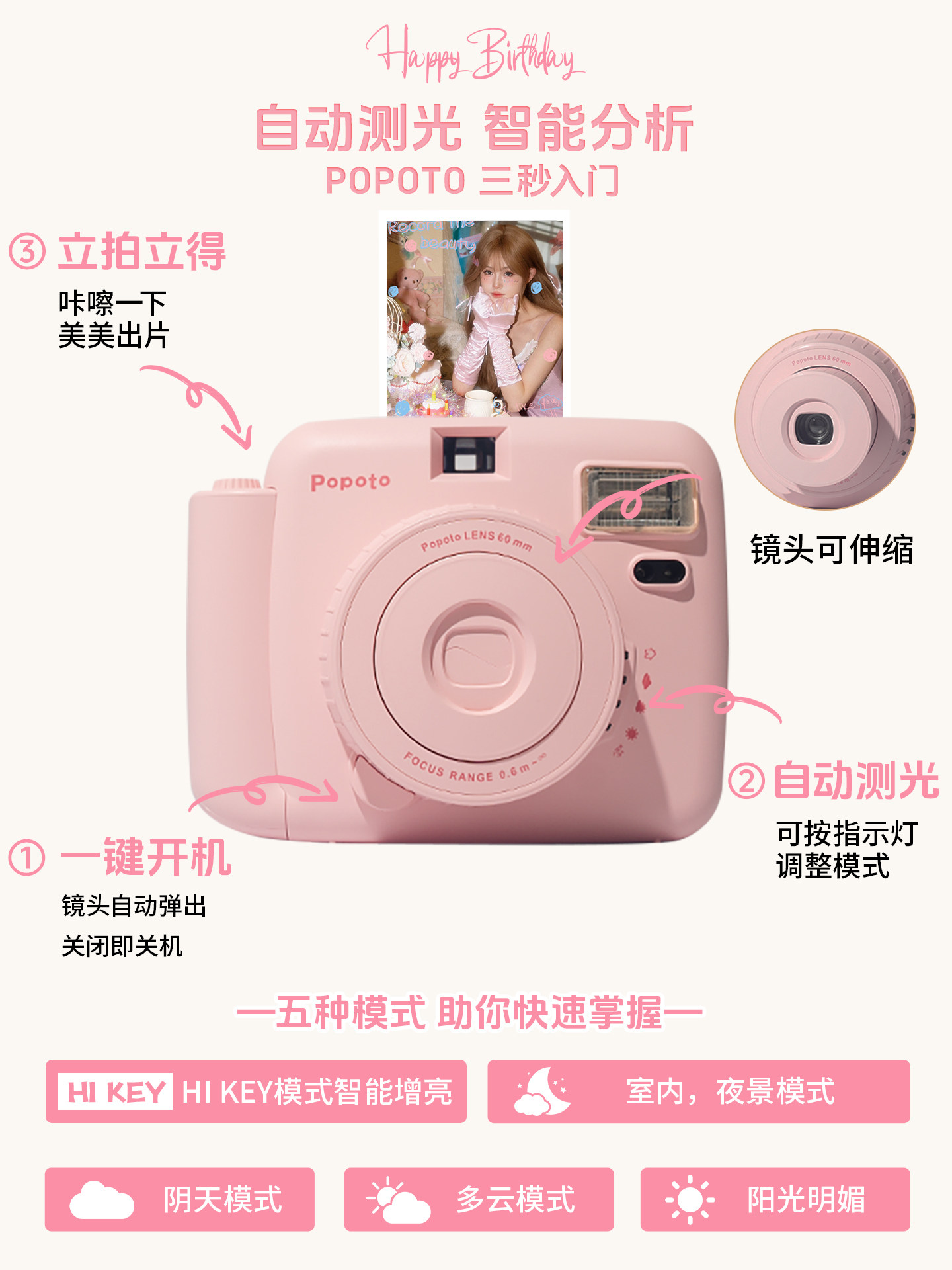 Popoto instant mini camera print color direct photo birthday gift for girls to give girlfriends practical