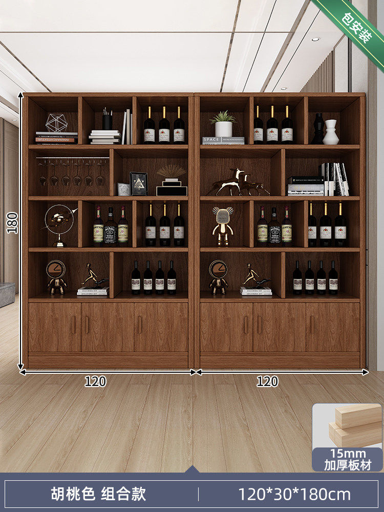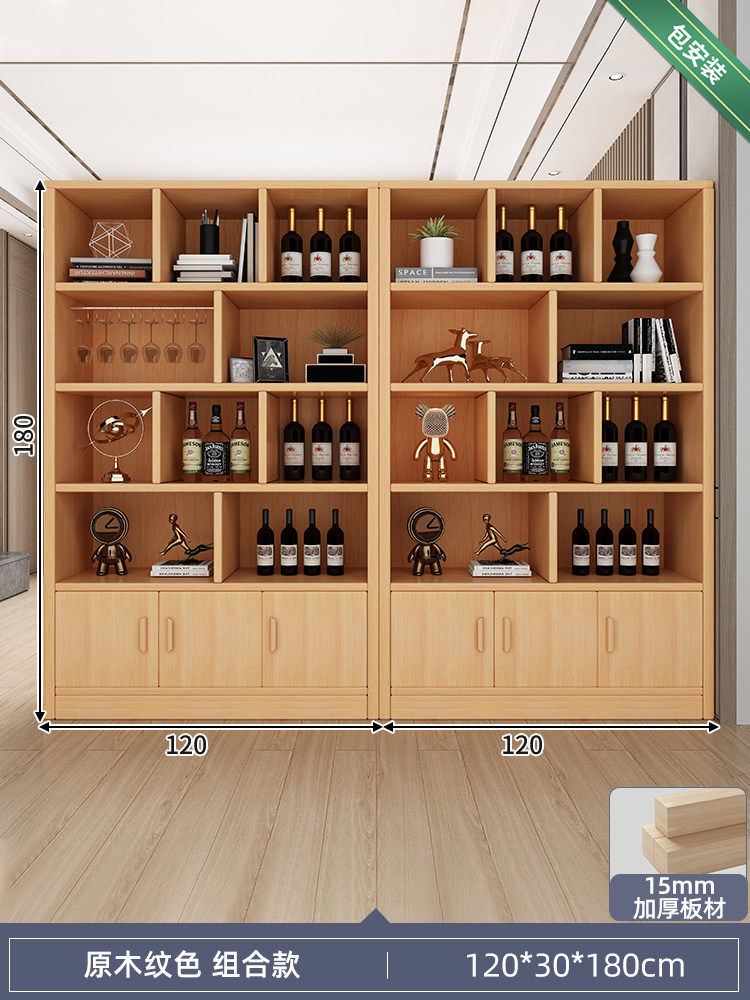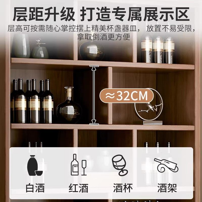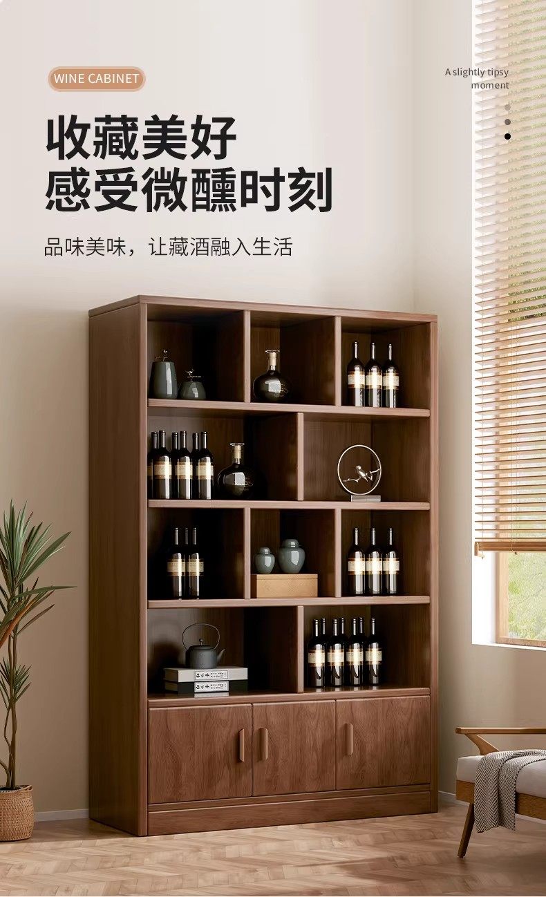 Solid wood ecological board wine cabinet wall-to-wall living room storage display cabinet 2026 new Chinese household wine rack storage cabinet