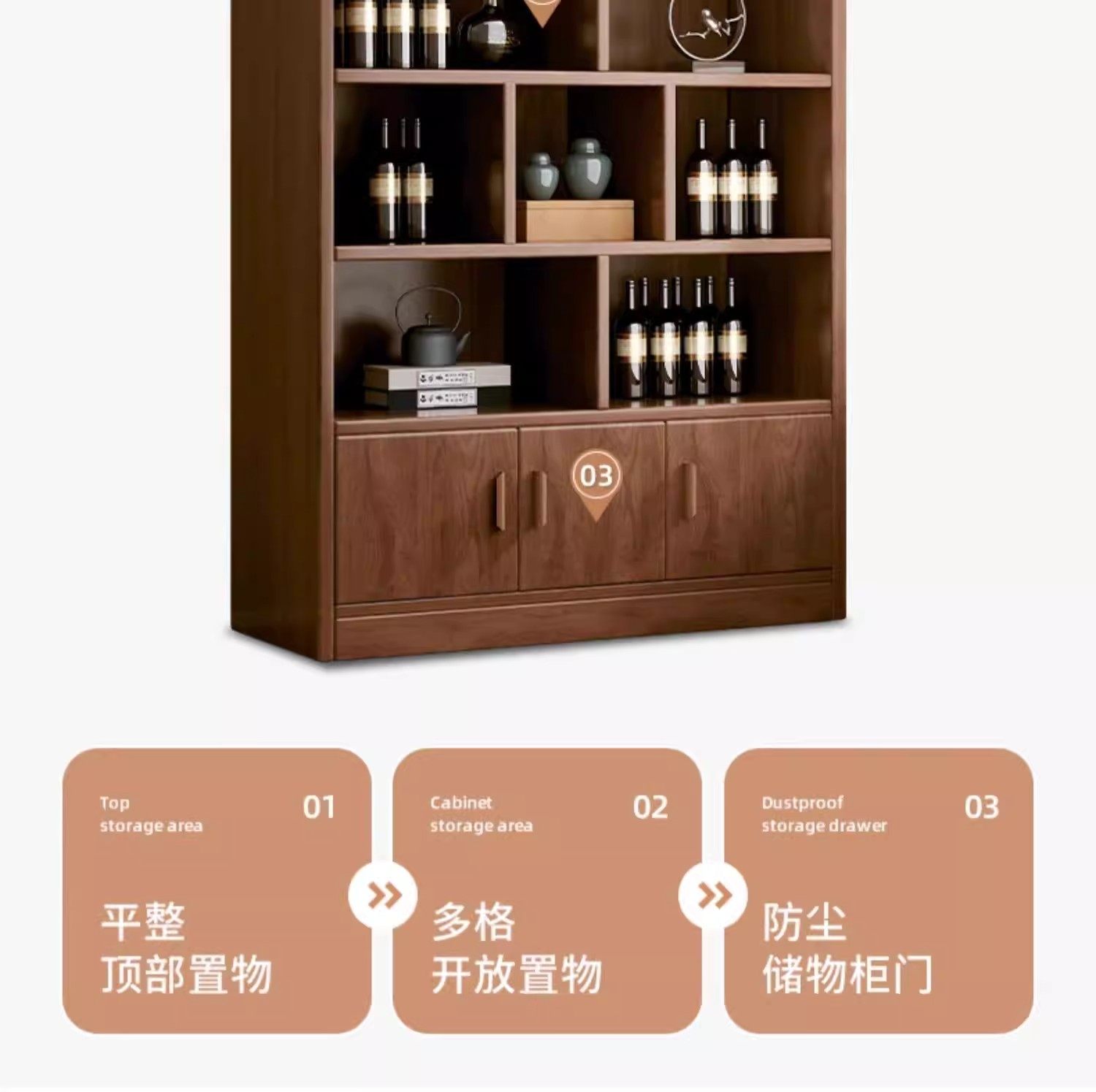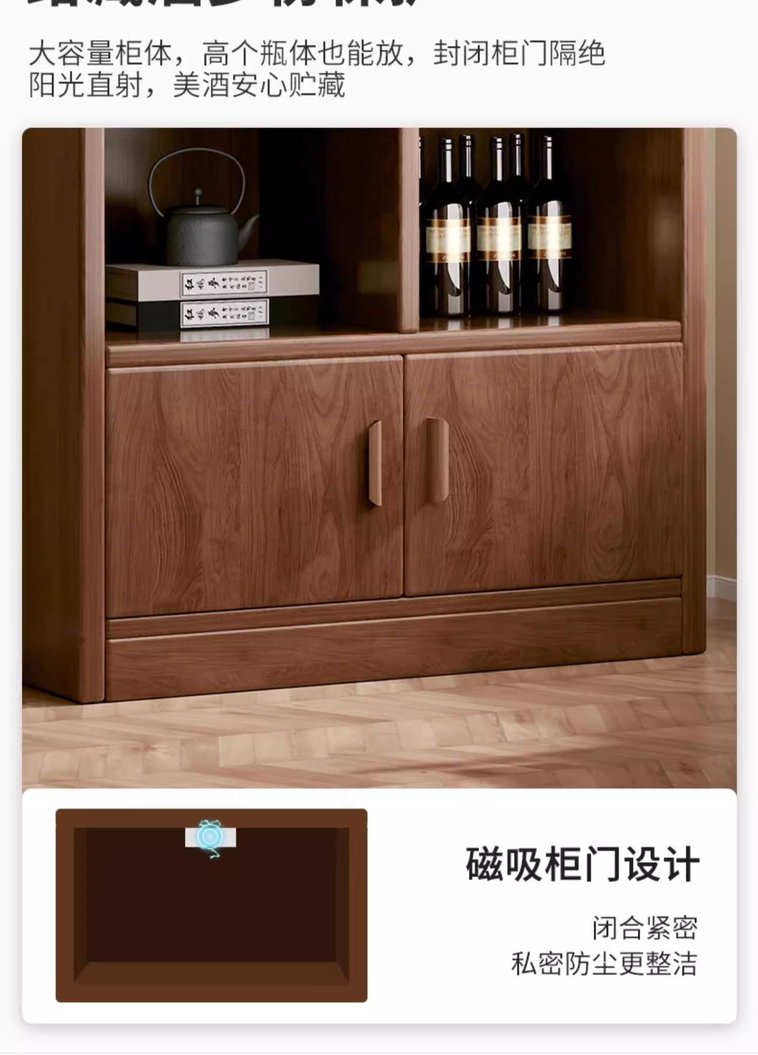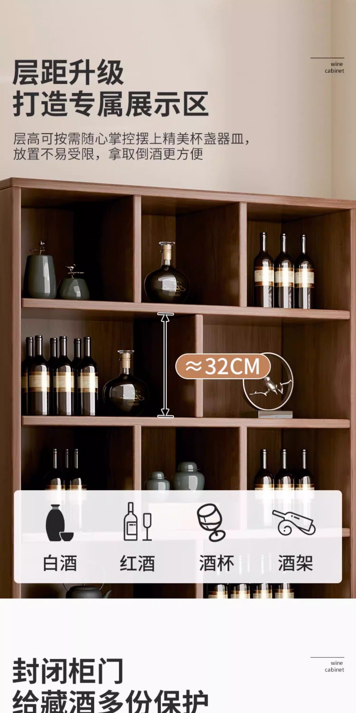 Solid wood ecological board wine cabinet wall-to-wall living room storage display cabinet 2026 new Chinese household wine rack storage cabinet