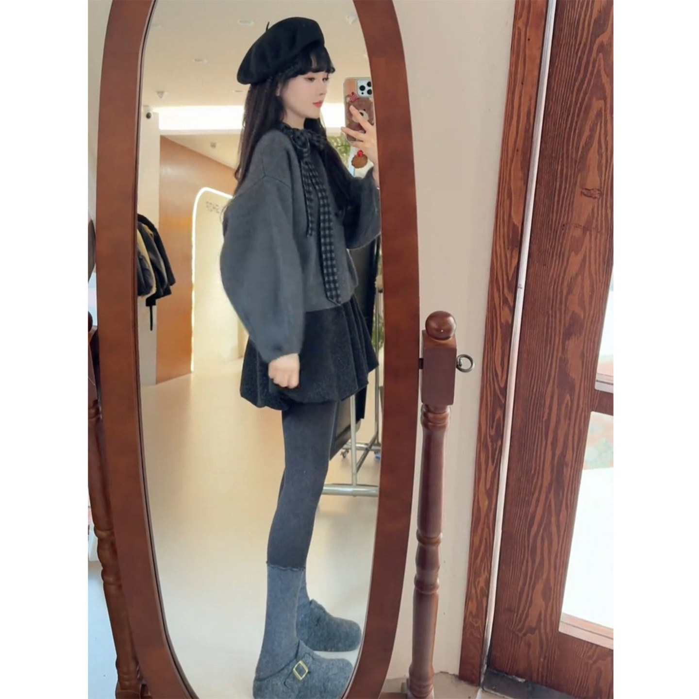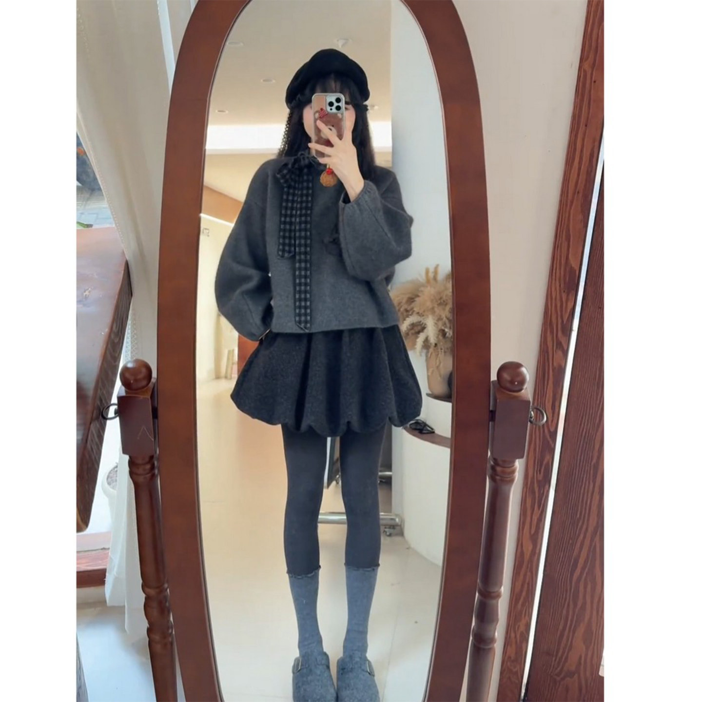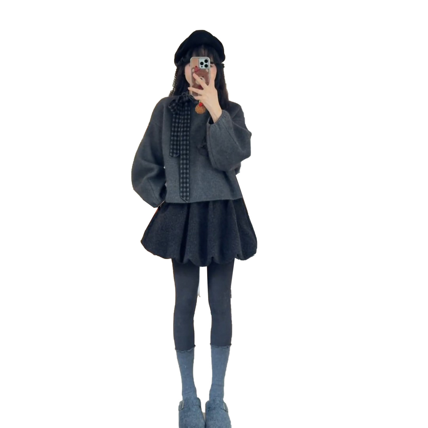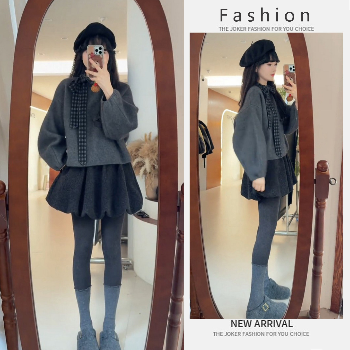 Early spring, Korean sweet, age-reducing, foreign, small man, lazy style, gray top, slimming skirt, two-piece suit, trendy