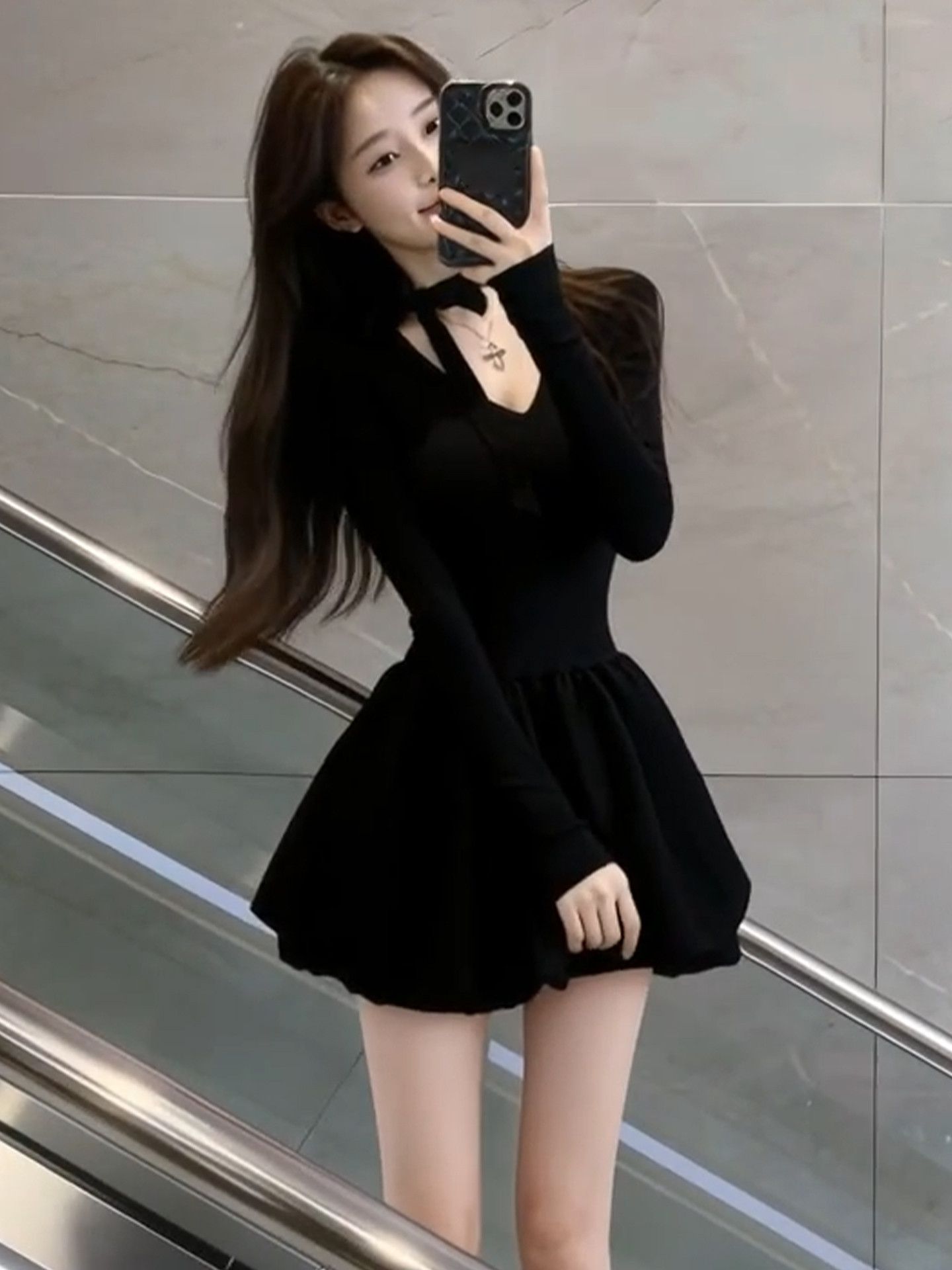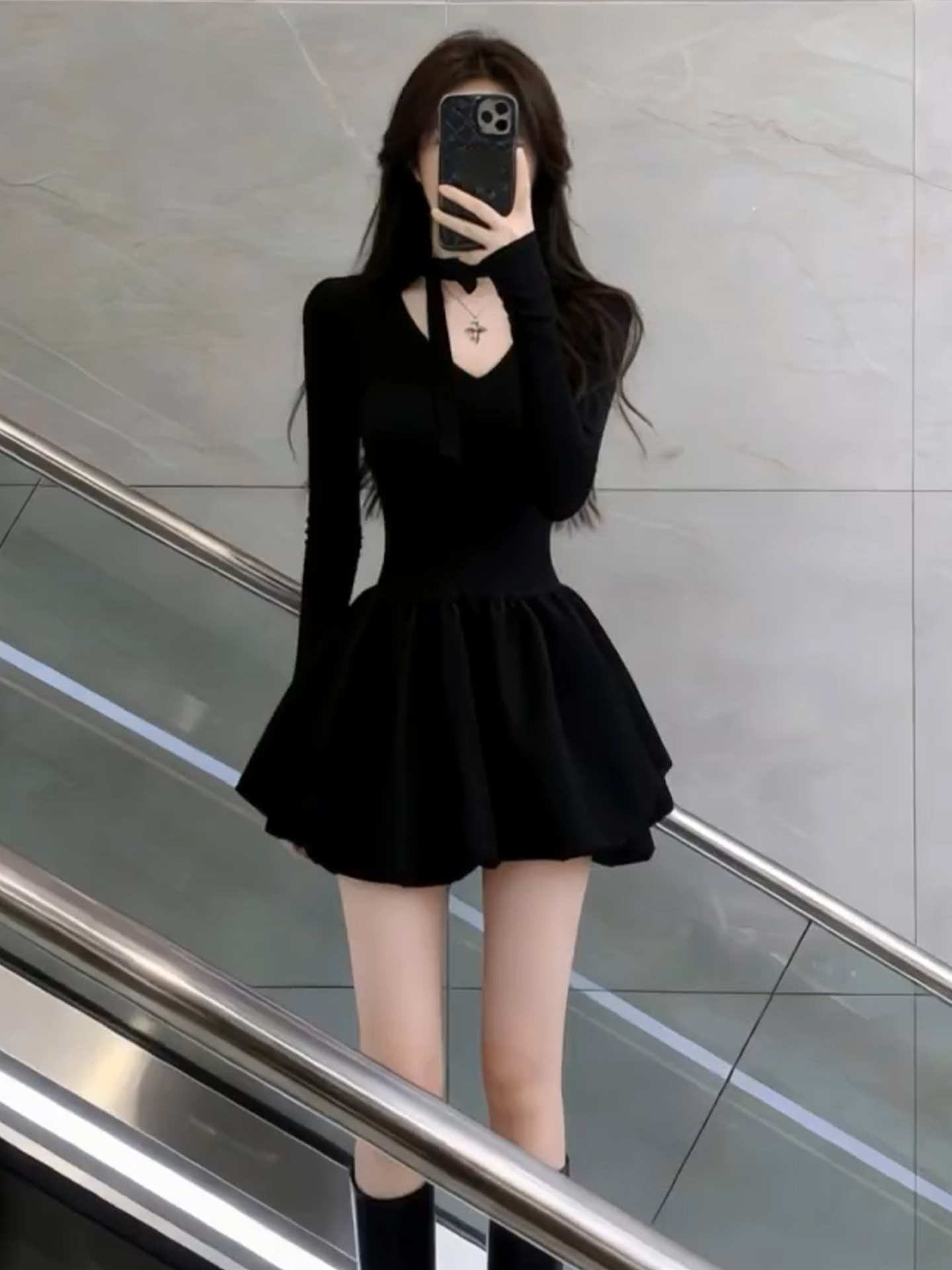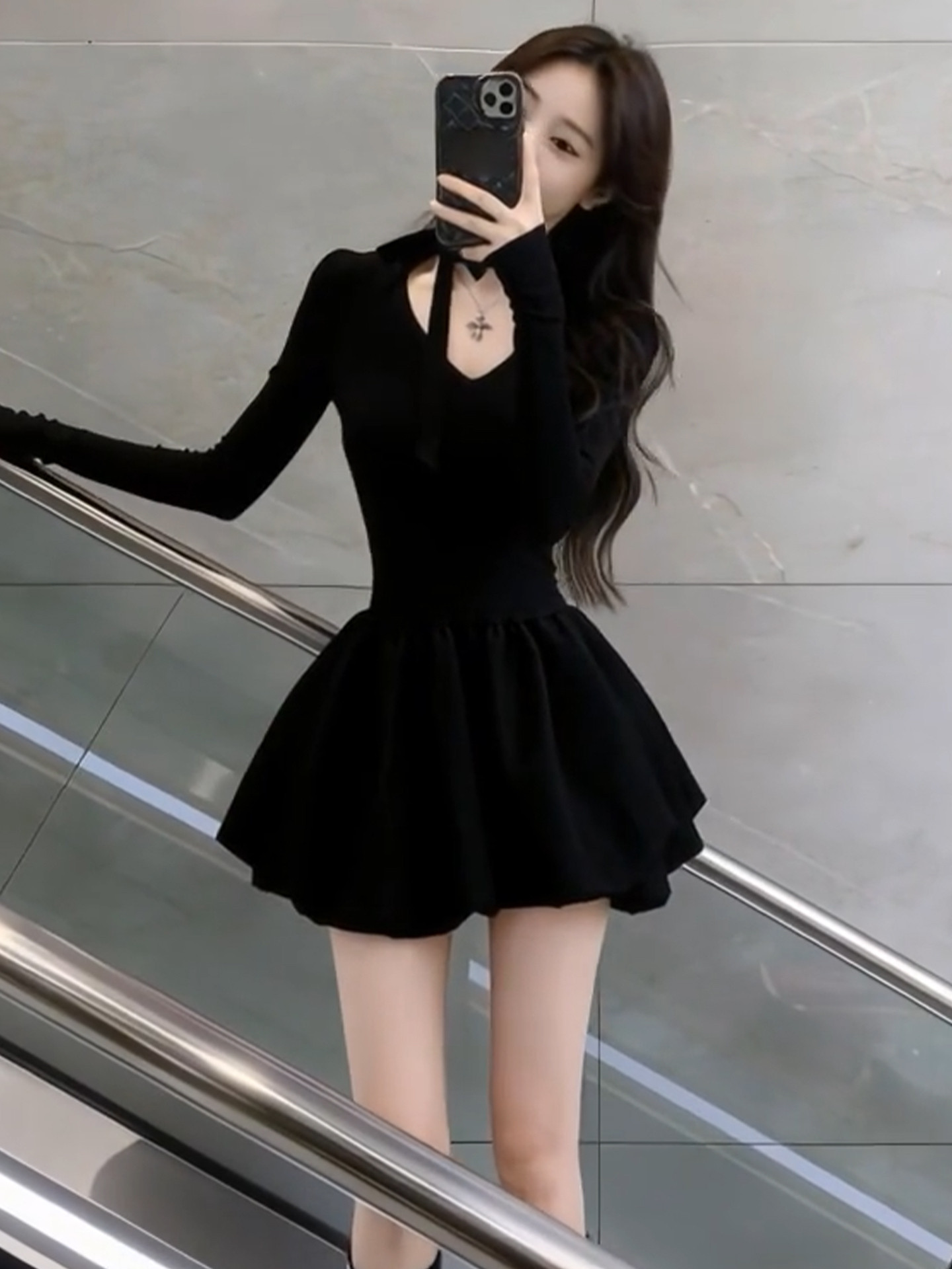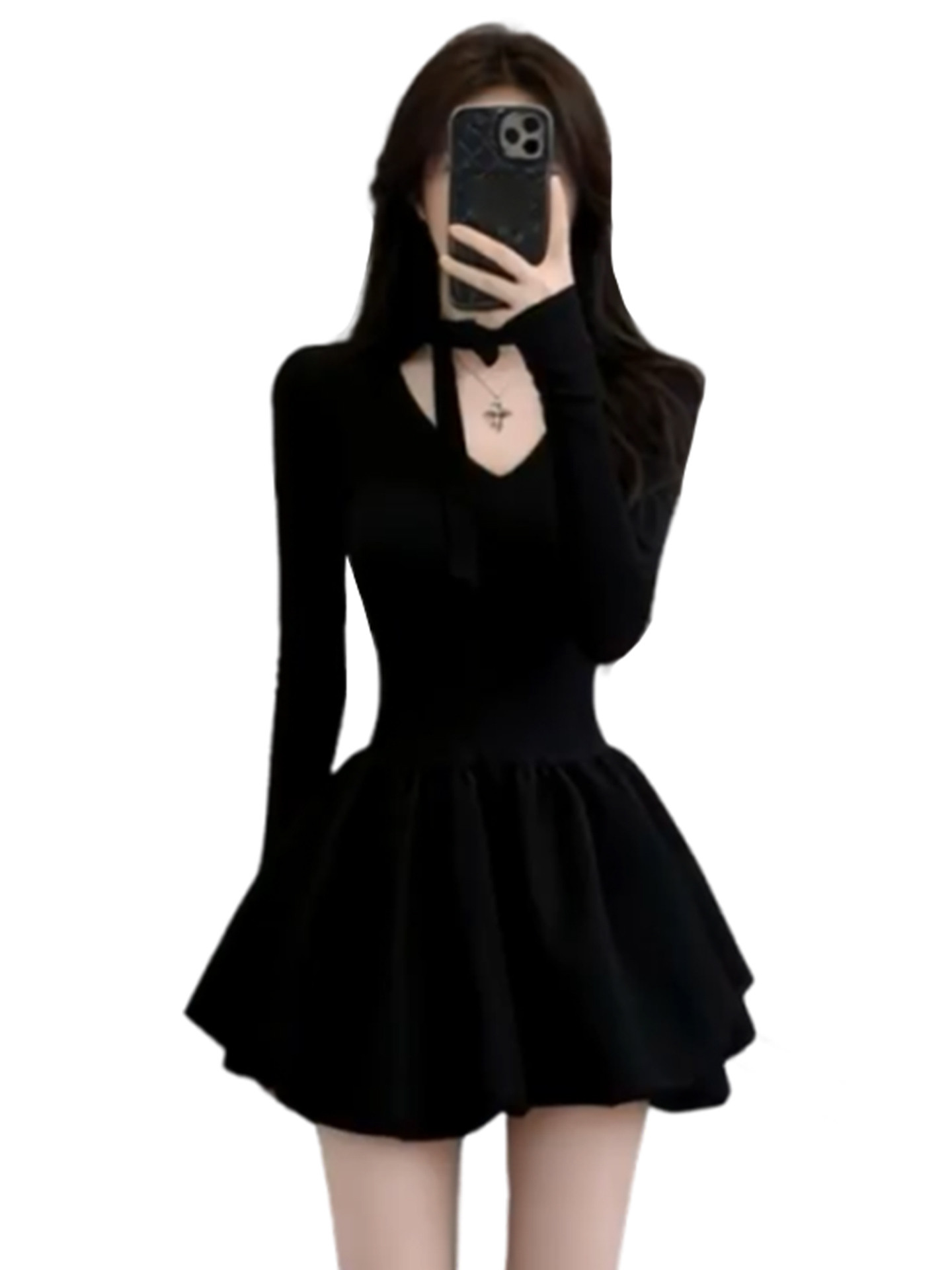 French Hepburn style black dress women's autumn/winter 2026 new small waist slimming A-line puffy skirt
