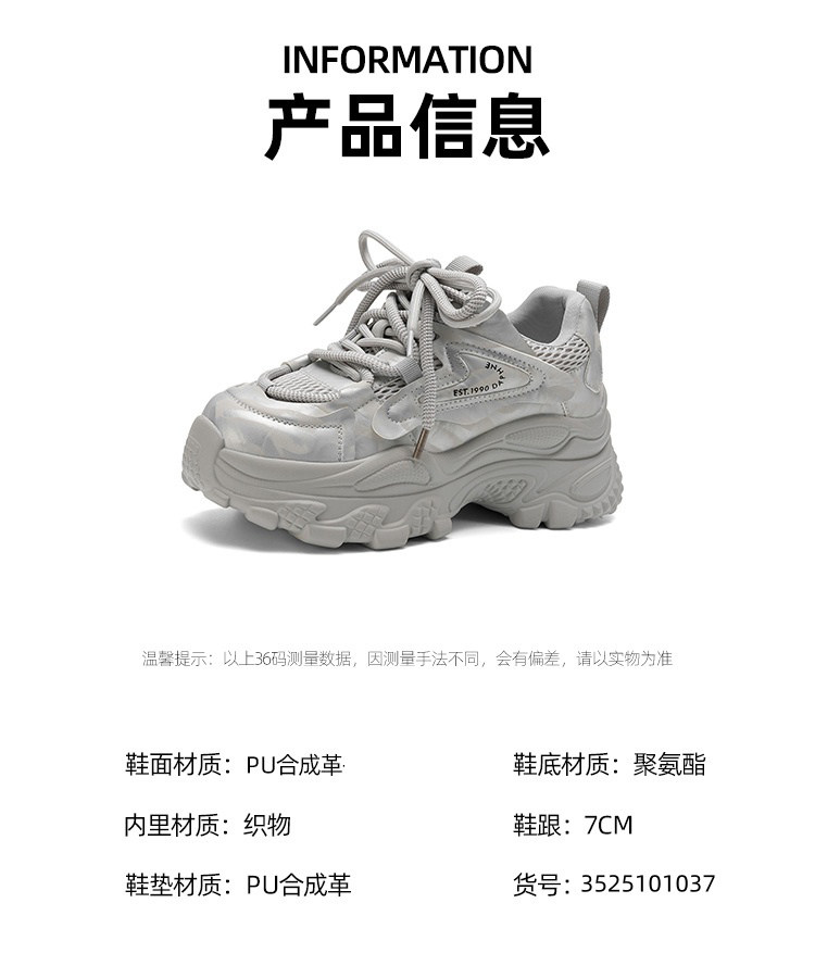 Daphne Heightened Platform Daddy Shoes Women's 2026 New Spring Lightweight 7cm Sneakers Popular Casual Women's Shoes