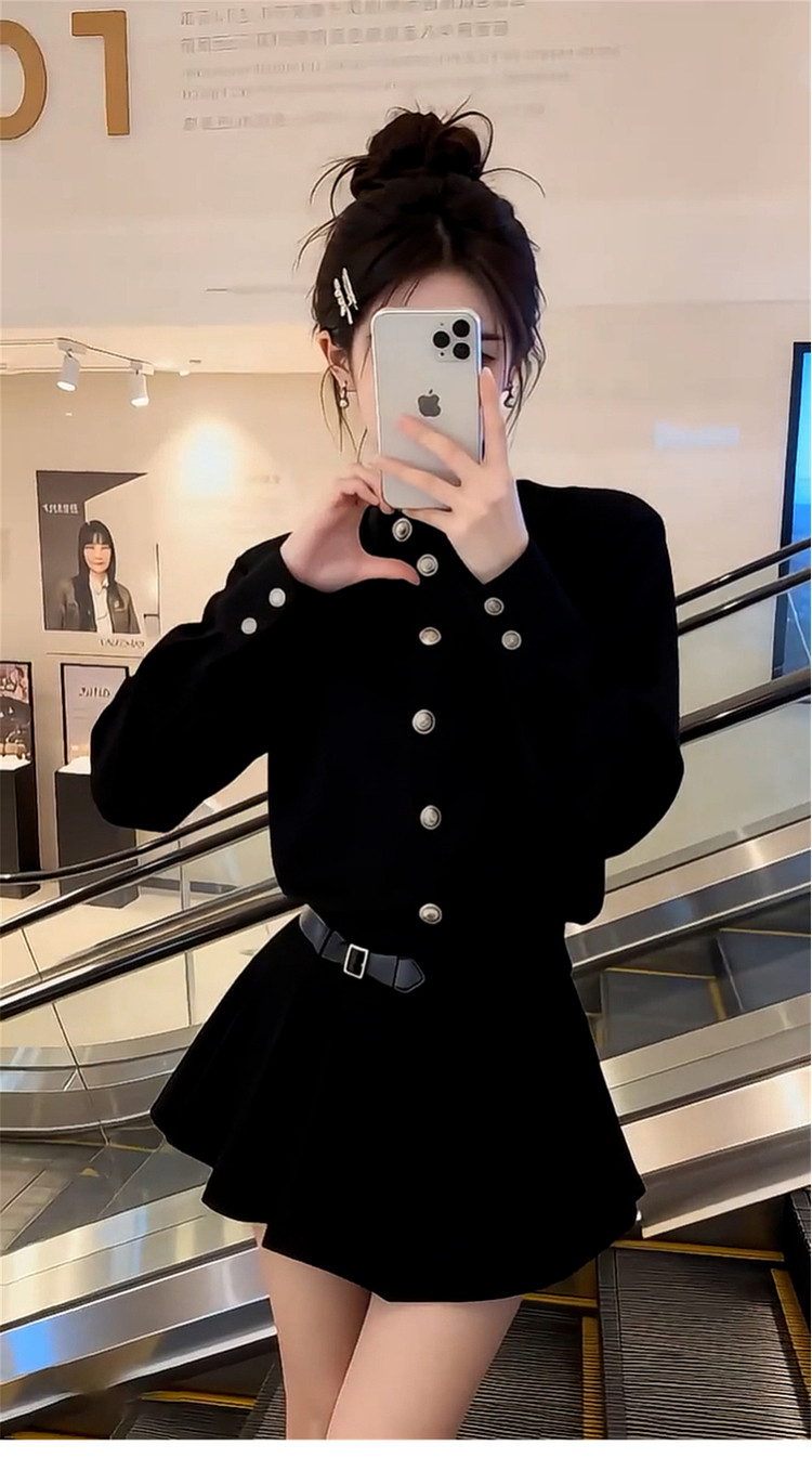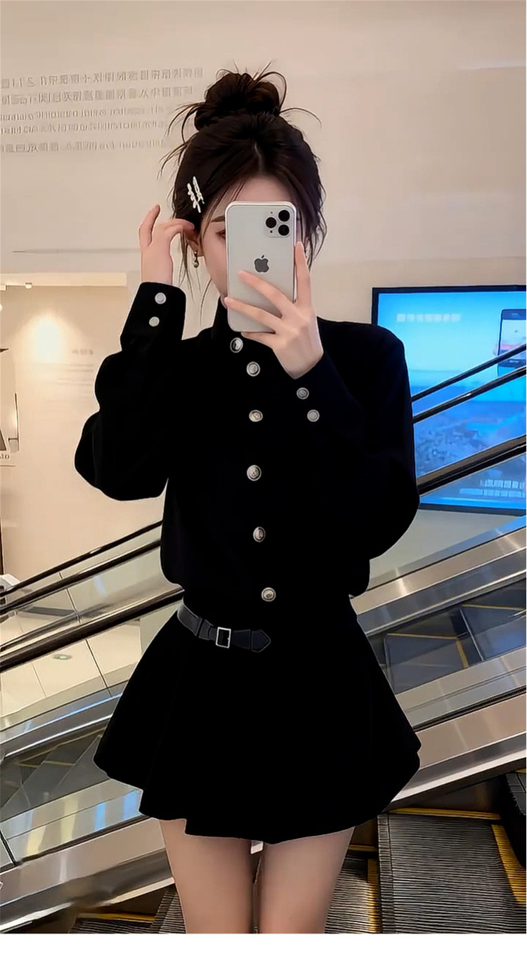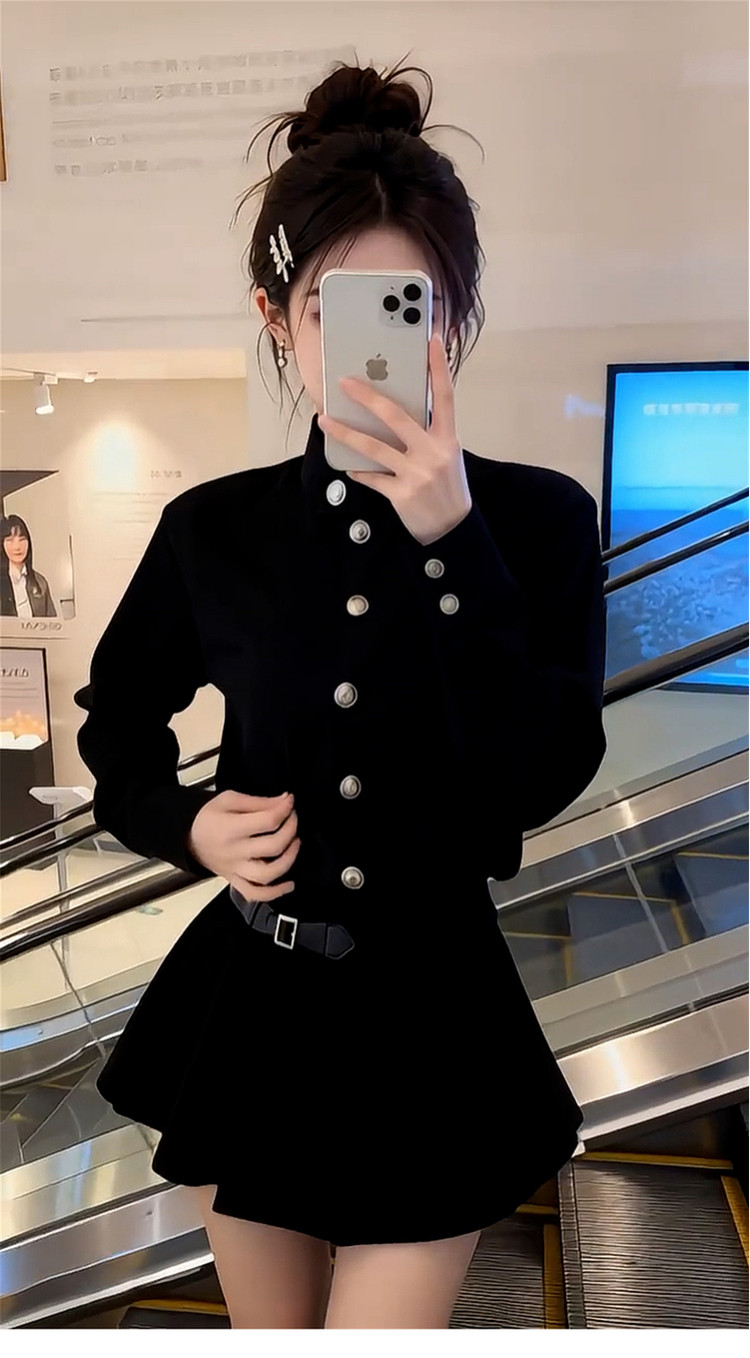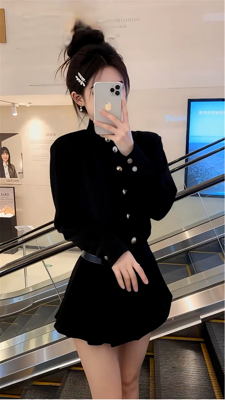 French Hepburn style black dress women's autumn and winter 2026 new high-end small waist A-line skirt
