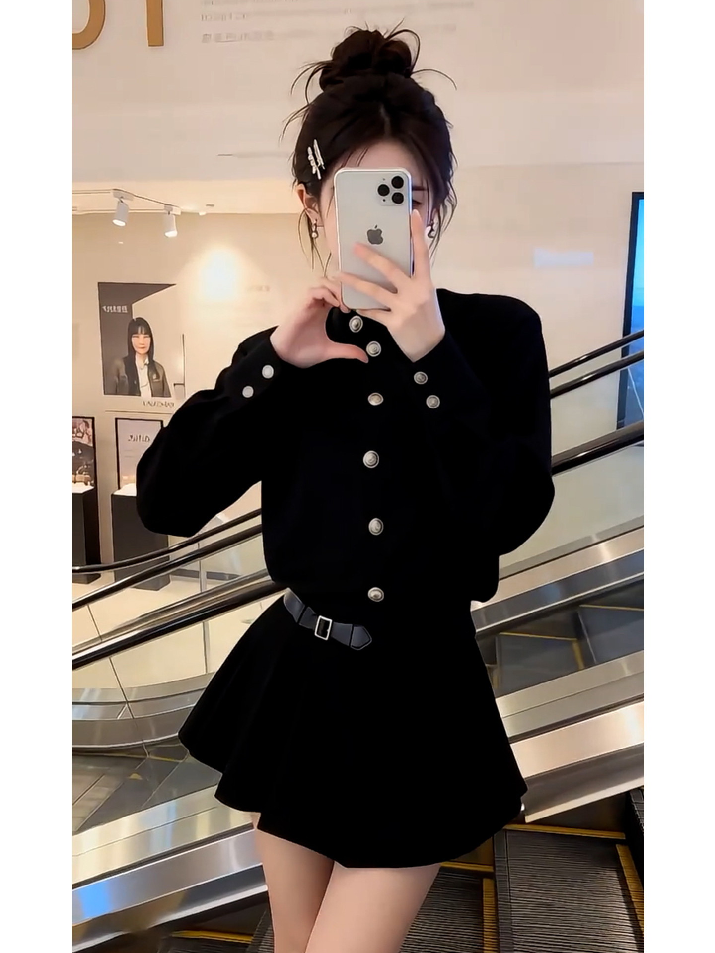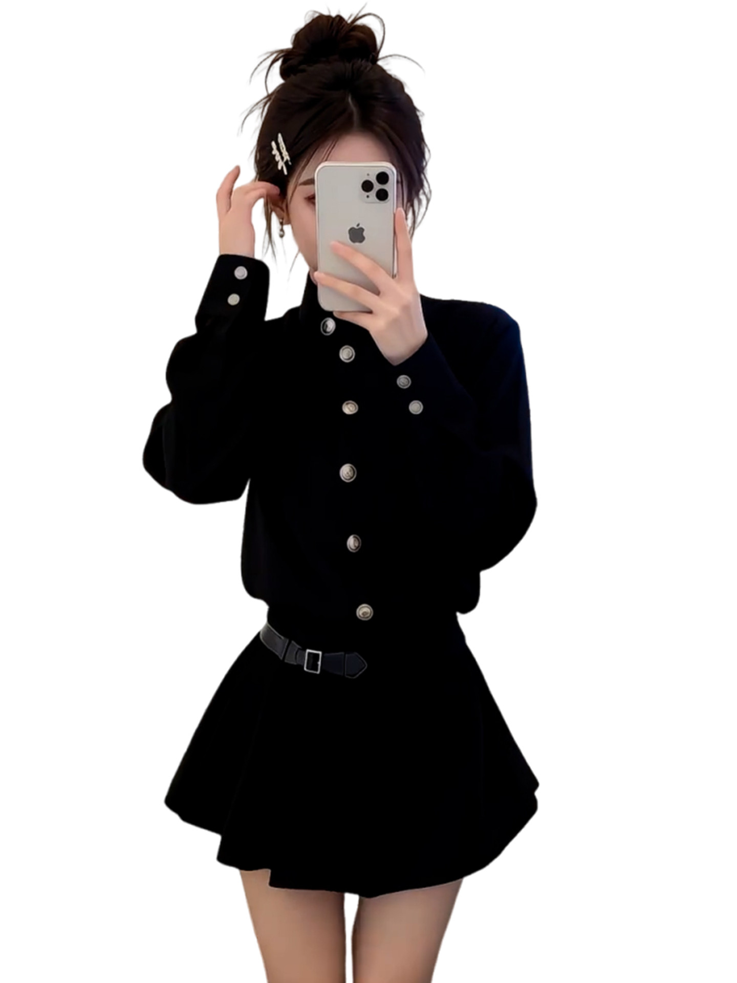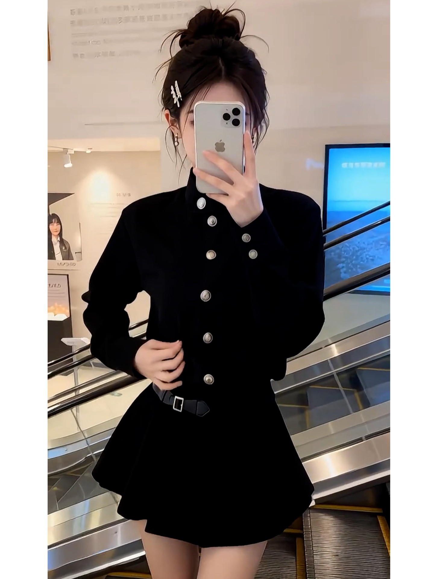 French Hepburn style black dress women's autumn and winter 2026 new high-end small waist A-line skirt